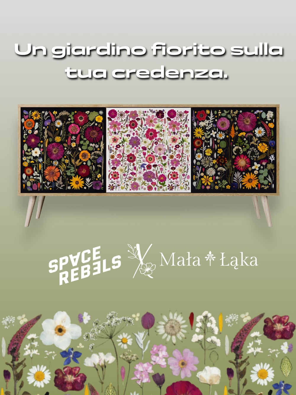 SCANDIC FLOWERET Madia a 3 Ante in Finitura Nera