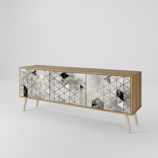 Mobile TV CONCRETE ZIG ZAG a 3 ante in effetto rovere