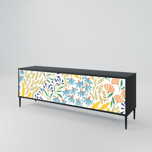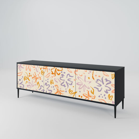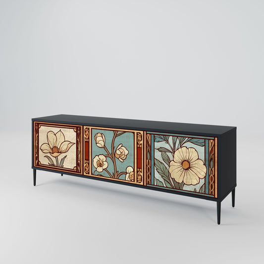 FLORAL COMBINATION 3-Door TV Stand in Black Finish