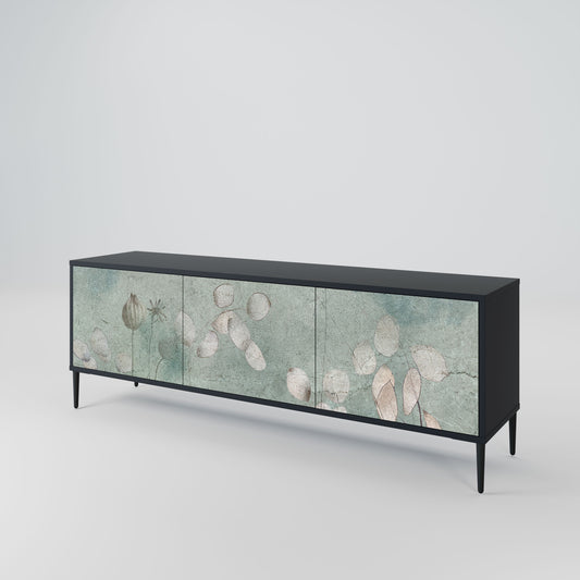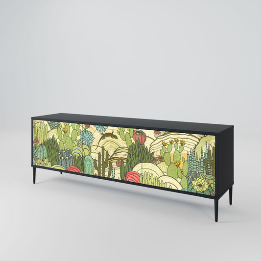 SUCCULENTS KALEIDOSCOPE 3-Door TV Stand in Black Finish