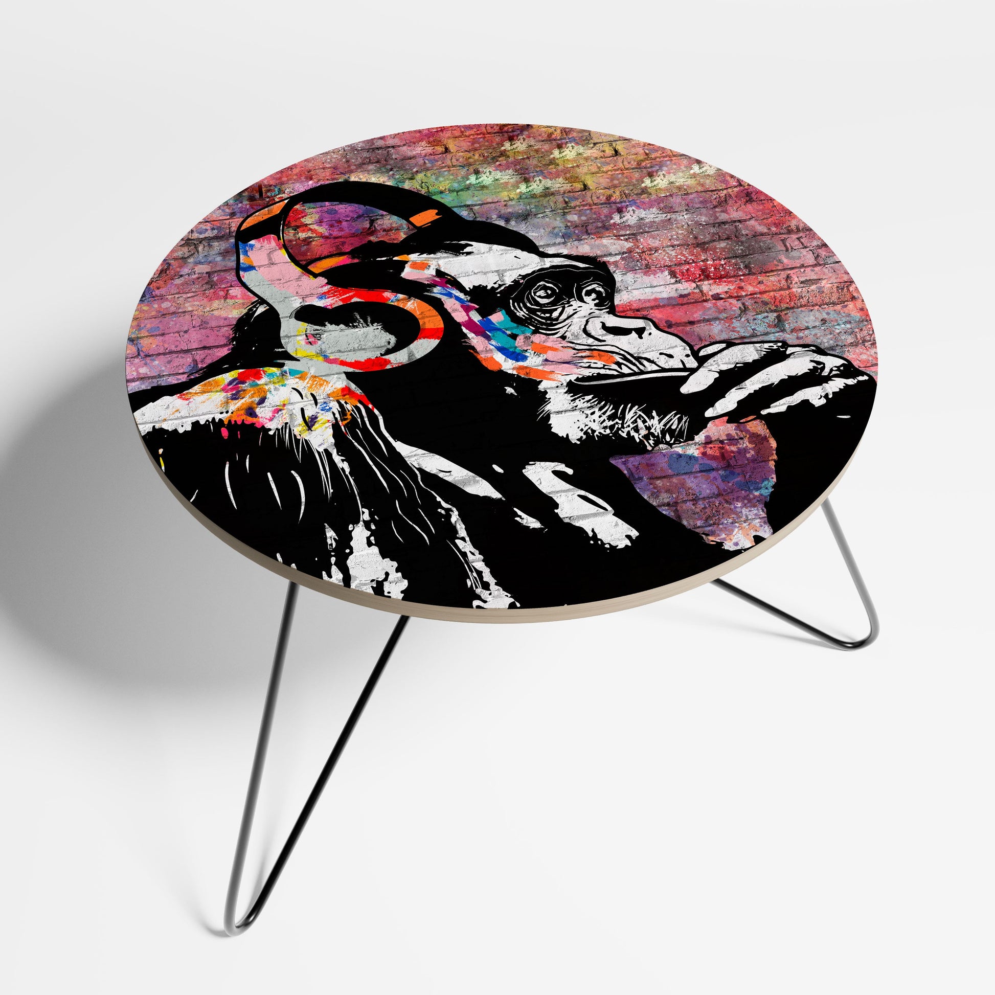 The tabletop features a high-quality printed motif, adding a distinctive artistic accent to your space. Crafted from durable chipboard covered with laminate, it ensures long-lasting use and resistance to daily wear.