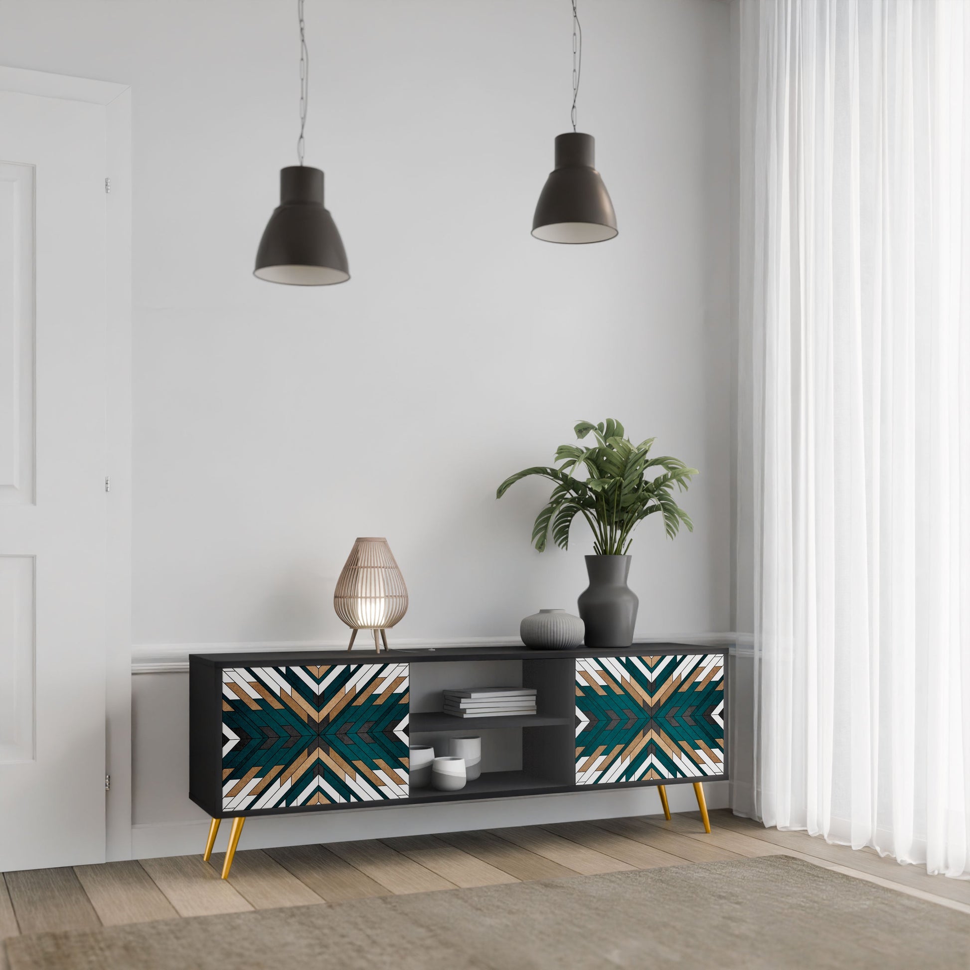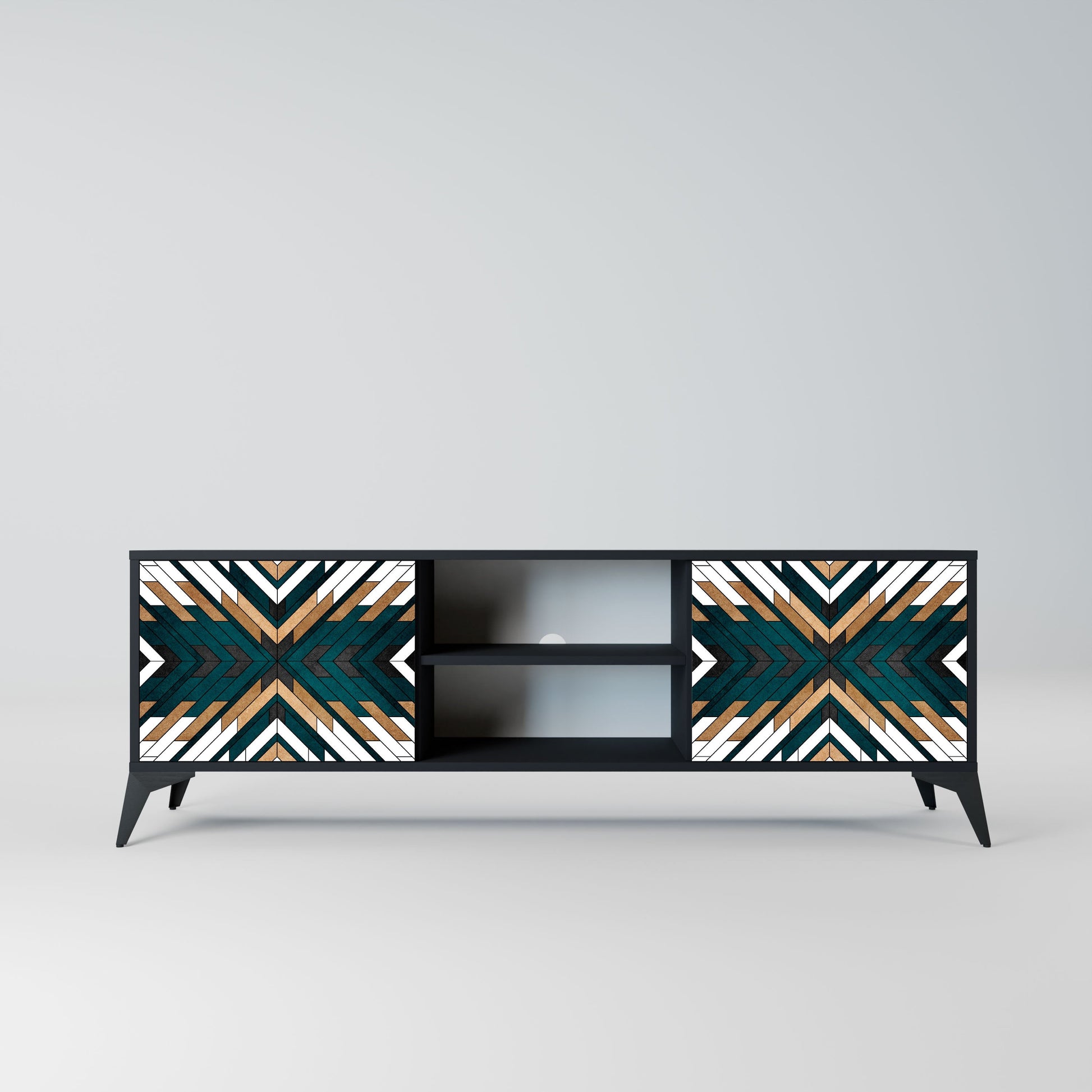 ARTISTIC GEOMETRY 2-Door TV Stand in Black Finish