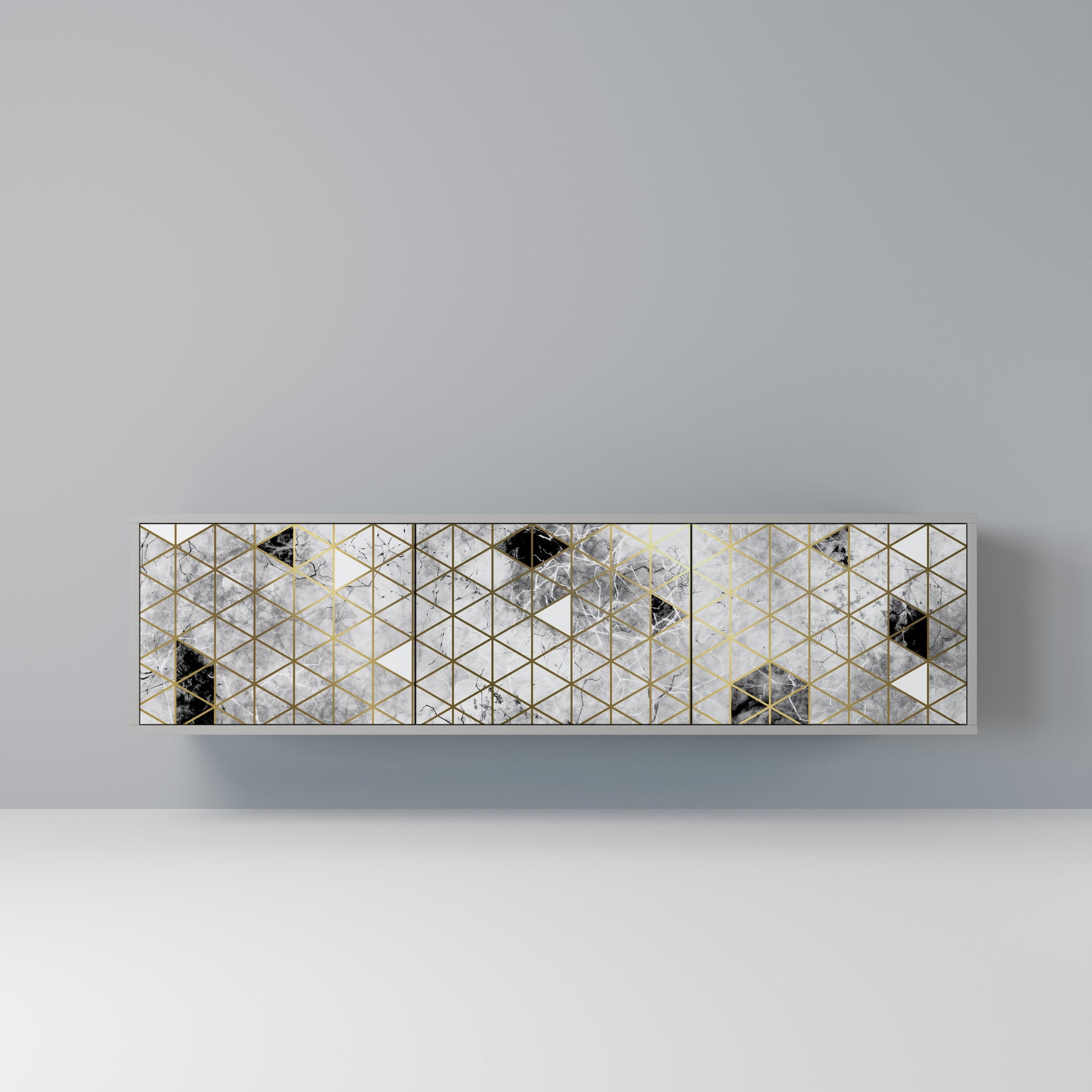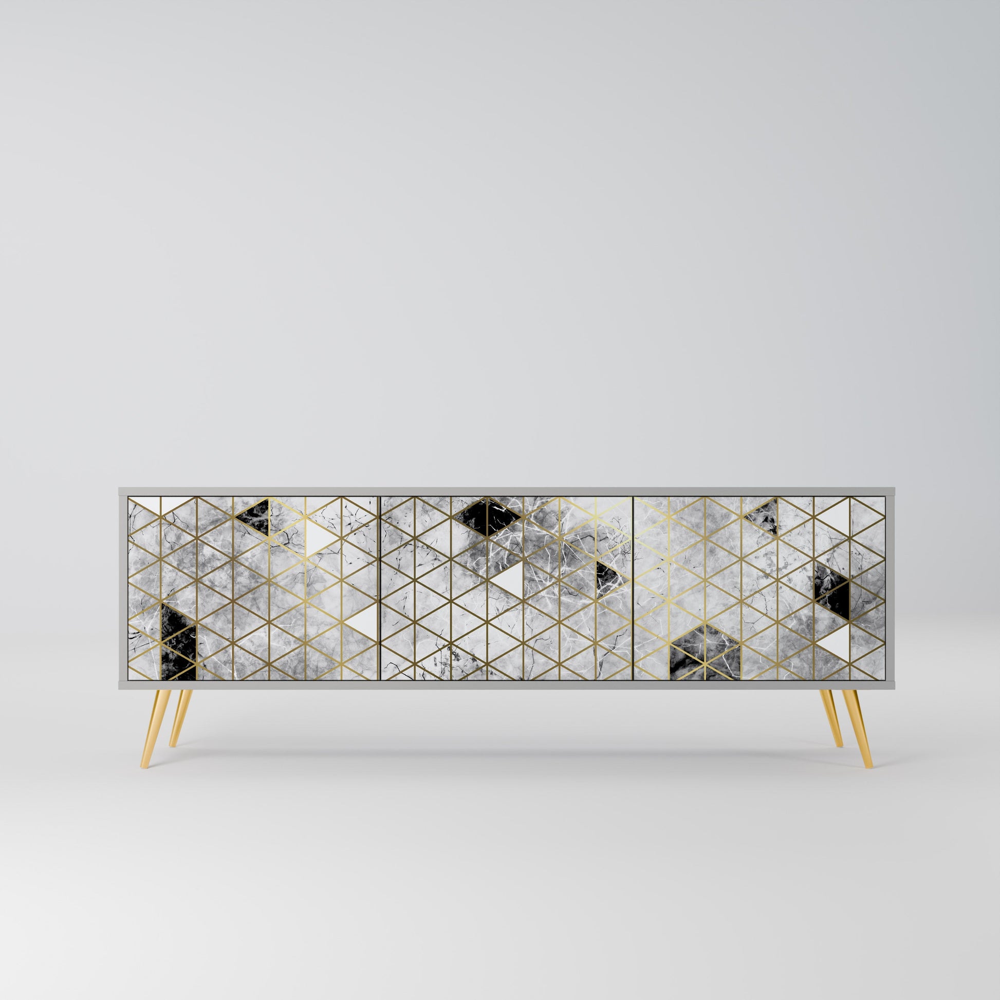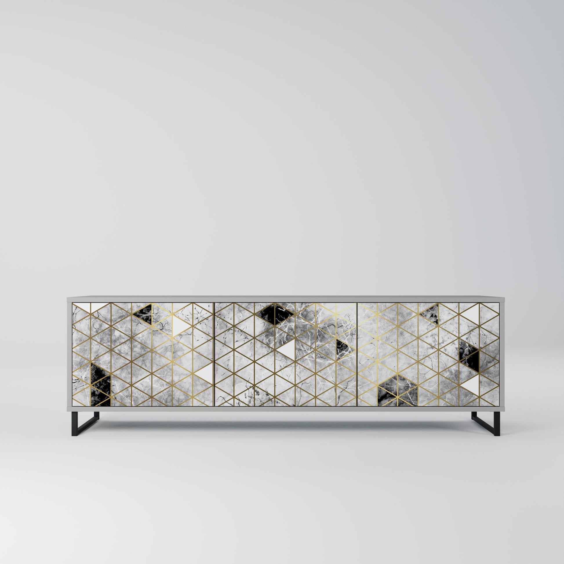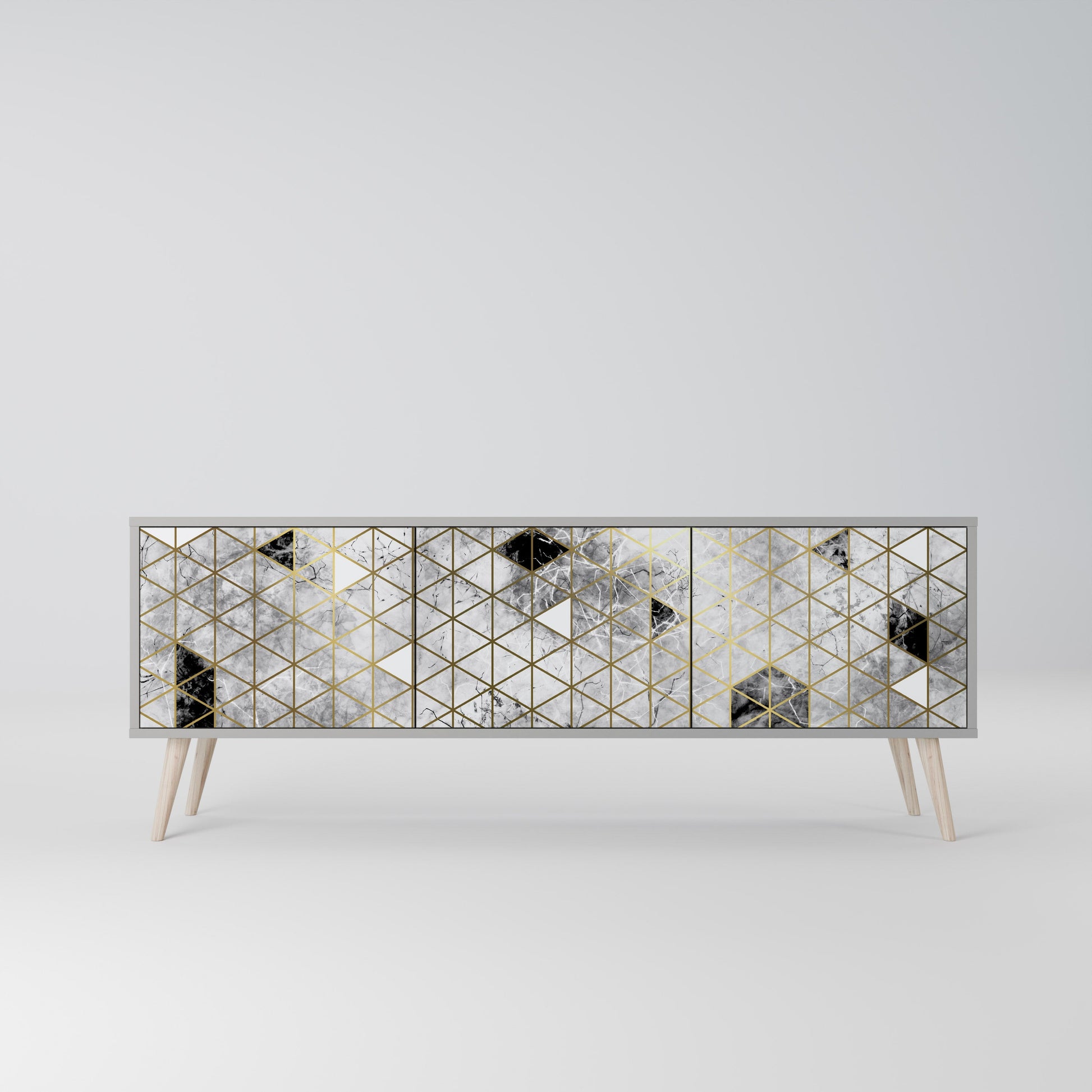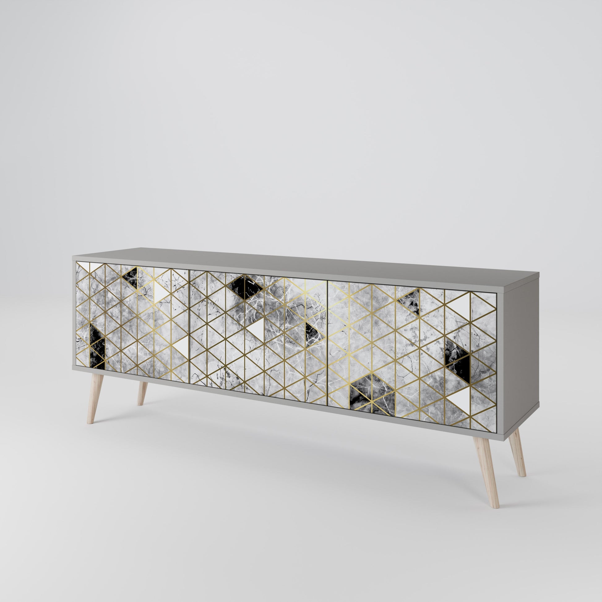 The grey body of the stand creates a refined, modern accent that pairs beautifully with industrial and minimalist arrangements. The fronts with a designer print add character and uniqueness, making this piece not only practical but also a standout decorative element.