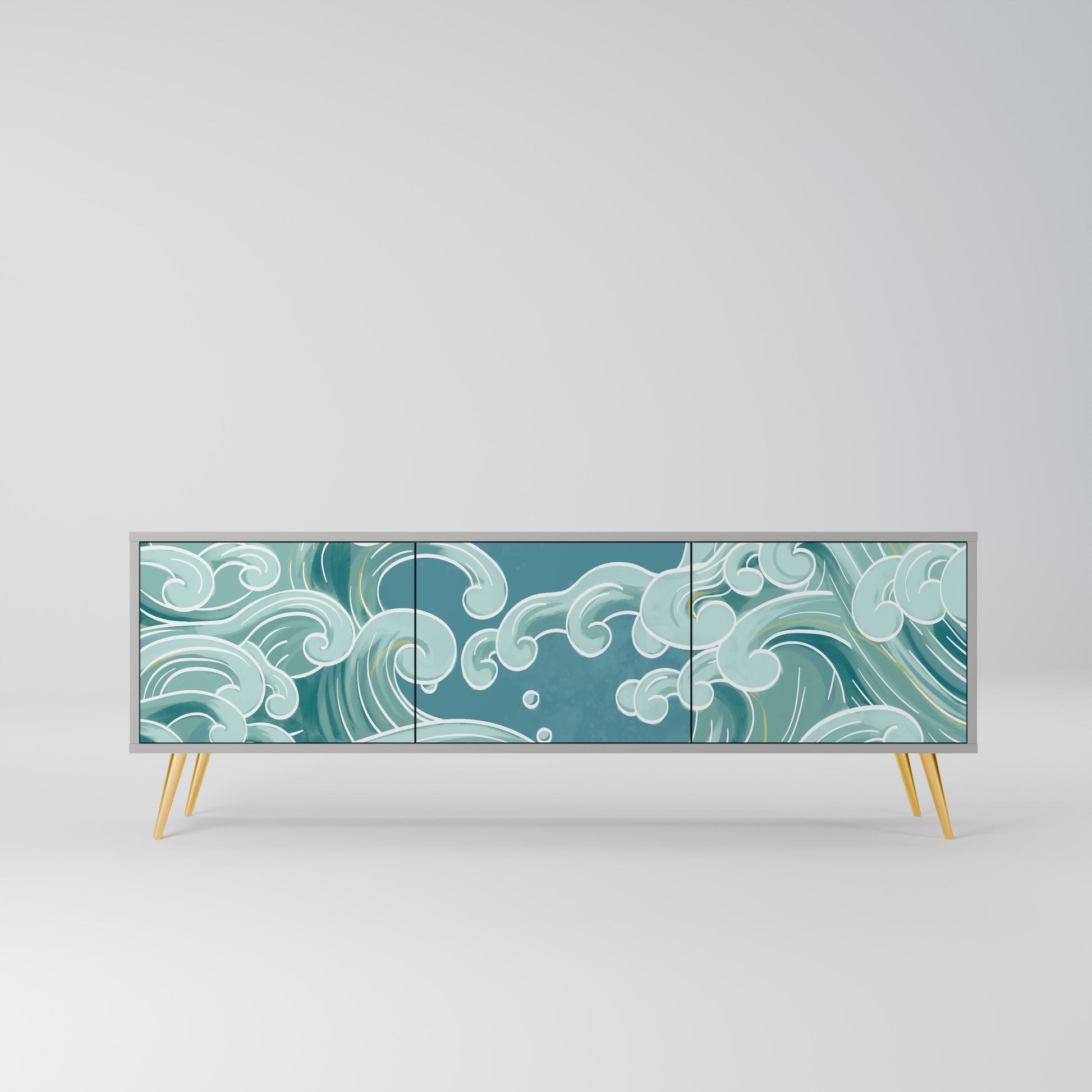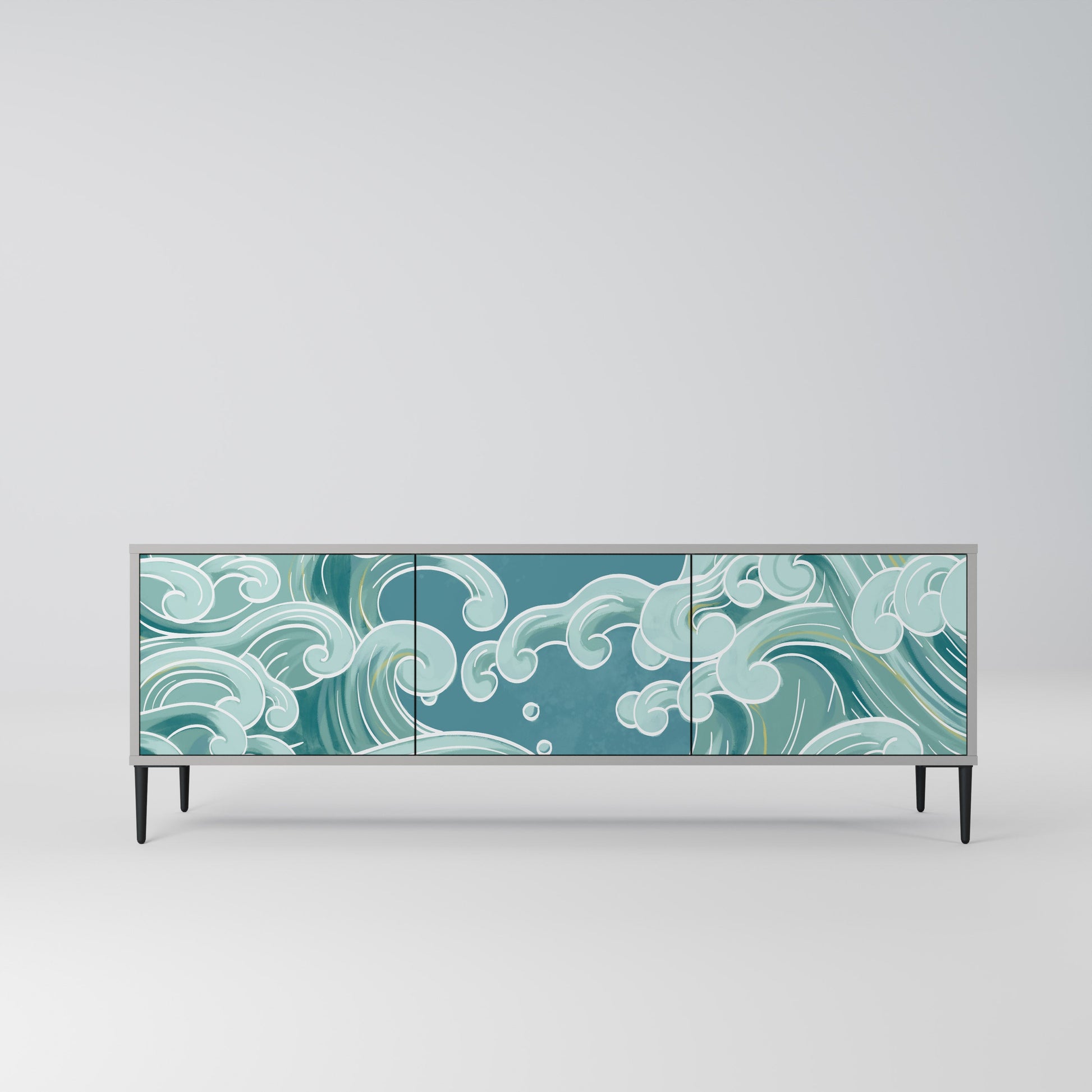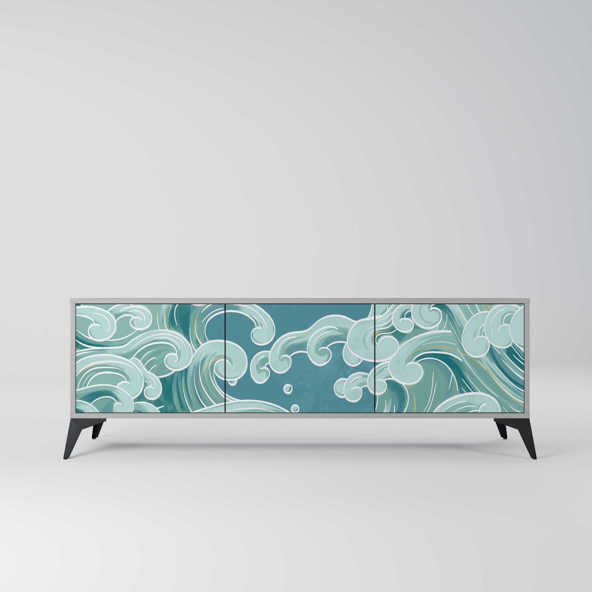 ASIAN SWAY 3-Door TV Stand in Grey Finish