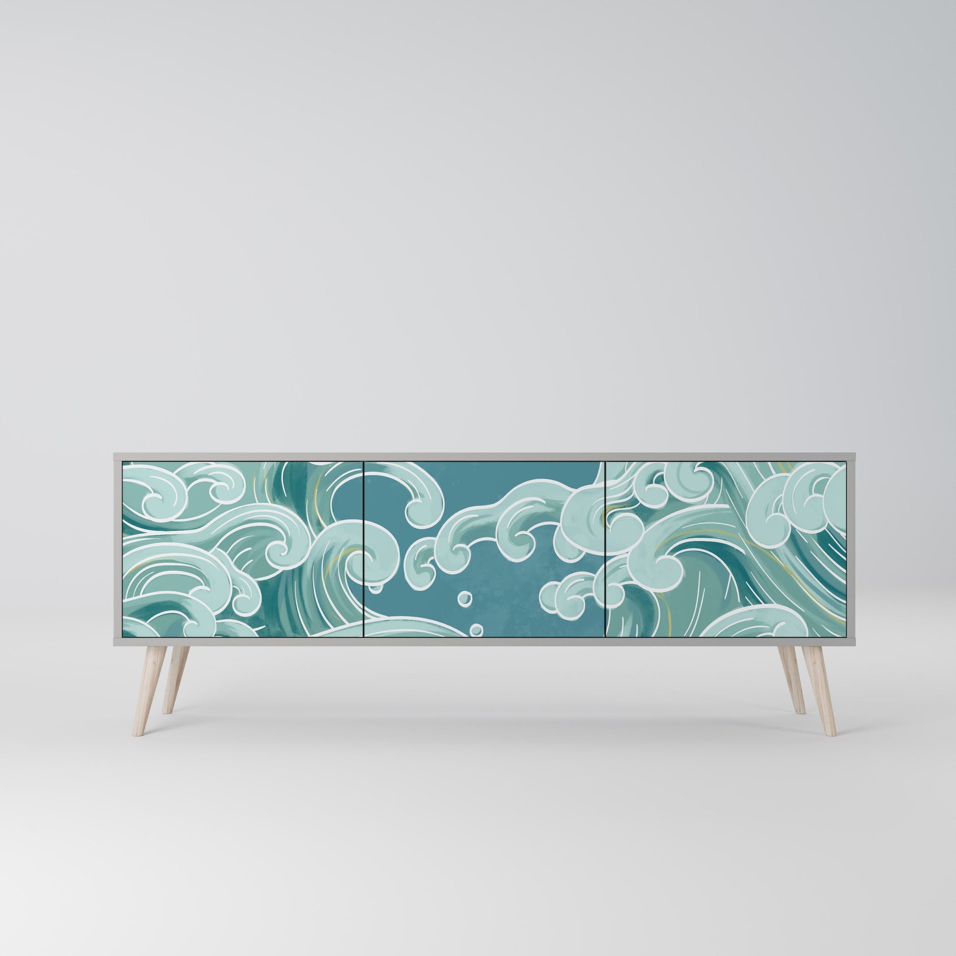 The grey body of the stand creates a refined, modern accent that pairs beautifully with industrial and minimalist arrangements. The fronts with a designer print add character and uniqueness, making this piece not only practical but also a standout decorative element.