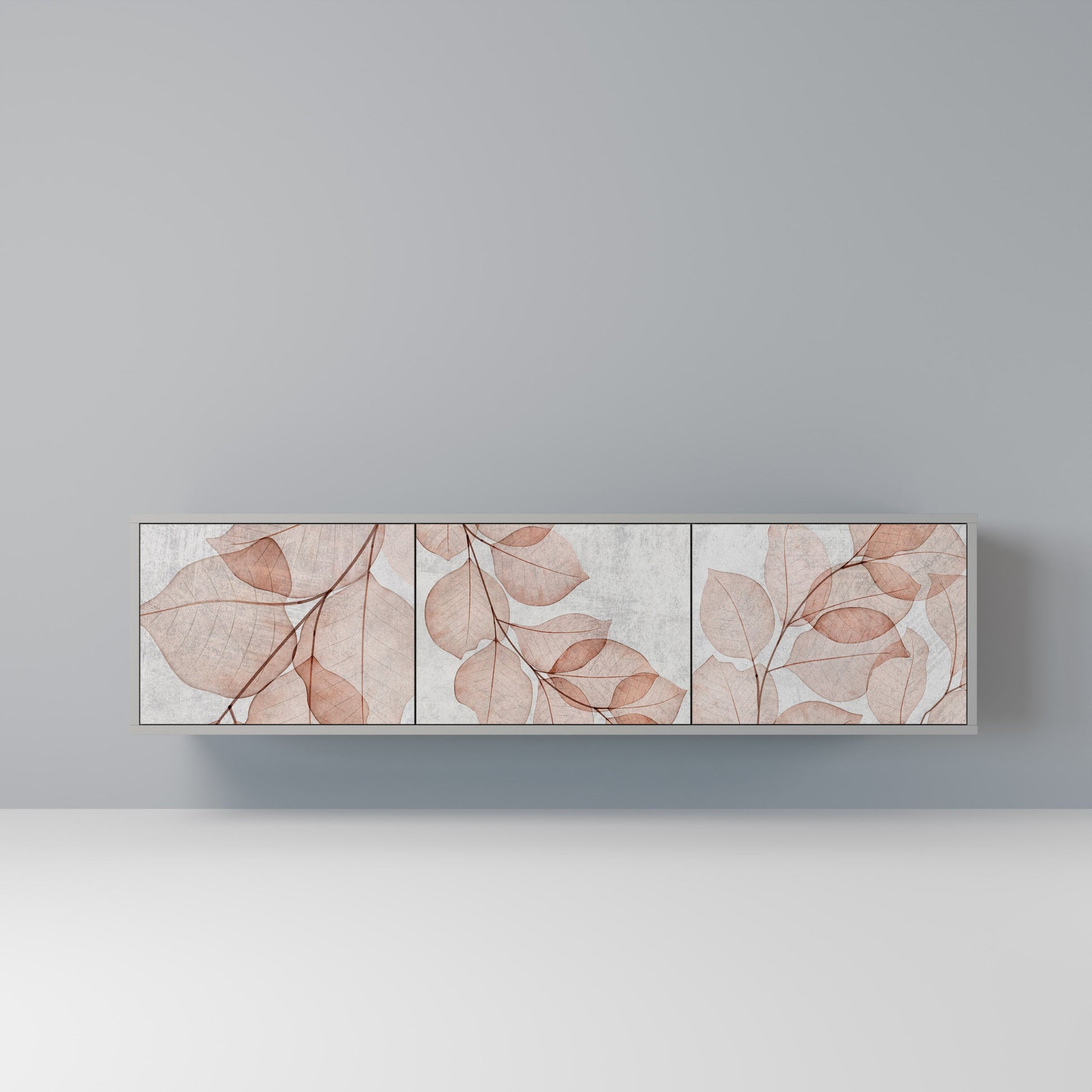 The grey body of the stand creates a refined, modern accent that pairs beautifully with industrial and minimalist arrangements. The fronts with a designer print add character and uniqueness, making this piece not only practical but also a standout decorative element.