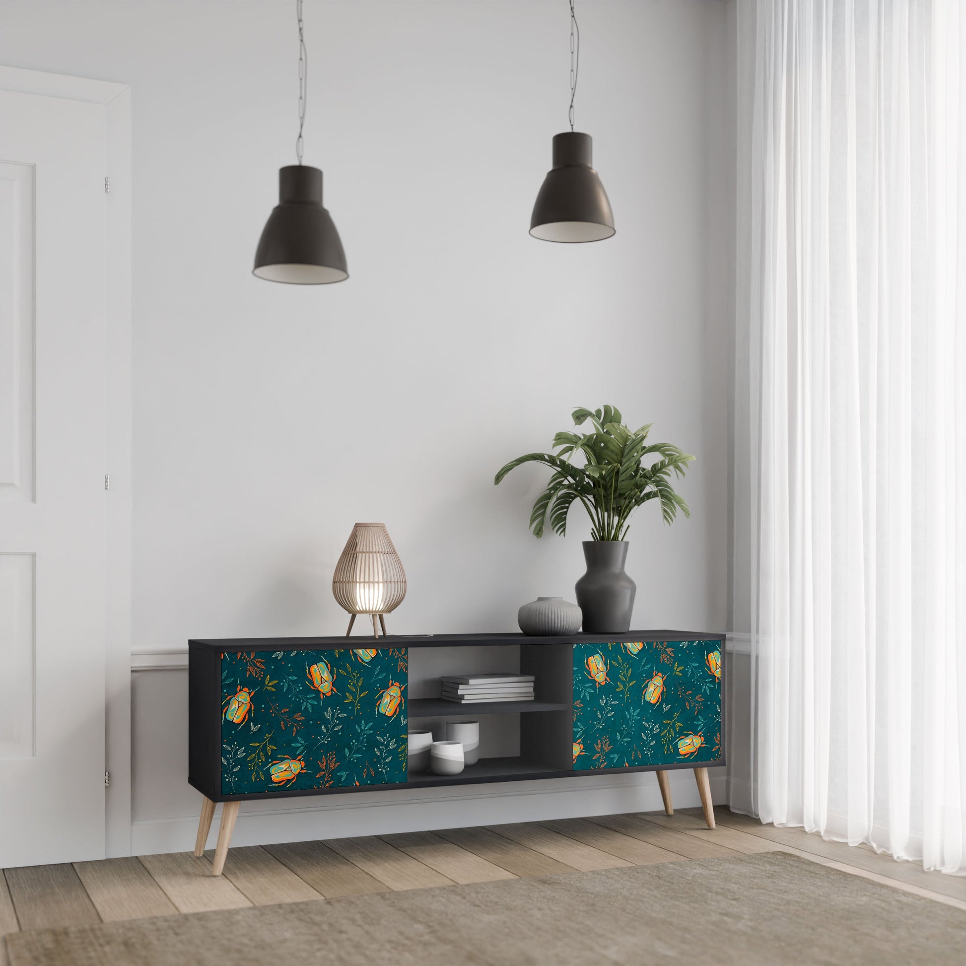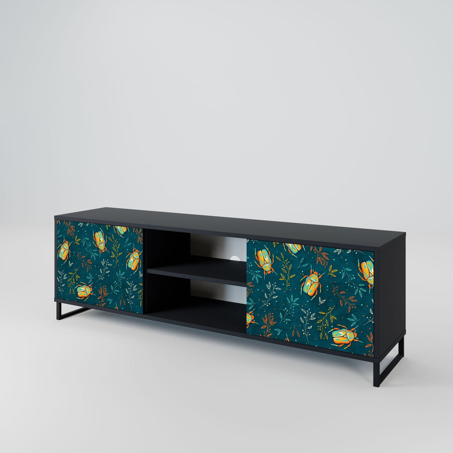 The black body gives the TV stand an elegant, modern look, while the fronts with an exceptional print draw attention, making it the focal point of any room. The spacious interior provides room for electronic devices, cables, remotes, and other accessories, helping you maintain order and organization.