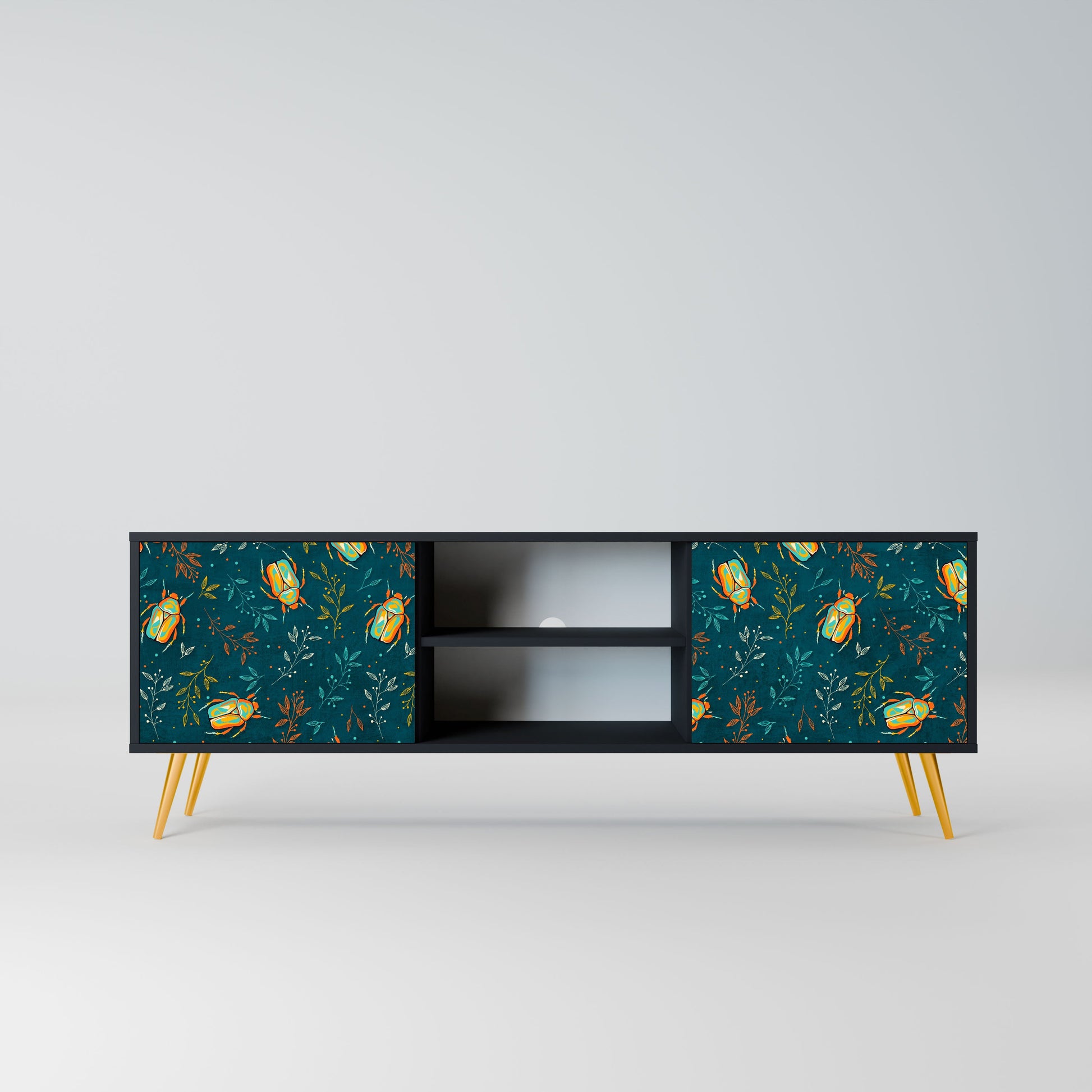 AUTUMN INSECTS 2-Door TV Stand in Black Finish