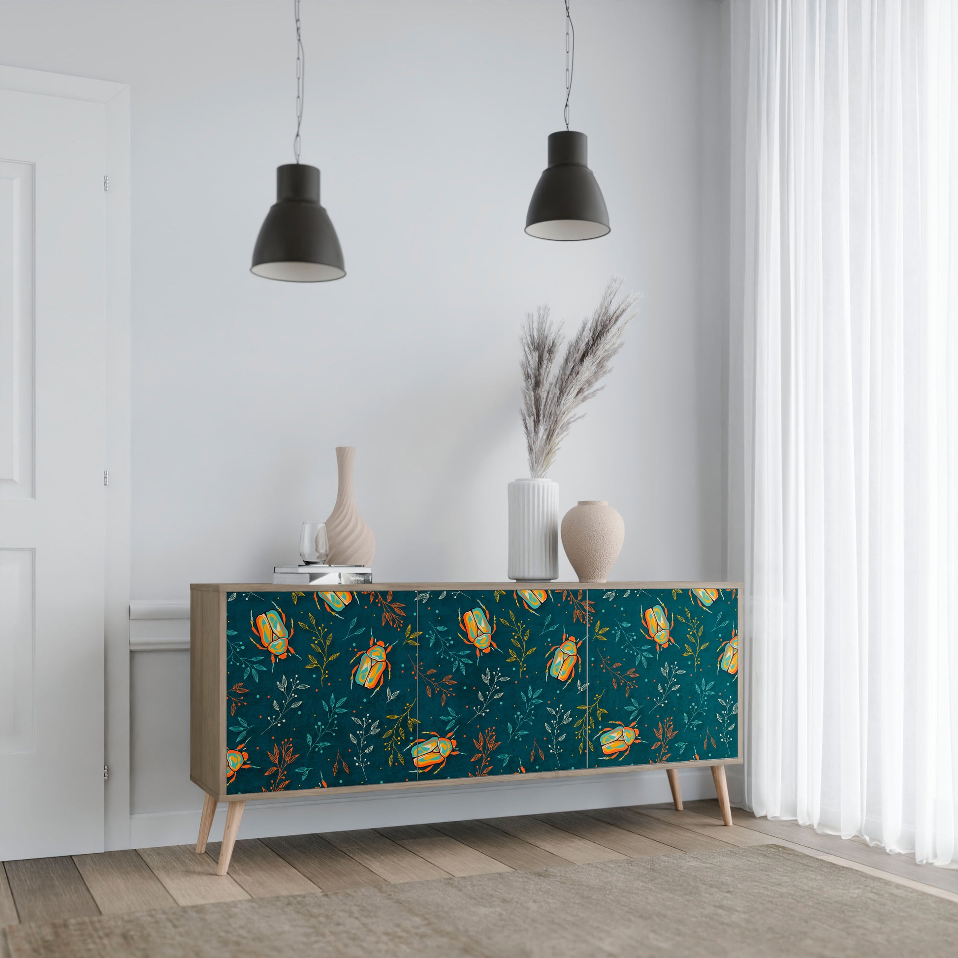AUTUMN INSECTS 3-Door Sideboard in Oak Effect