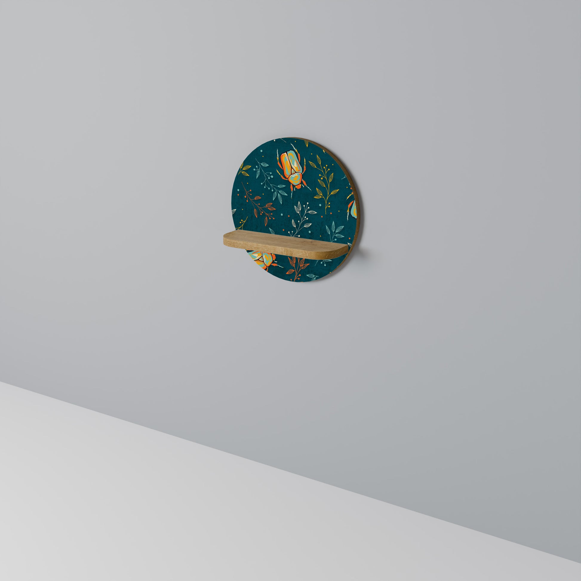 AUTUMN INSECTS Round Art Shelf In Oak Effect