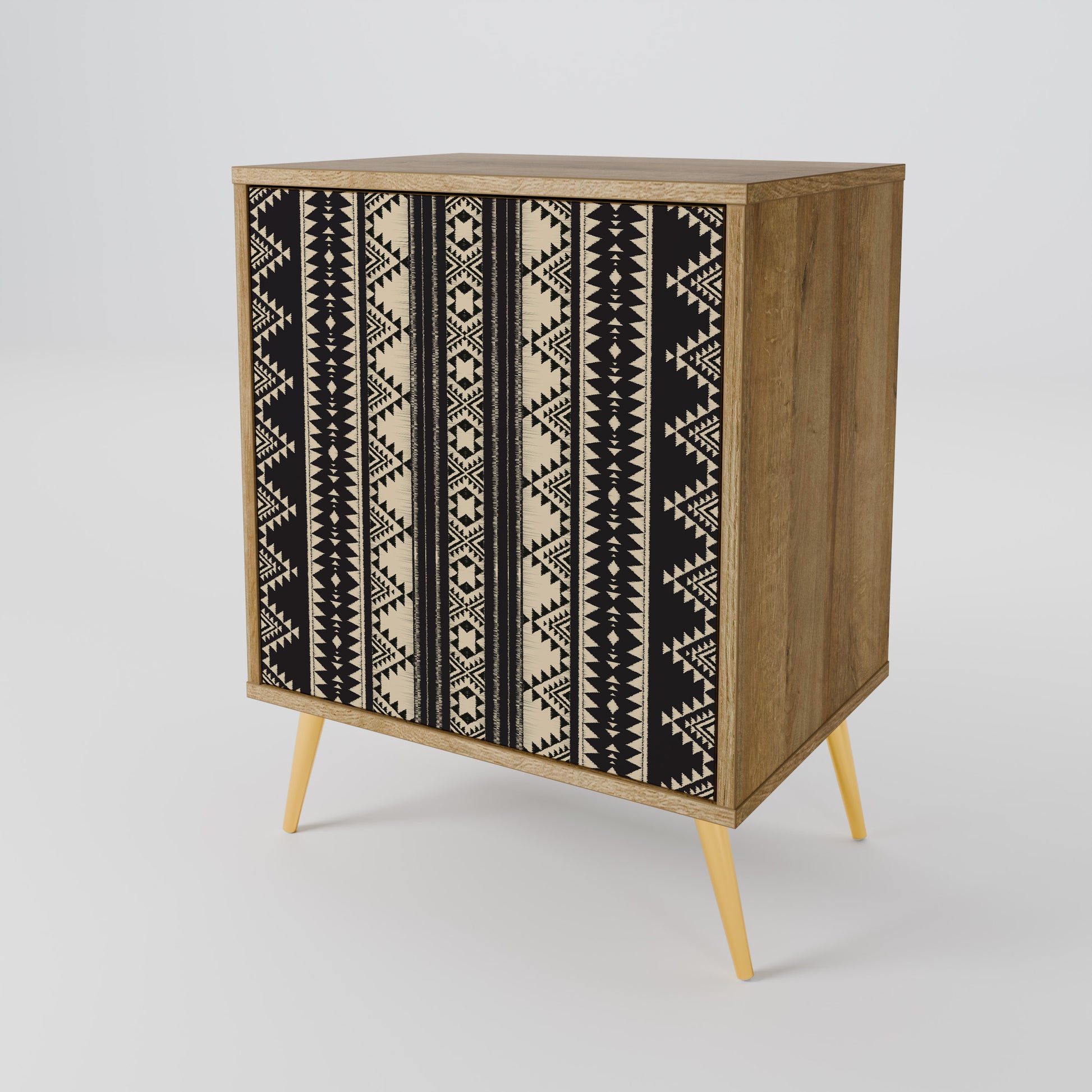 The stylish front with a subtle print adds a modern touch, making the sideboard not only a practical but also a decorative element of the interior.