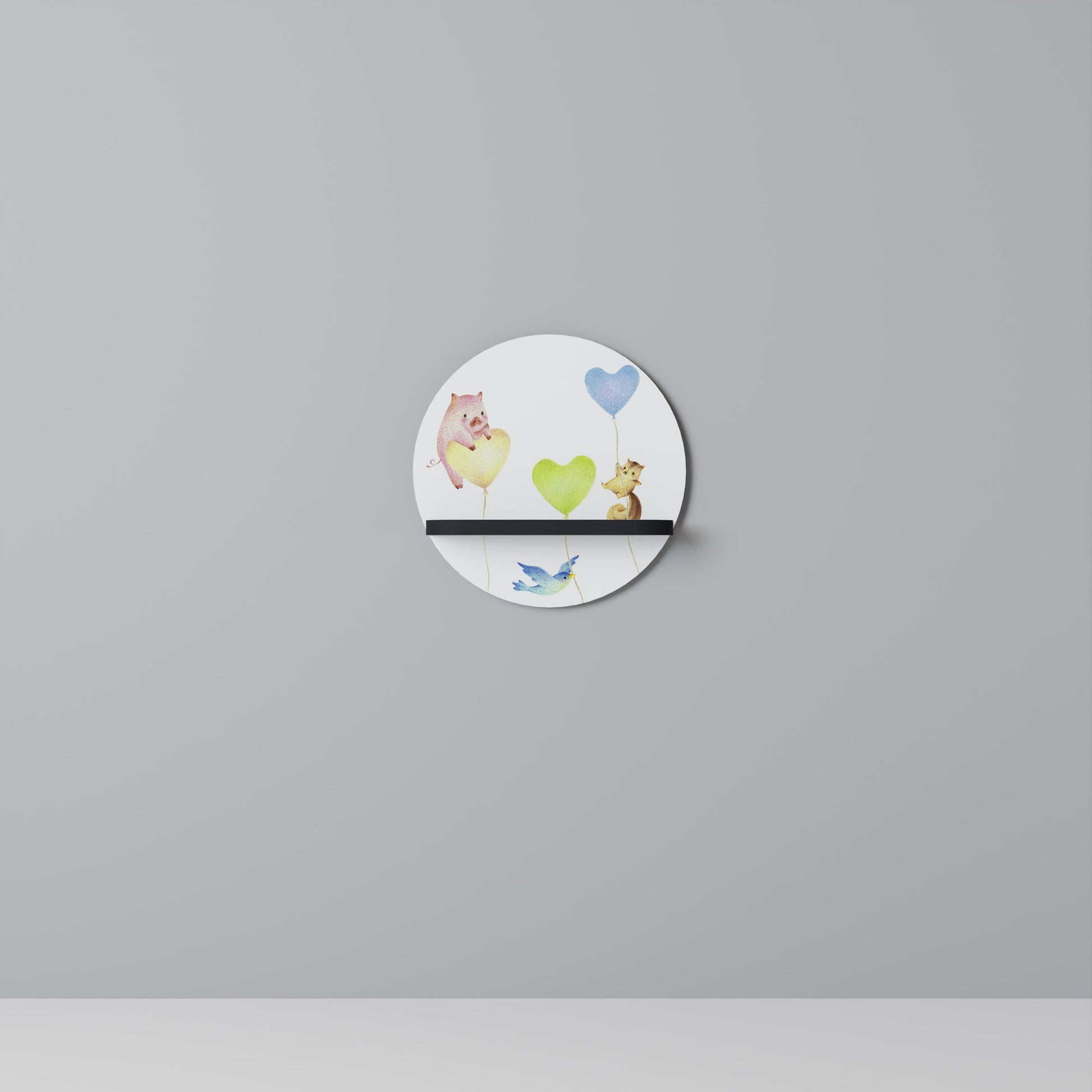 BALLOON FRIENDS Round Art Shelf In Black Finish