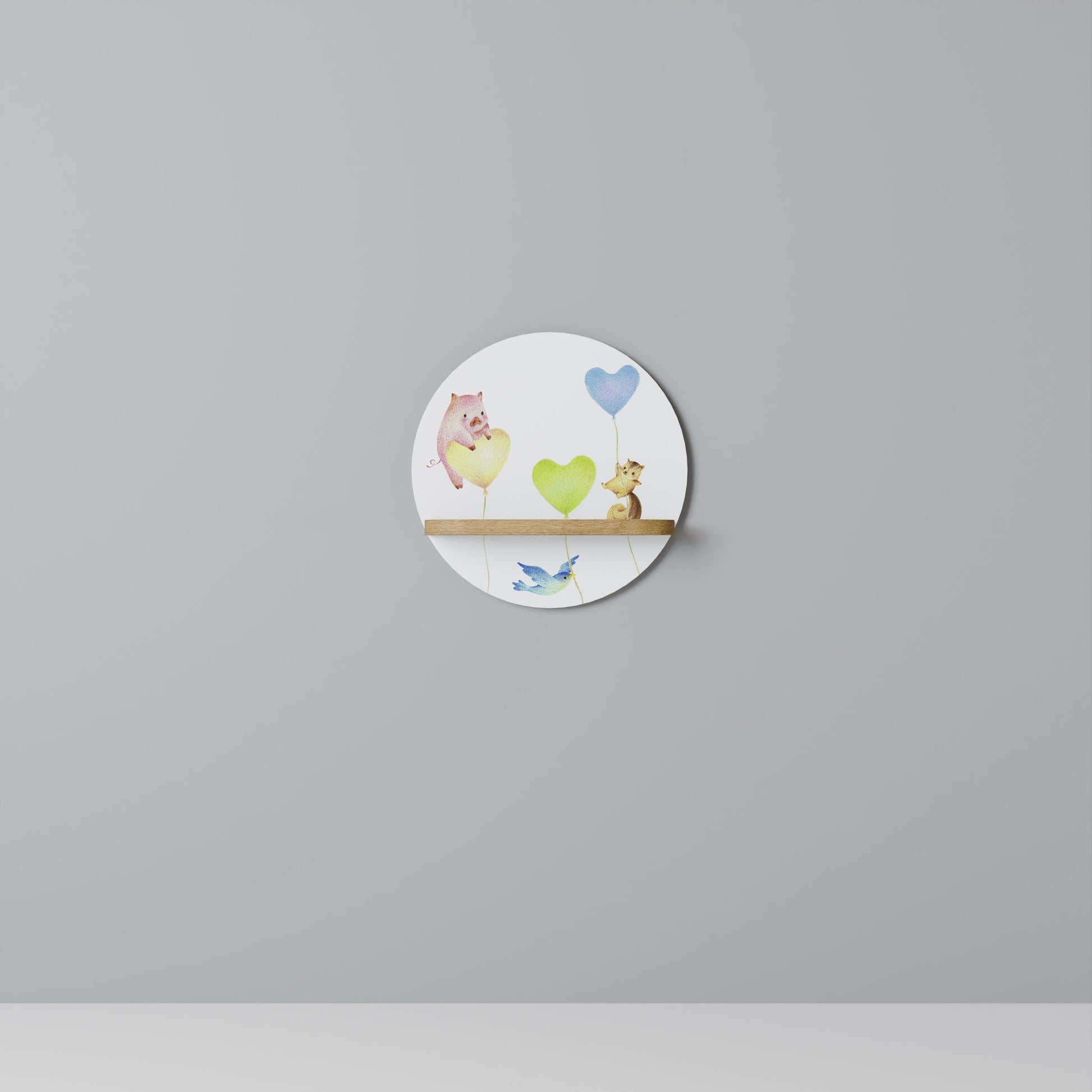 BALLOON FRIENDS Round Art Shelf In Oak Effect