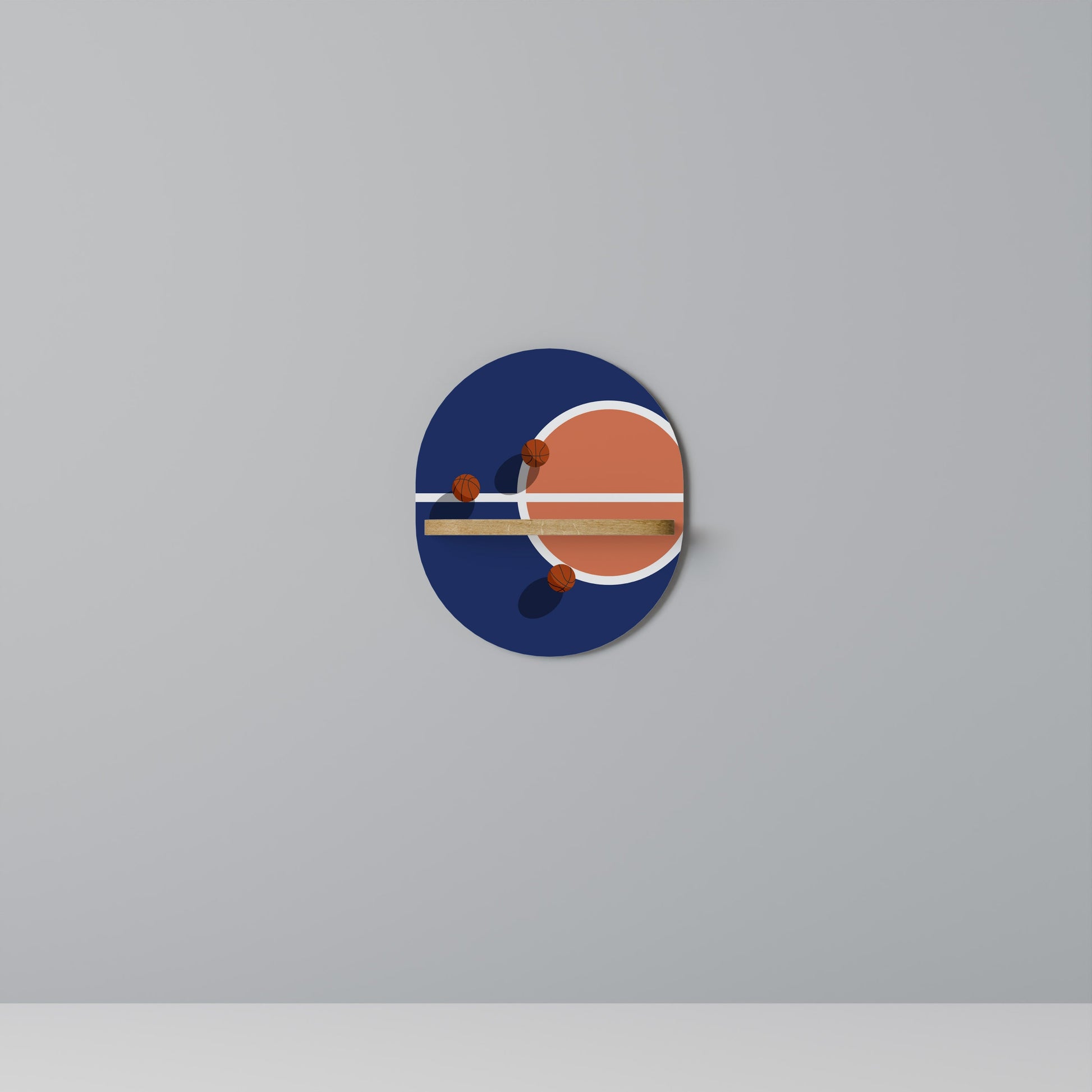 BASKETBALL CHALLENGE Oval Art Shelf In Oak Effect