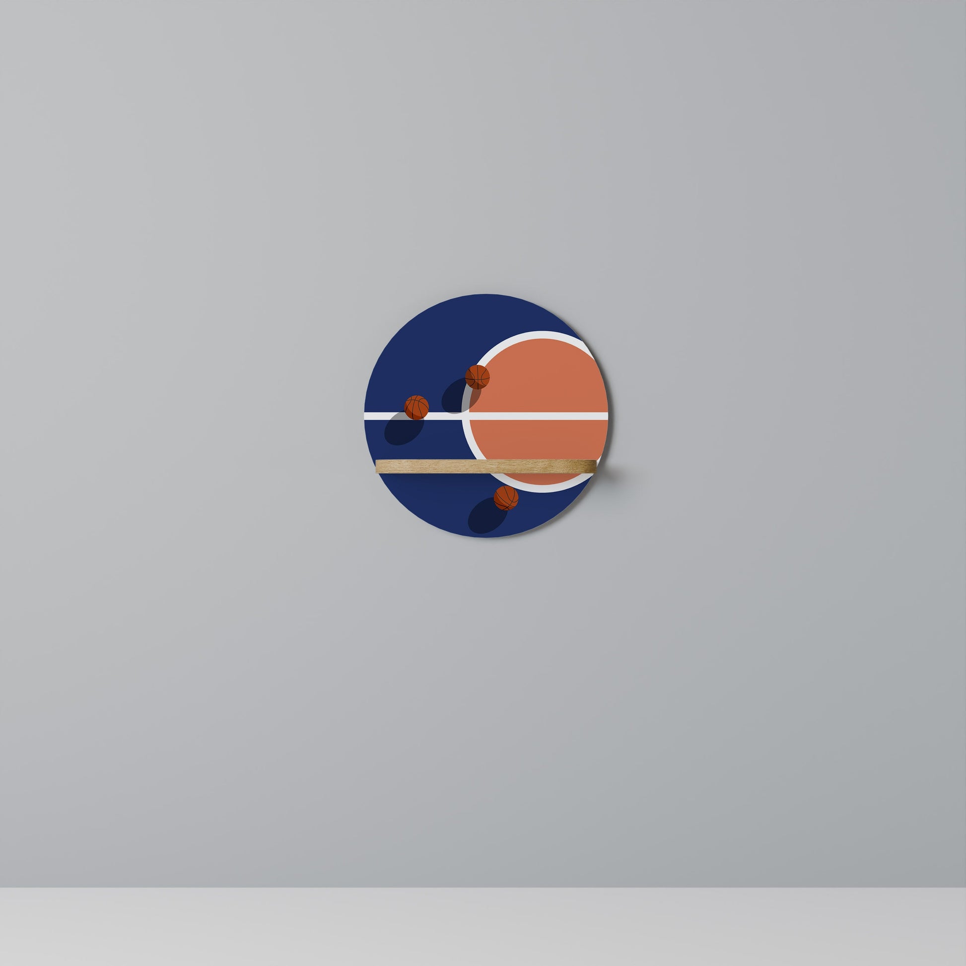 BASKETBALL CHALLENGE Round Art Shelf In Oak Effect