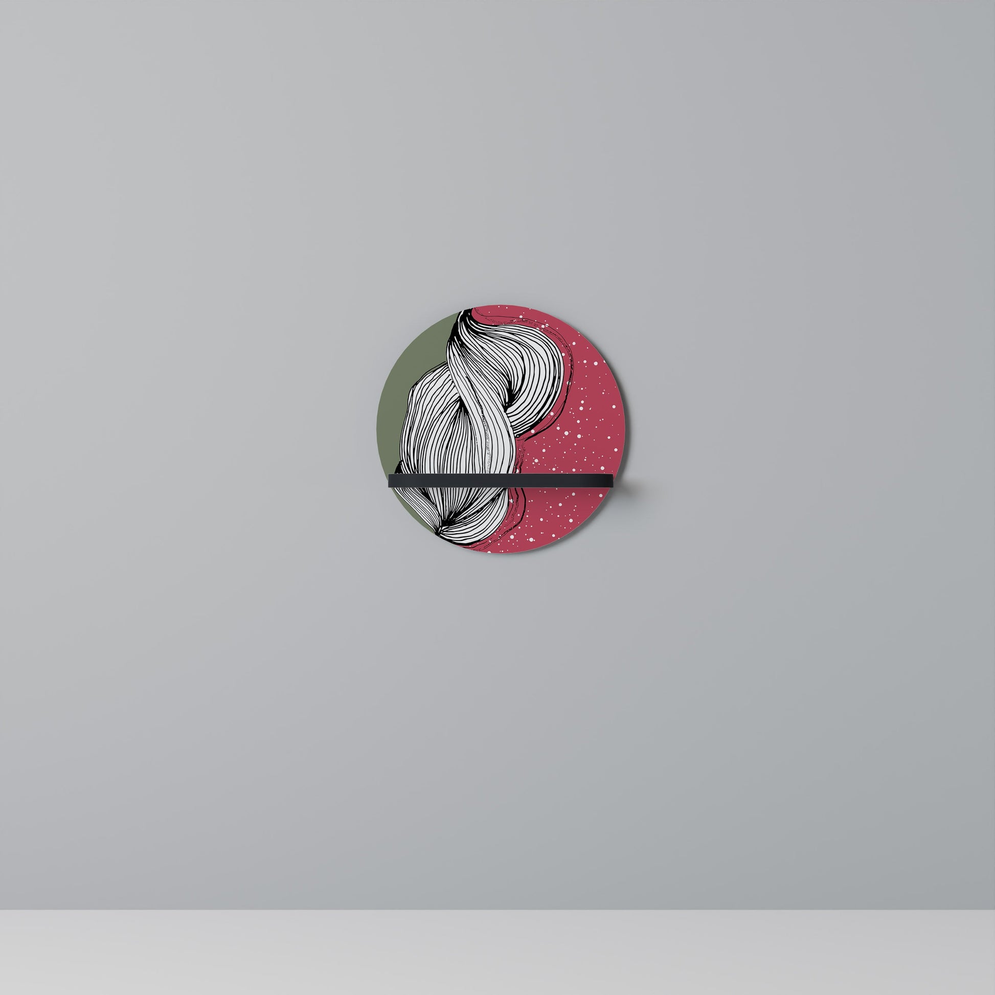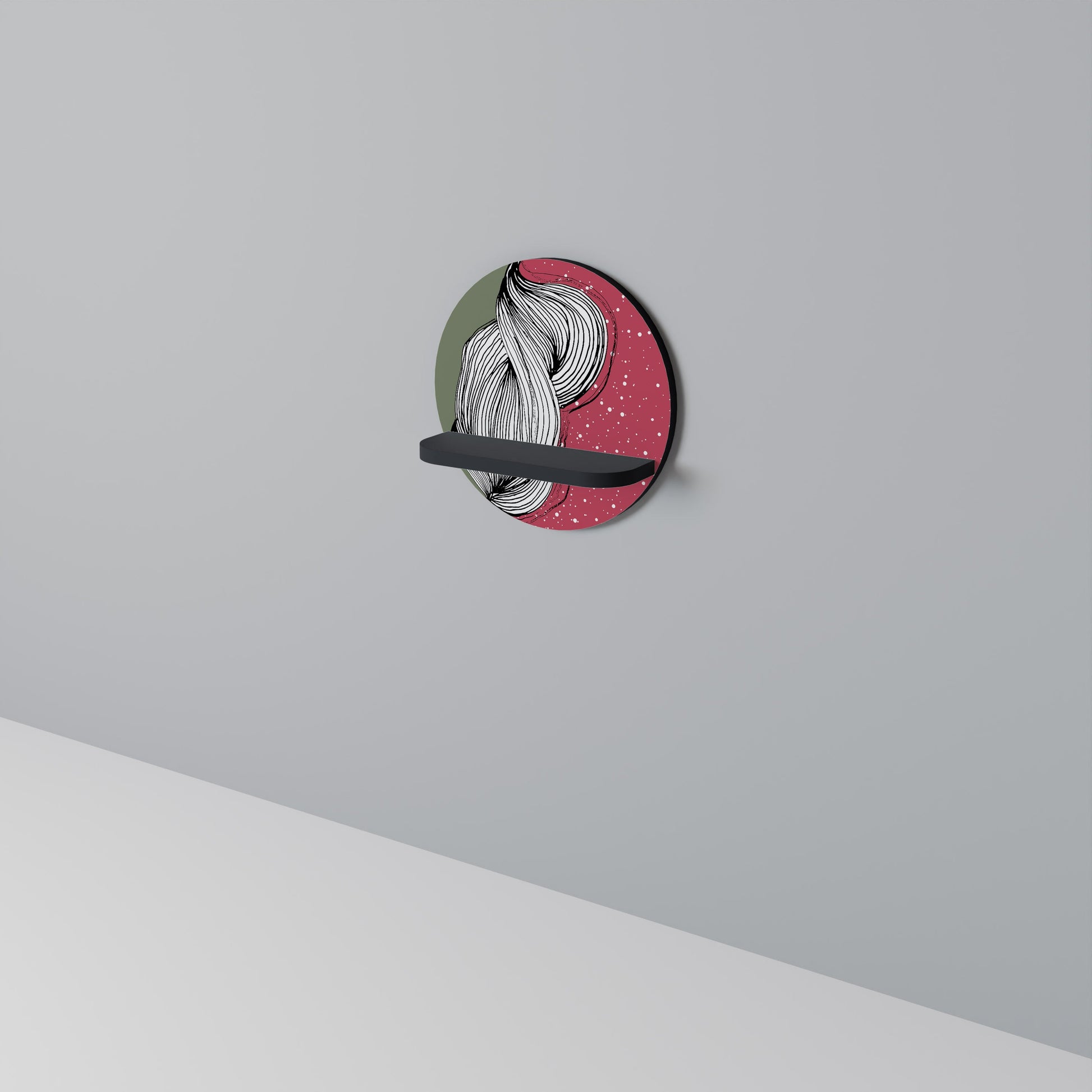 The shelf captivates with its smooth, round shape, adding a sense of balance and sophistication to any space. The deep black finish introduces a touch of contemporary elegance and visual contrast, making it a striking addition to both minimalist and industrial-style interiors.