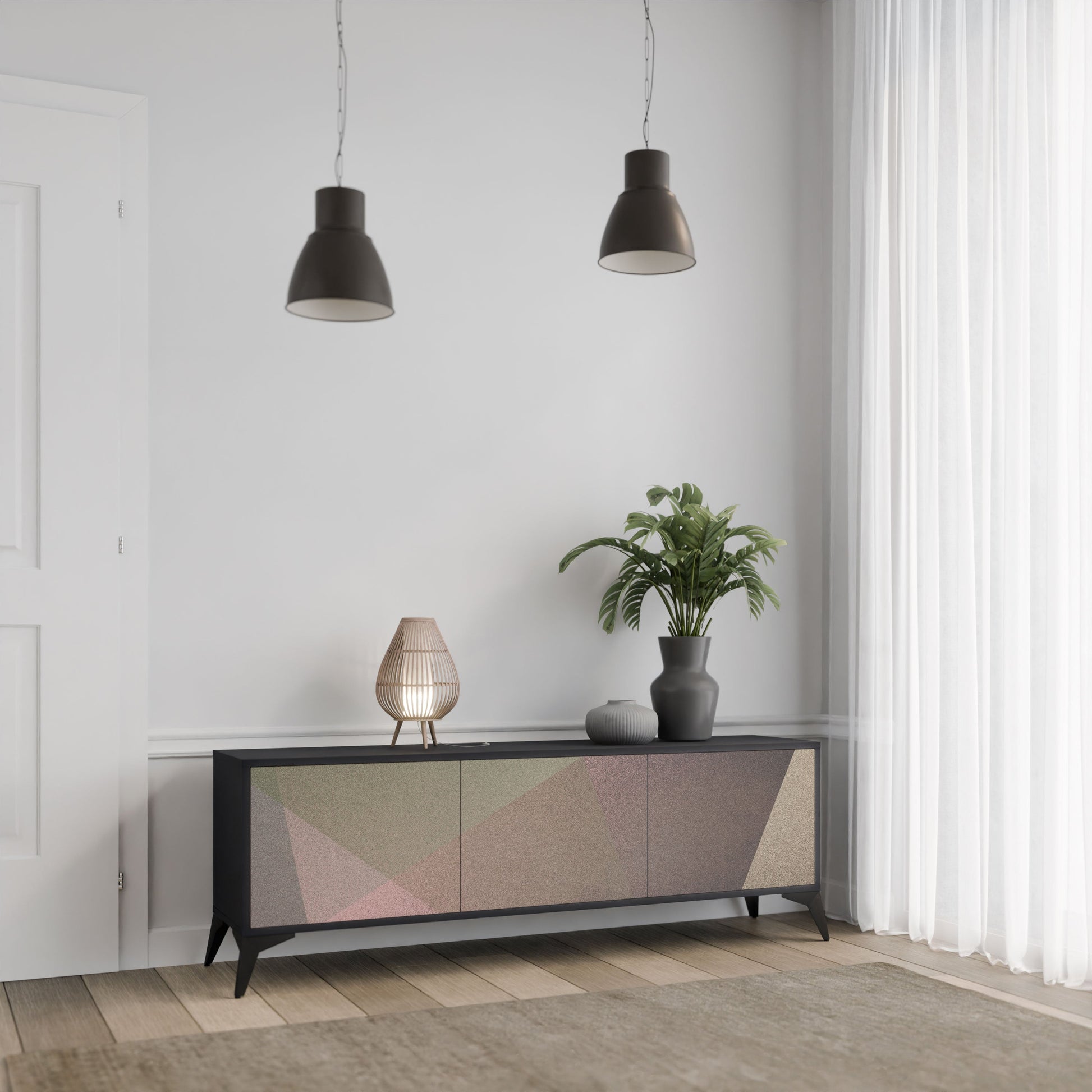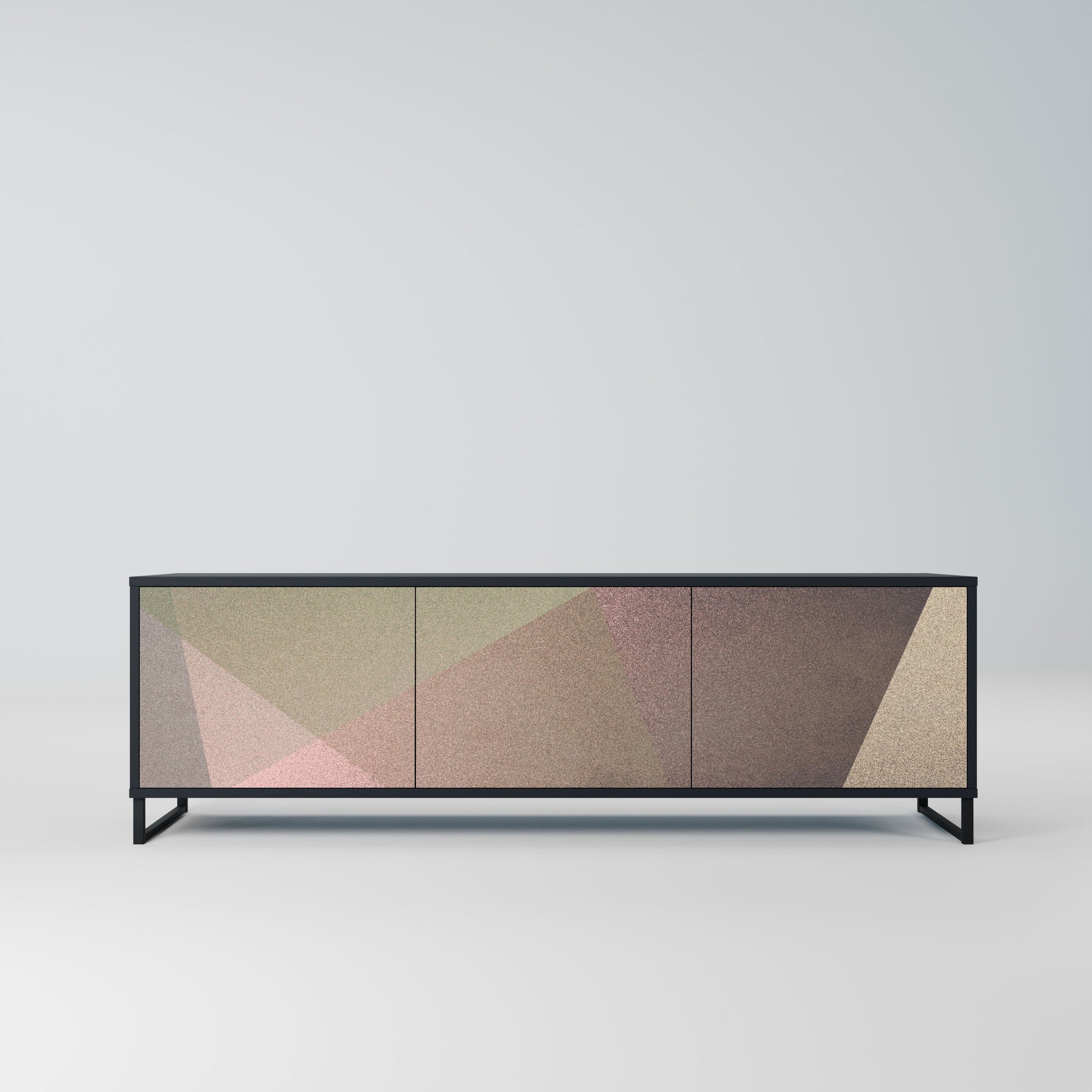 BEIGE GEOMETRY 3-Door TV Stand in Black Finish