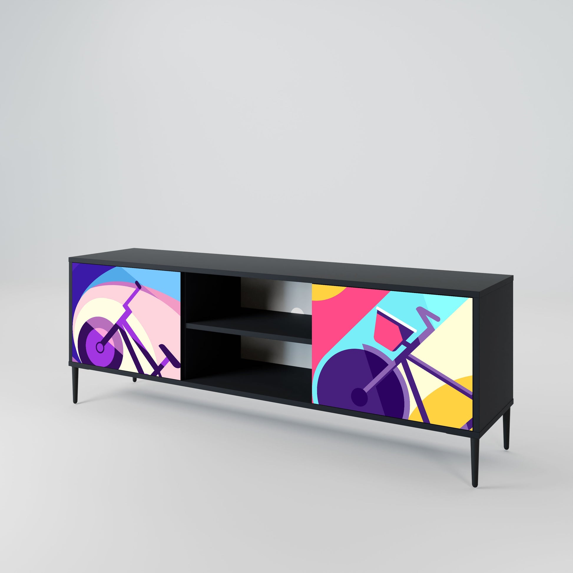 BIKE DREAMS 2-Door TV Stand in Black Finish