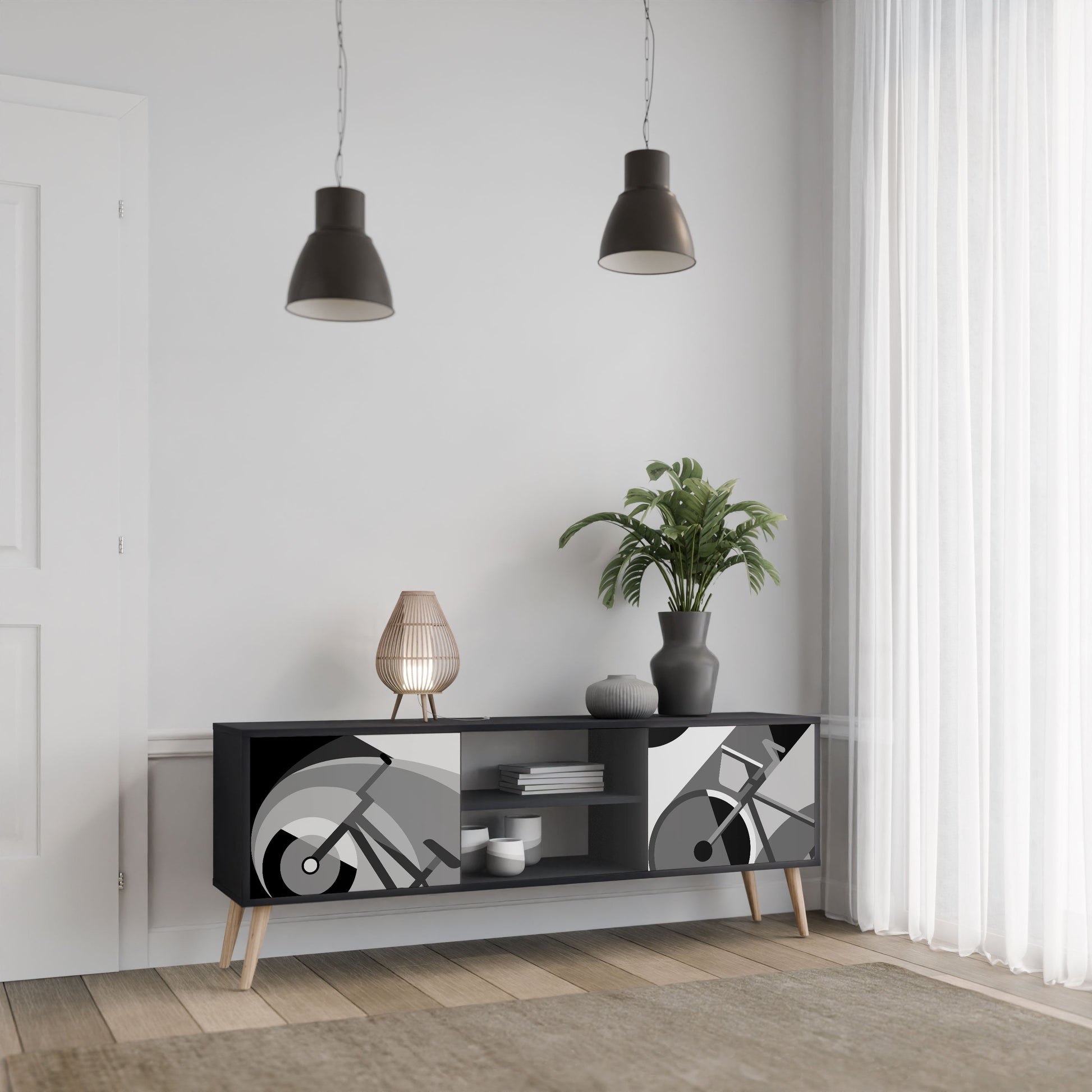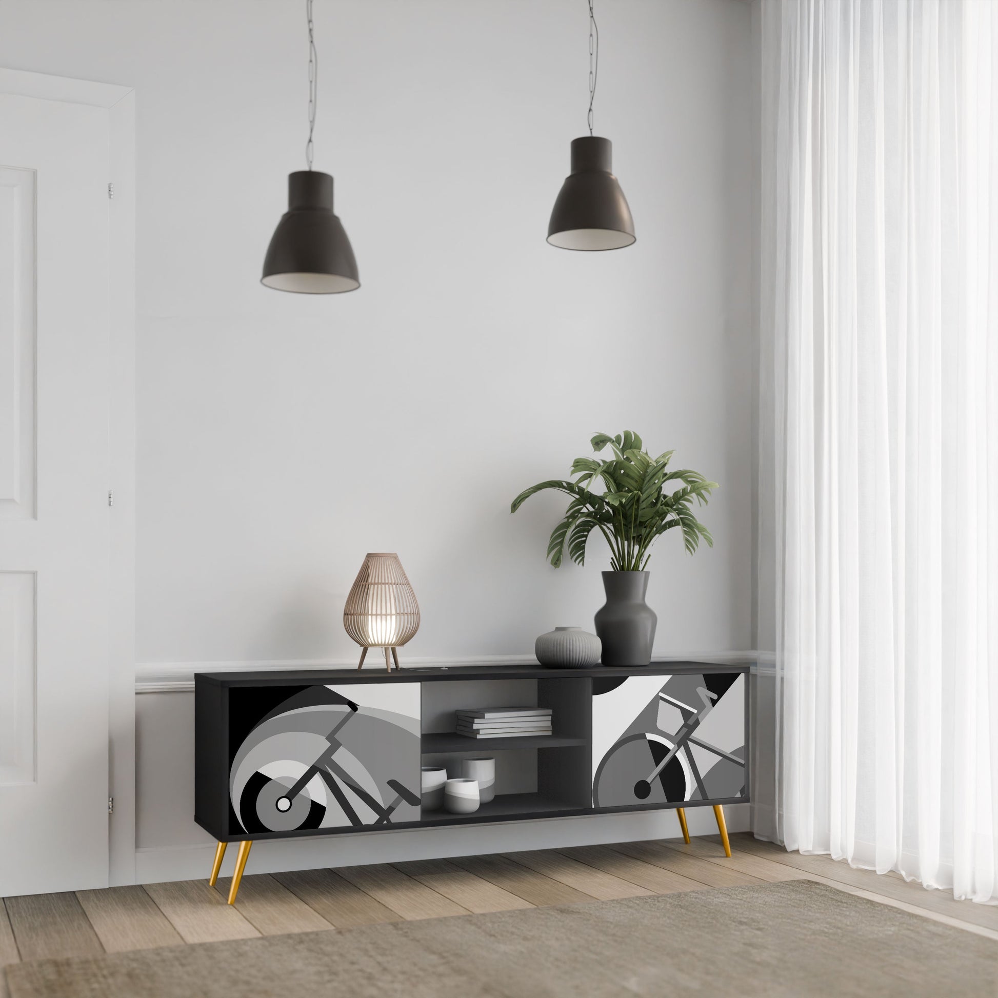 The black body gives the TV stand an elegant, modern look, while the fronts with an exceptional print draw attention, making it the focal point of any room. The spacious interior provides room for electronic devices, cables, remotes, and other accessories, helping you maintain order and organization.