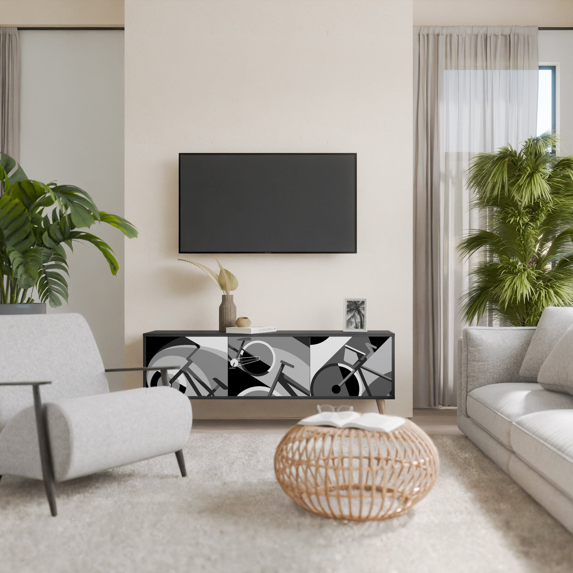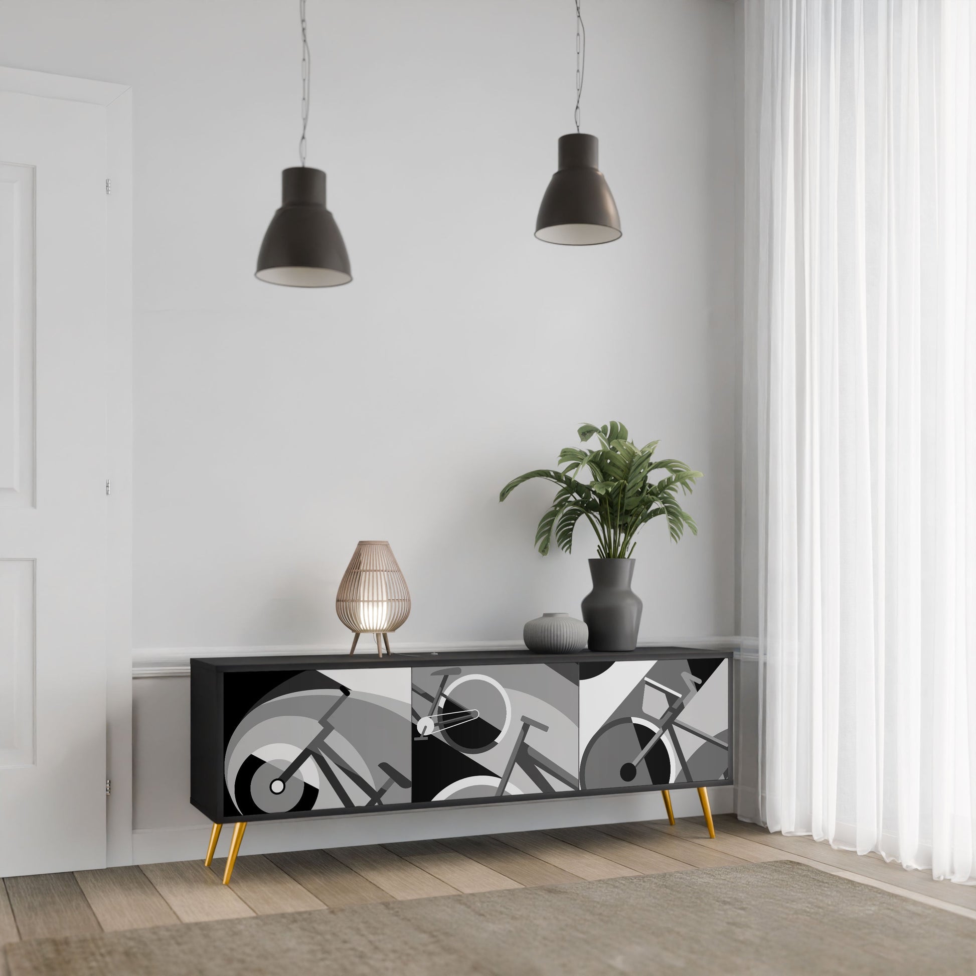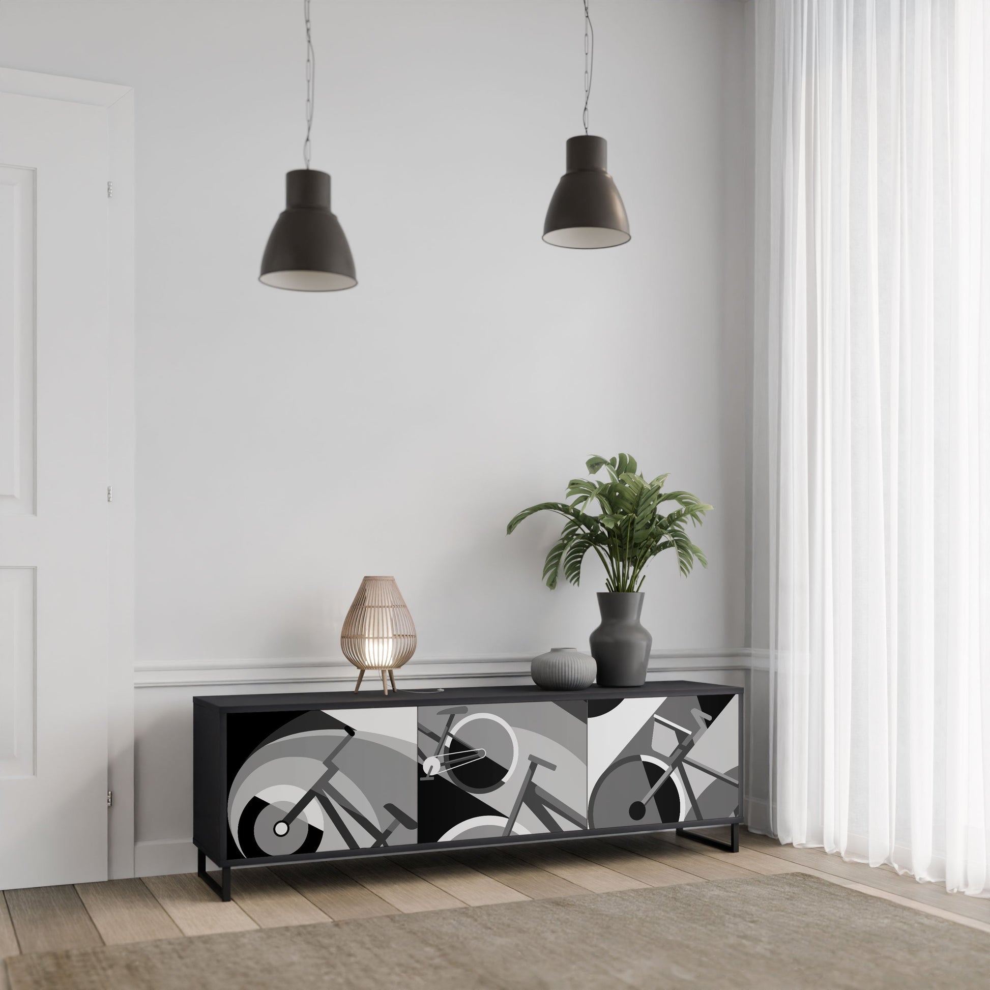 BIKE ENERGY 3-Door TV Stand in Black Finish