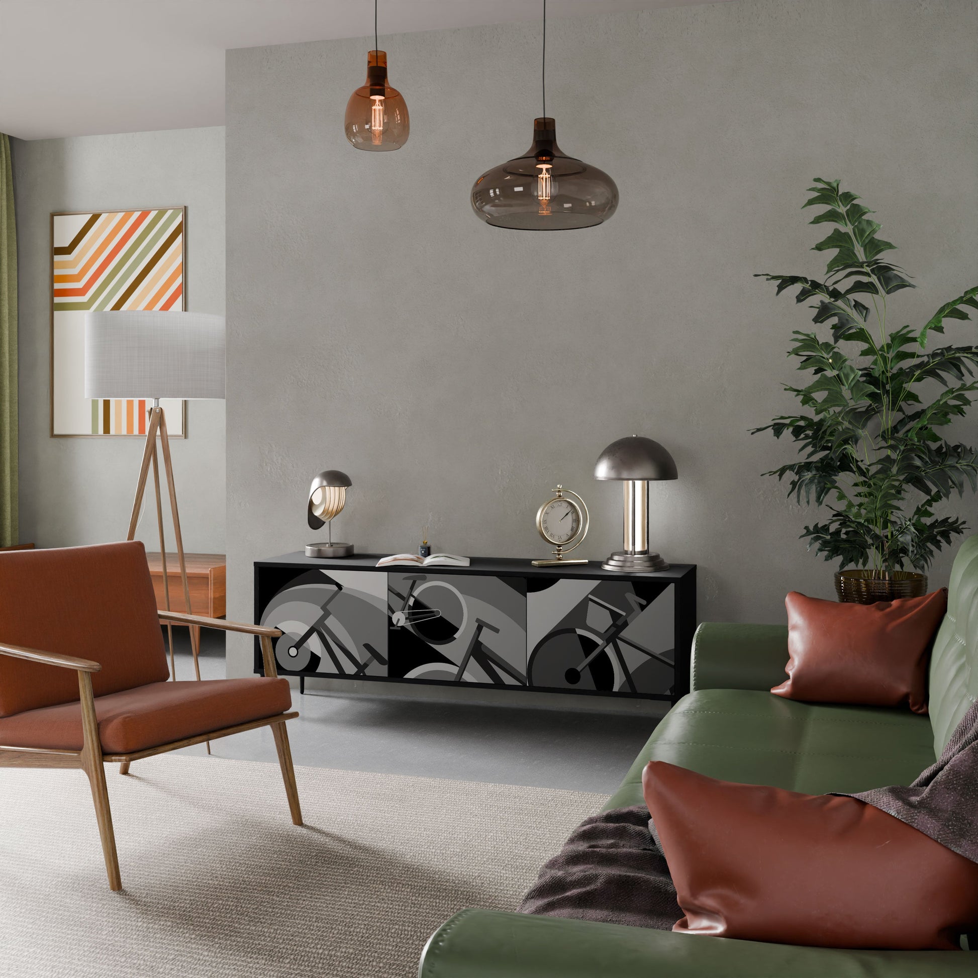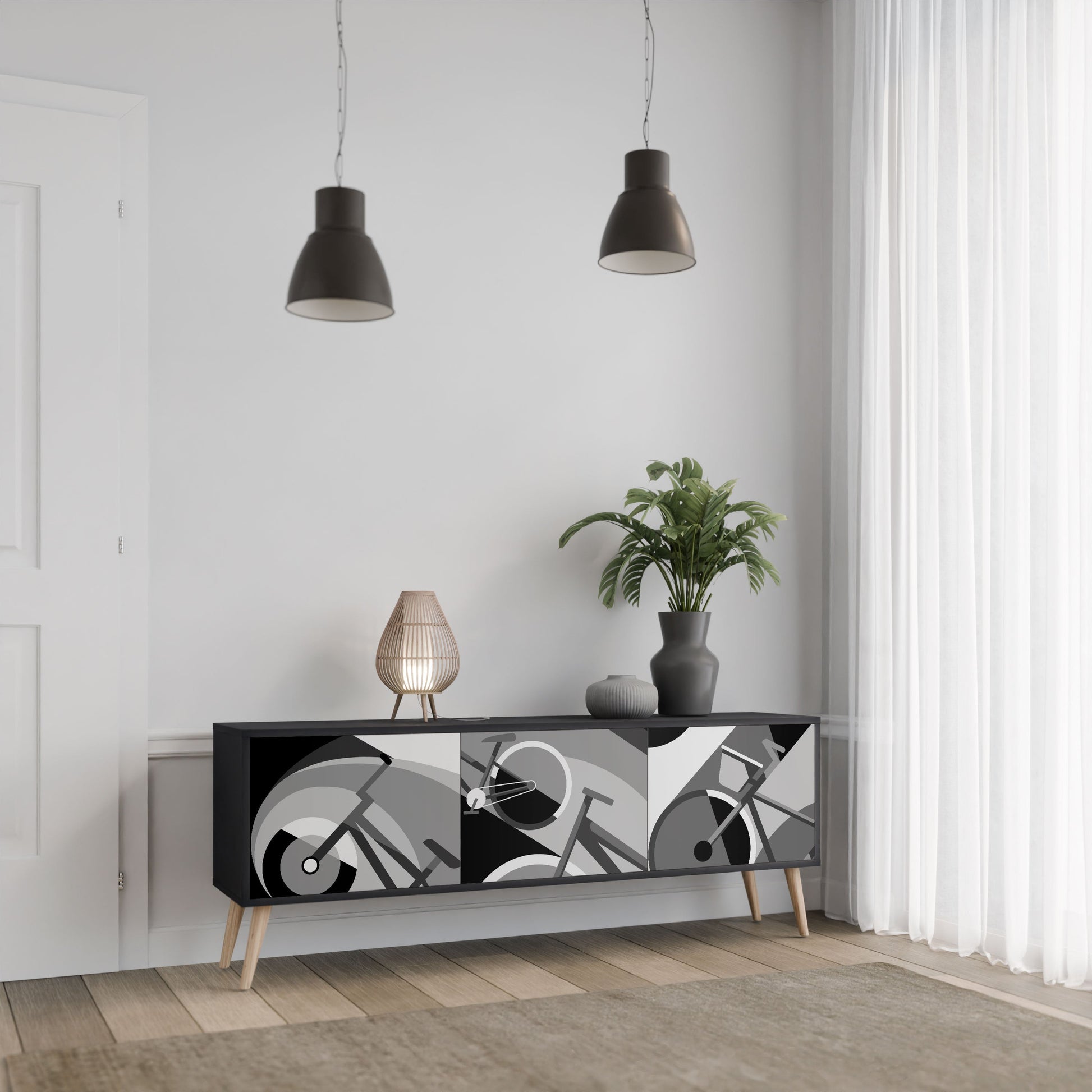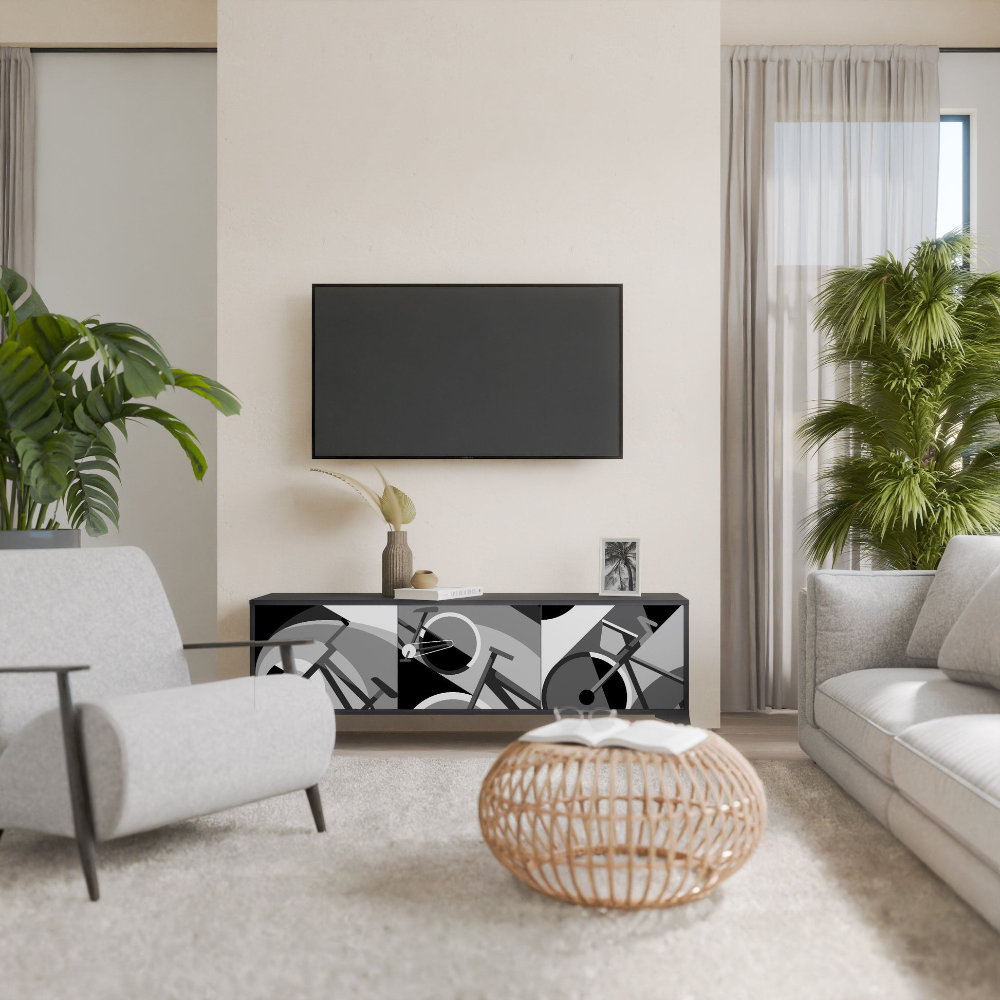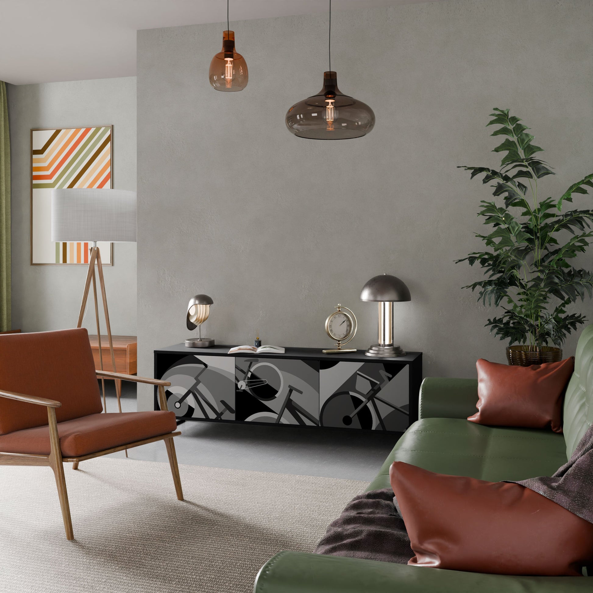 BIKE ENERGY 3-Door TV Stand in Black Finish