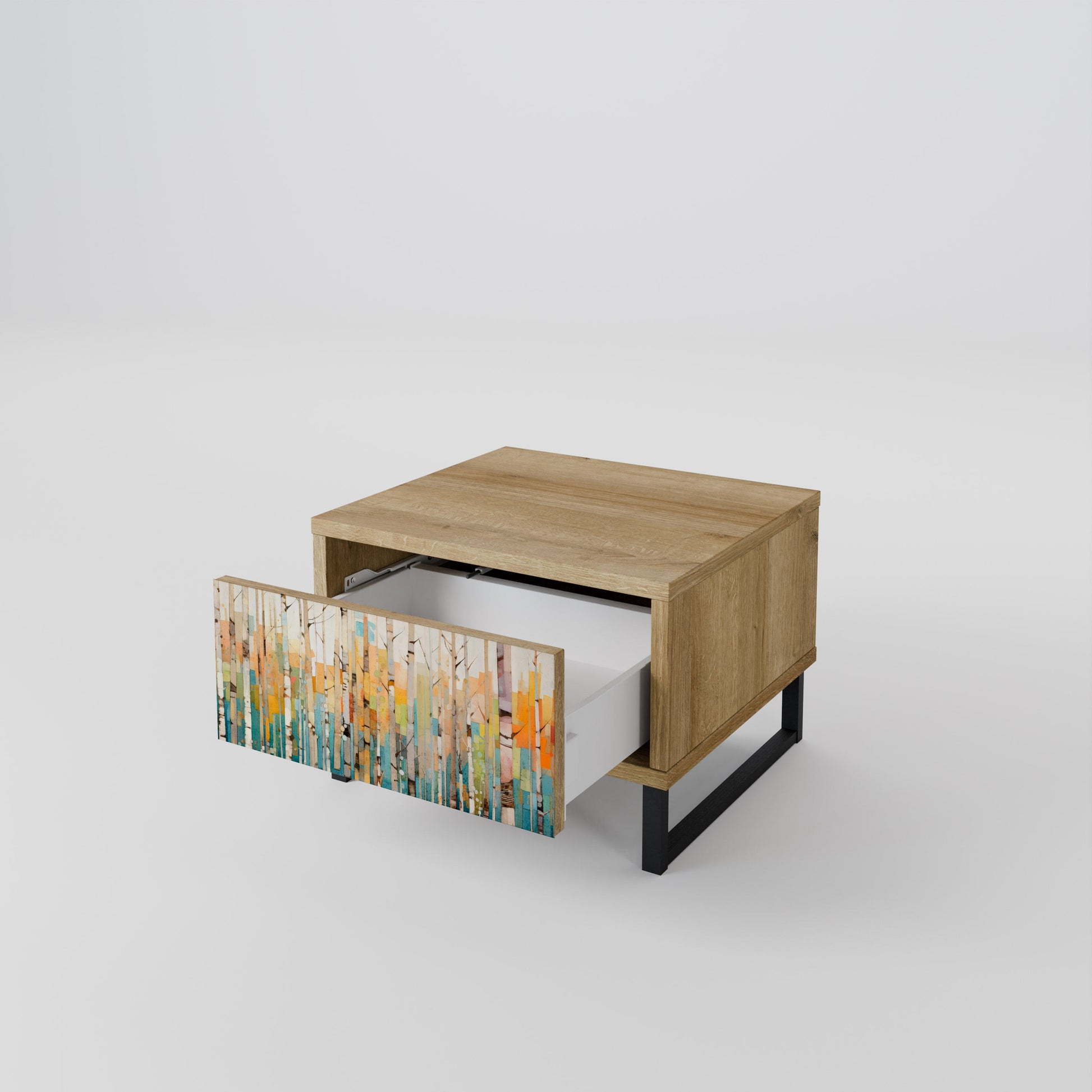 Discover functionality and elegance in a compact form with our bedside unit with a drawer. This practical and stylish piece of furniture perfectly combines the natural beauty of wood with modern design on the drawer front, creating a harmonious element for any bedroom.