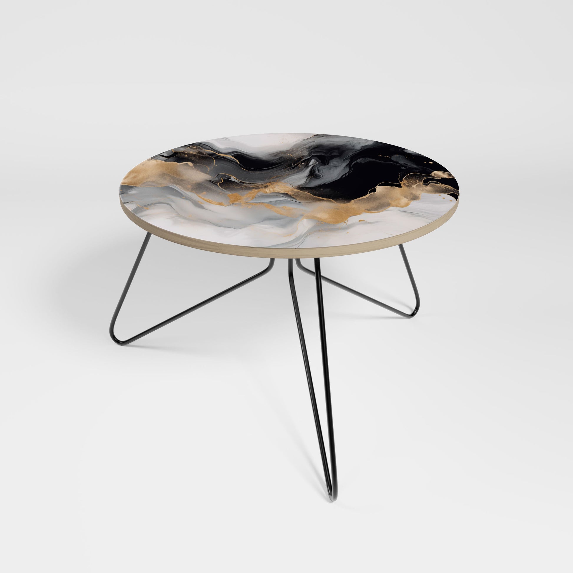 Discover the versatility and style of our designer coffee tables, now available in four elegant combinations of leg and tabletop edge finishes. Whether you favor the warm elegance of golden legs or the modern sophistication of black legs, each option complements the natural oak effect or the sleek black tabletop edge beautifully, enabling you to align your table with your interior design.