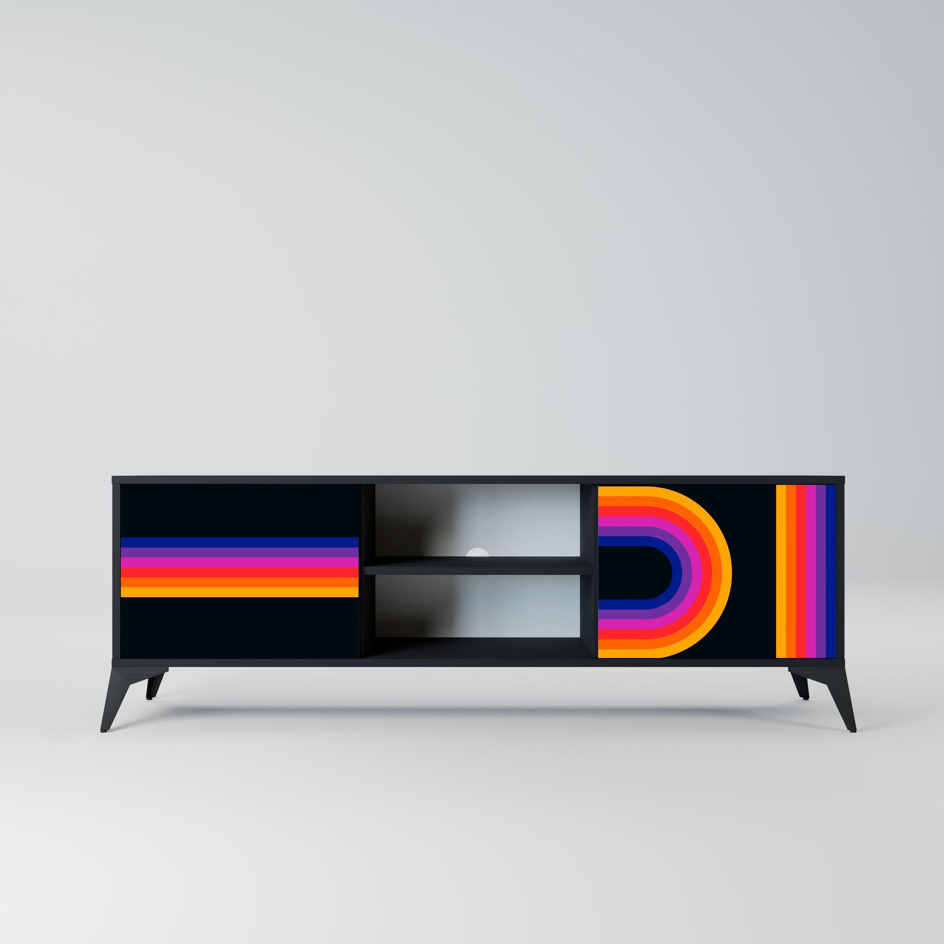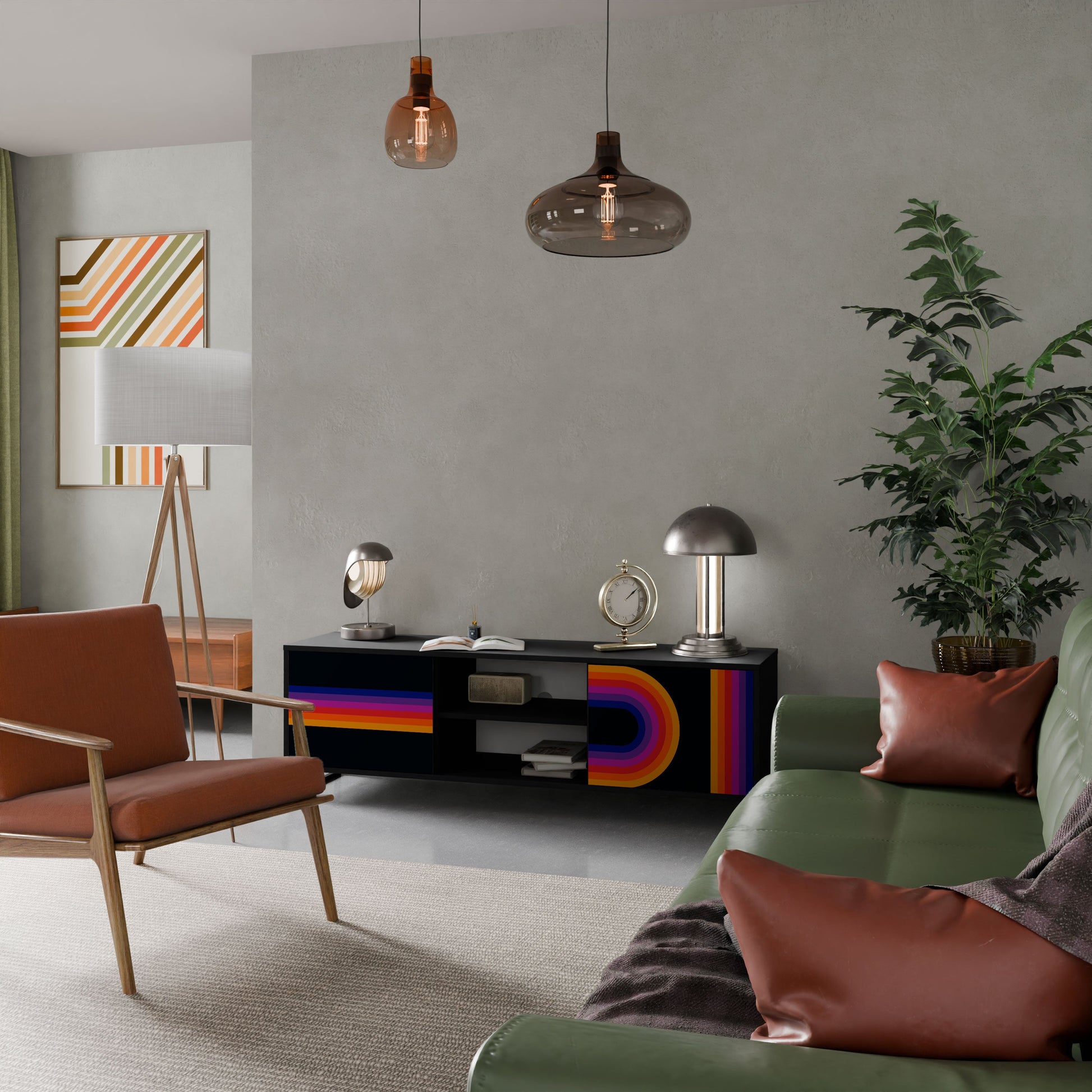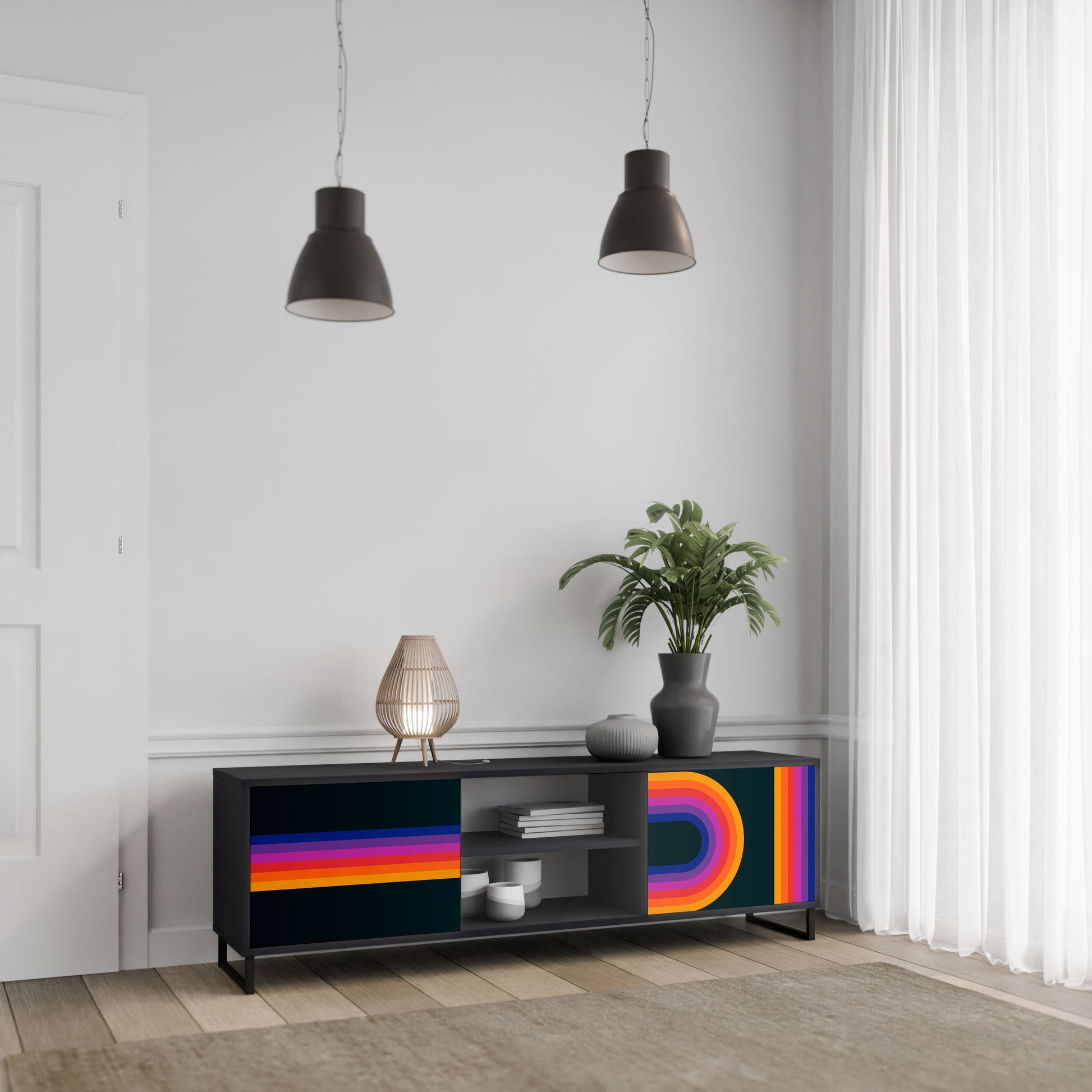 The black body gives the TV stand an elegant, modern look, while the fronts with an exceptional print draw attention, making it the focal point of any room. The spacious interior provides room for electronic devices, cables, remotes, and other accessories, helping you maintain order and organization.