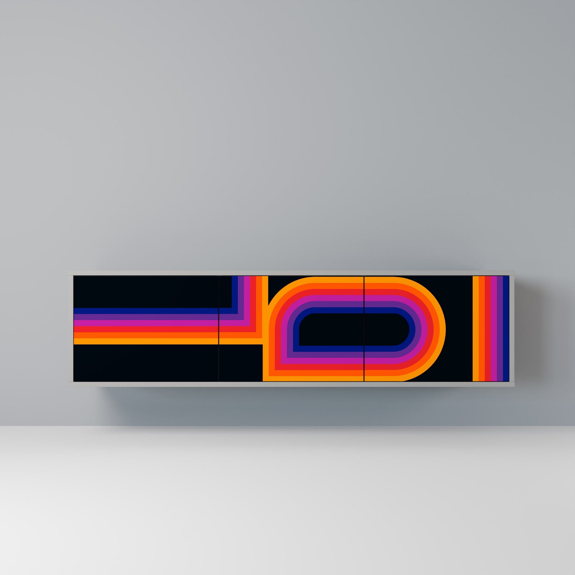 The grey body of the stand creates a refined, modern accent that pairs beautifully with industrial and minimalist arrangements. The fronts with a designer print add character and uniqueness, making this piece not only practical but also a standout decorative element.