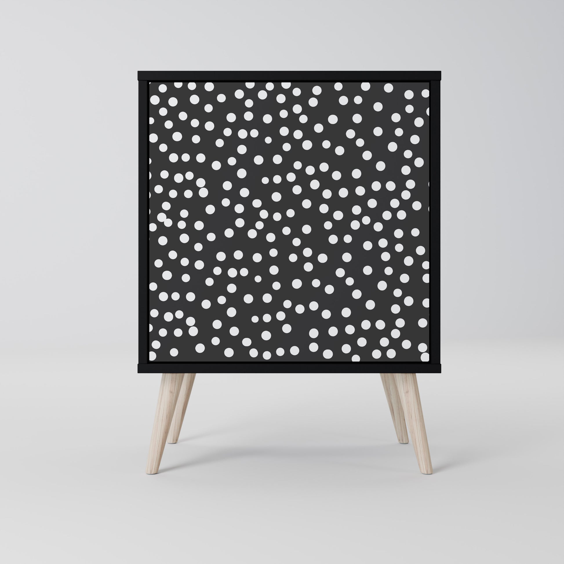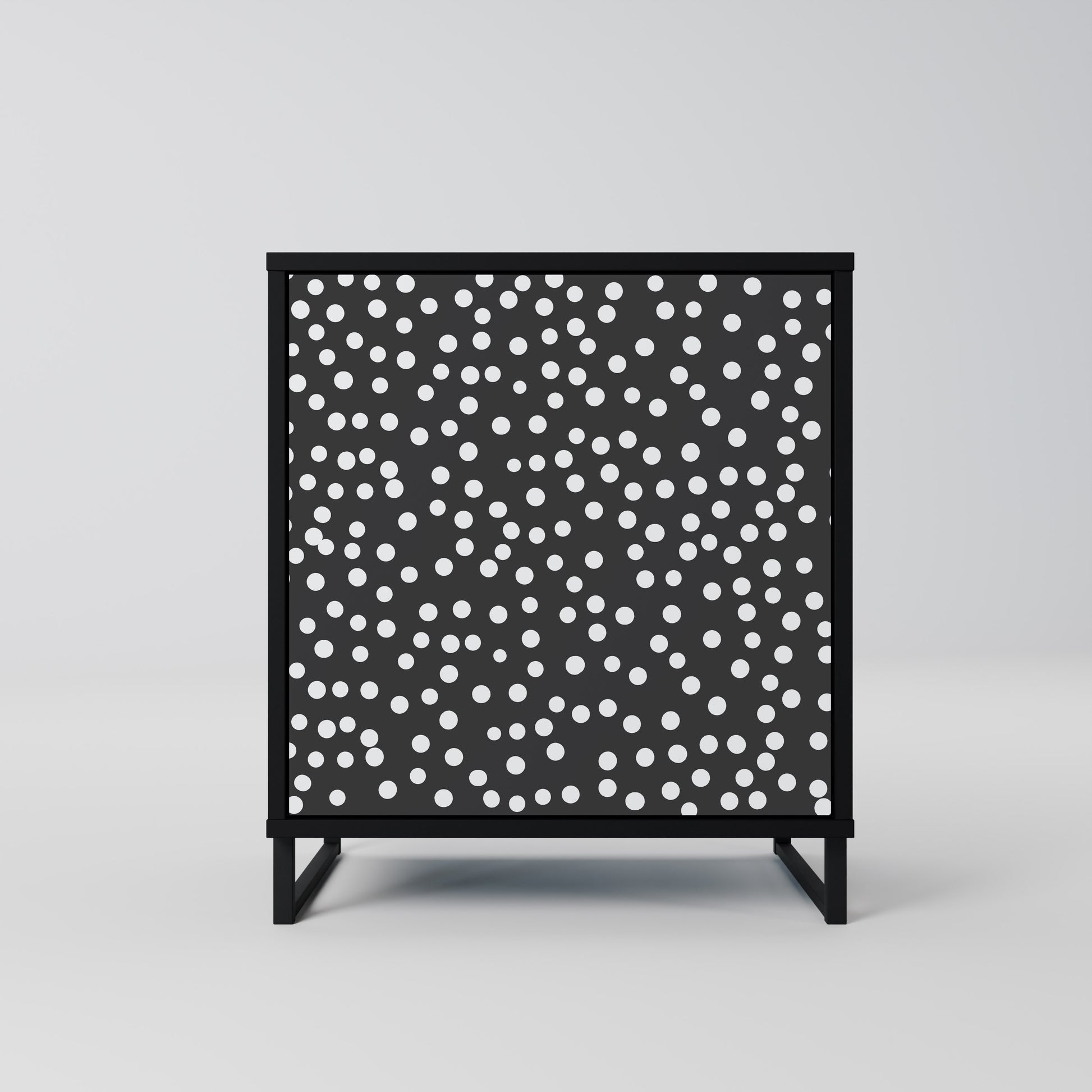 This compact yet remarkably elegant piece of furniture impresses with its minimalist design, perfectly fitting into both modern and classic interiors. The black body emphasizes the furniture’s bold character, while the fronts with a unique print add an artistic touch.