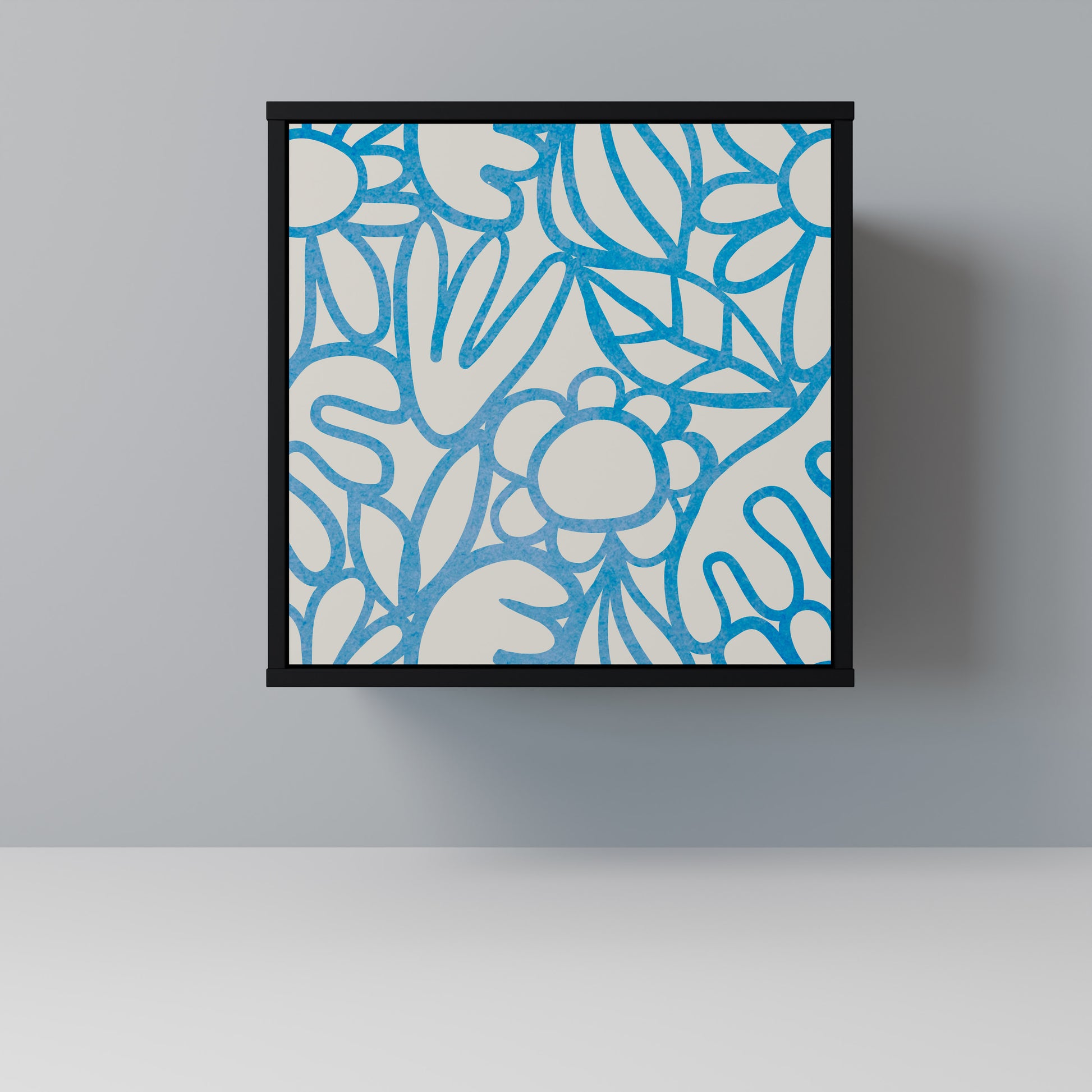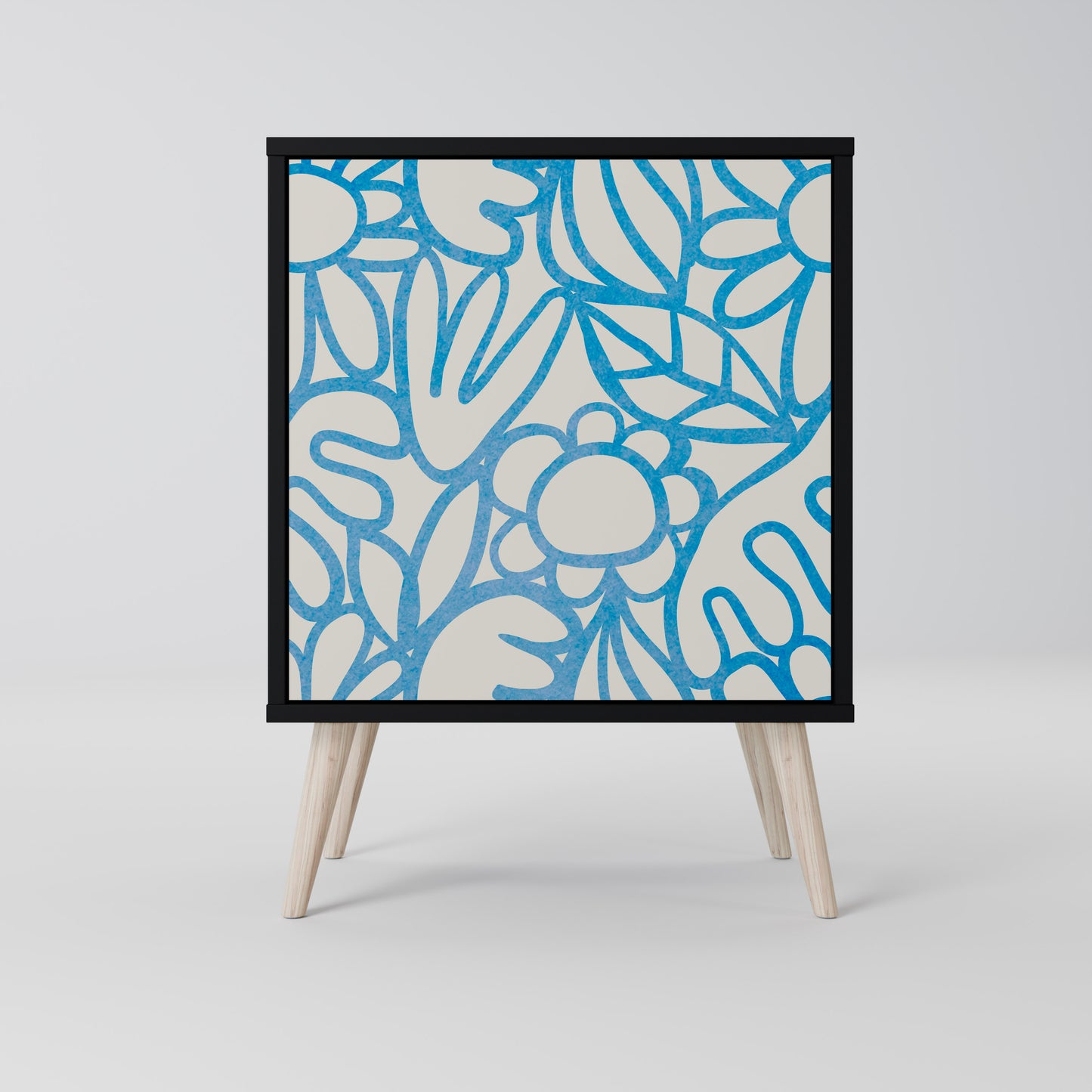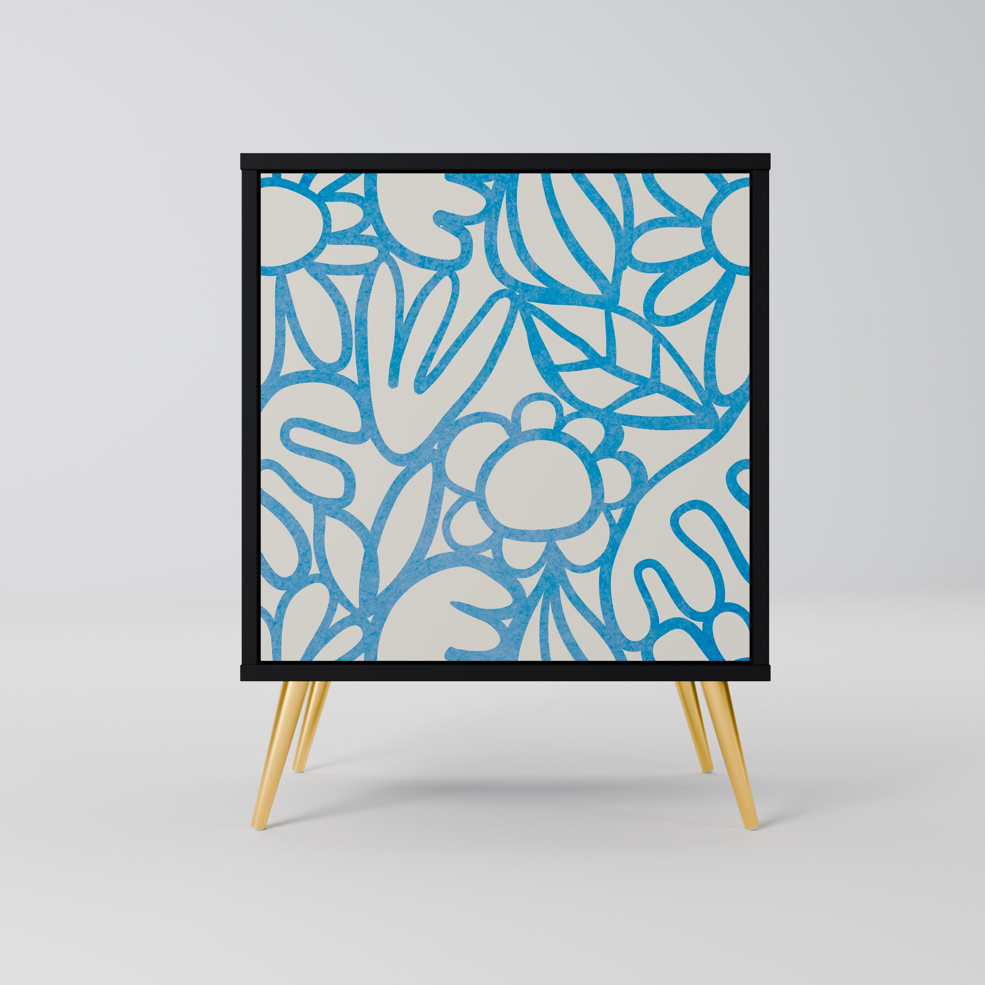 This compact yet remarkably elegant piece of furniture impresses with its minimalist design, perfectly fitting into both modern and classic interiors. The black body emphasizes the furniture’s bold character, while the fronts with a unique print add an artistic touch.