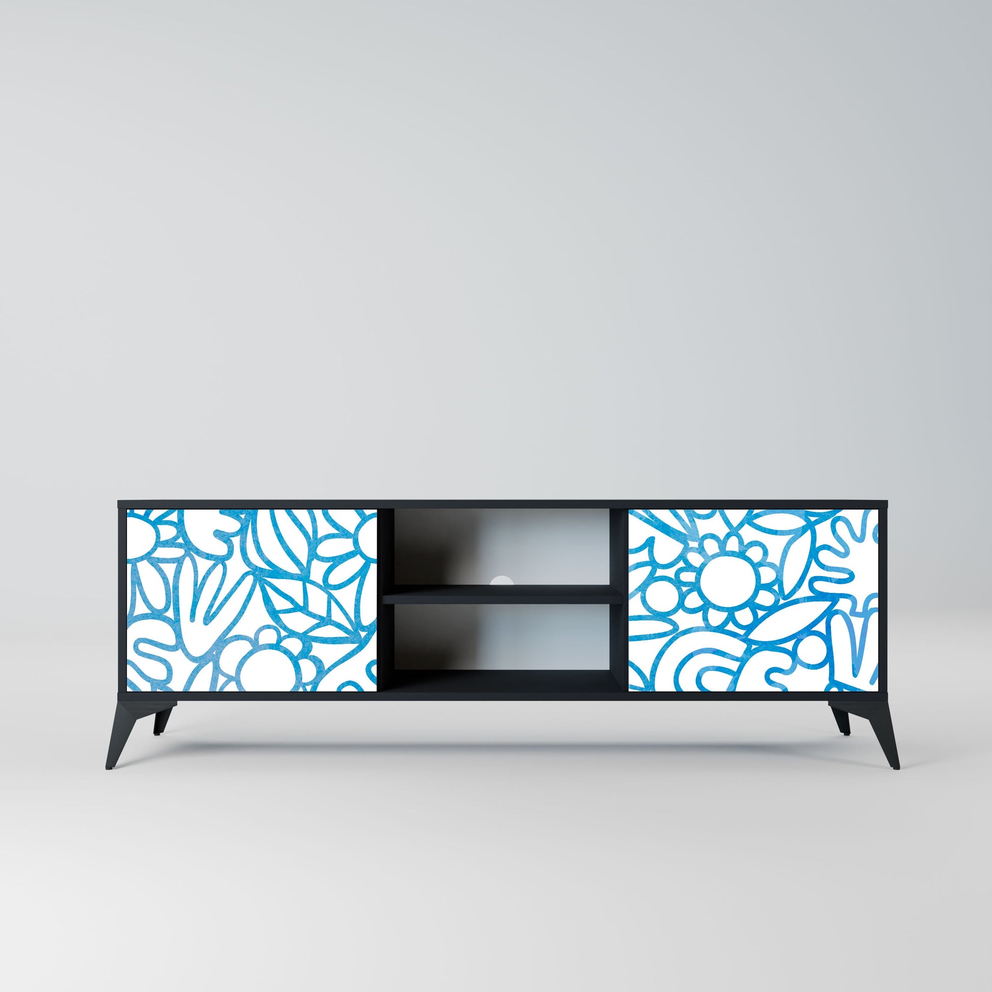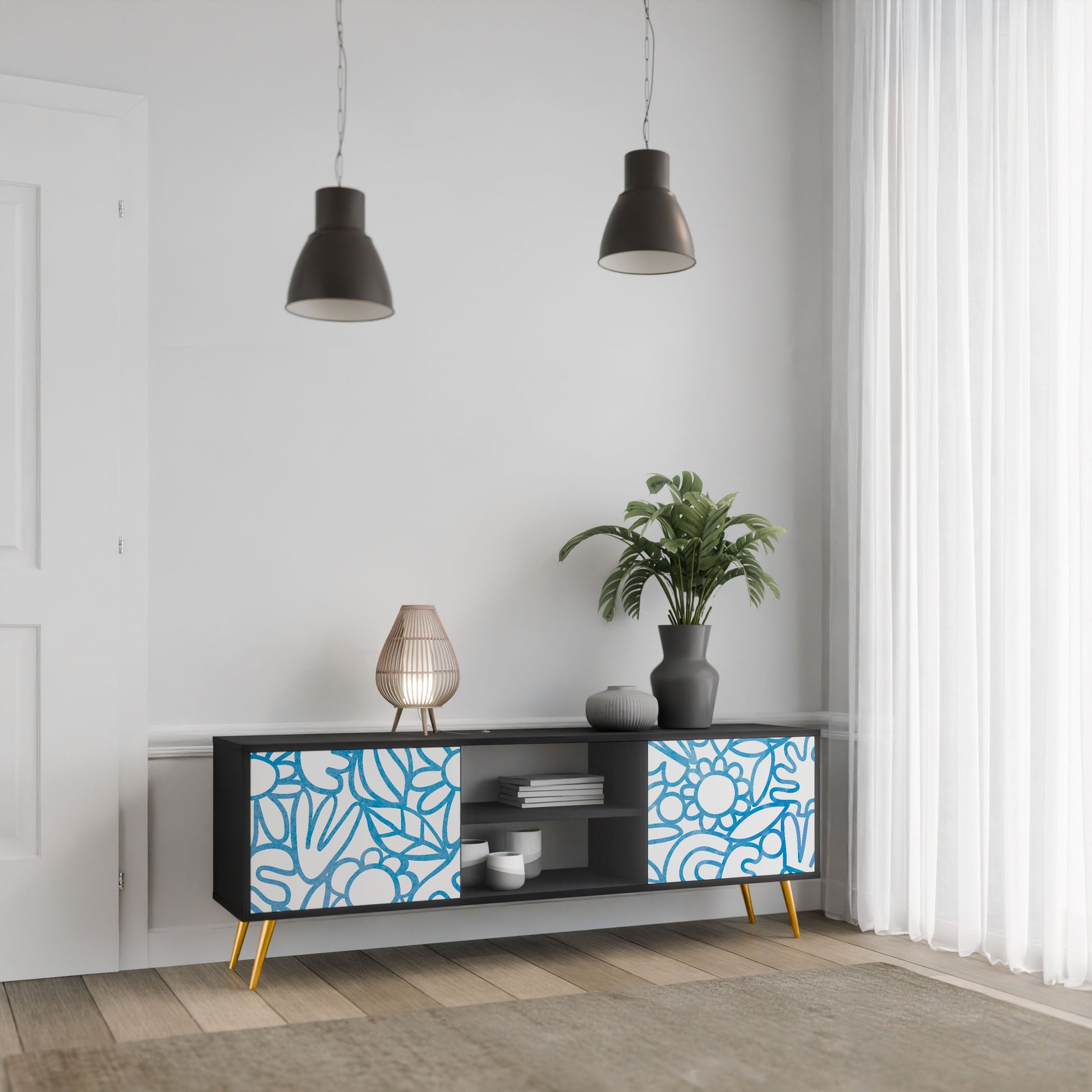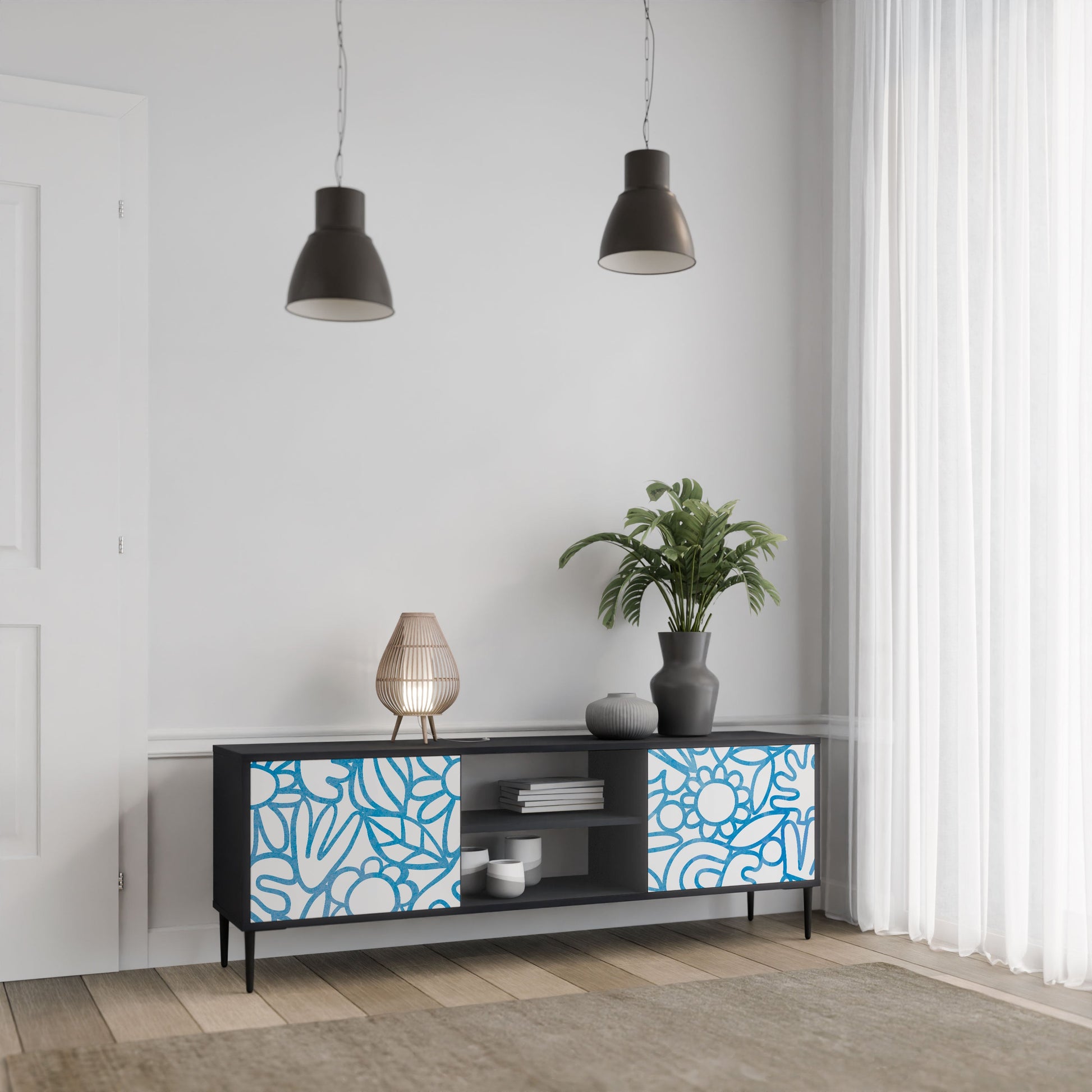 The black body gives the TV stand an elegant, modern look, while the fronts with an exceptional print draw attention, making it the focal point of any room. The spacious interior provides room for electronic devices, cables, remotes, and other accessories, helping you maintain order and organization.