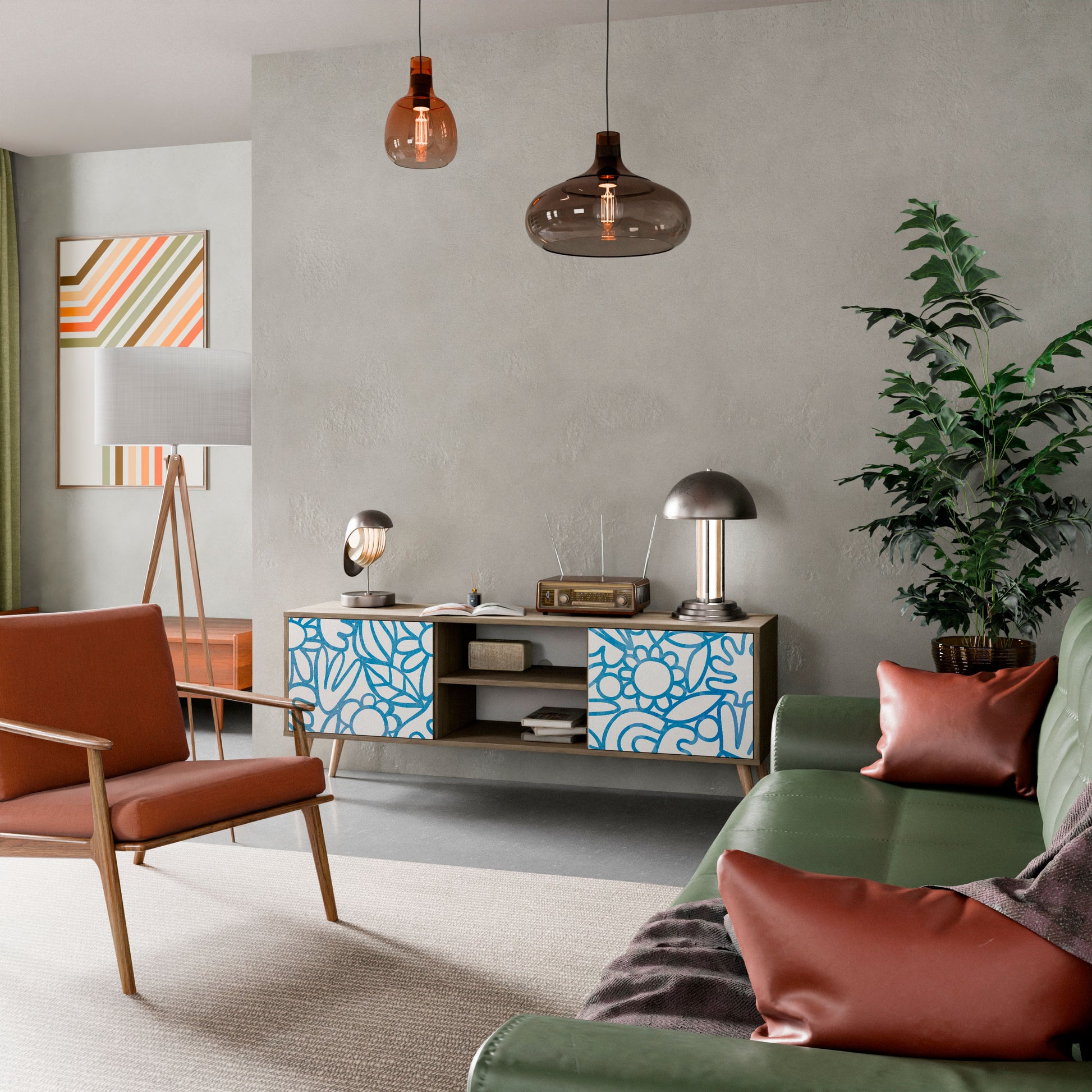BLOOMY MORNING 2-Door TV Stand in Oak Effect