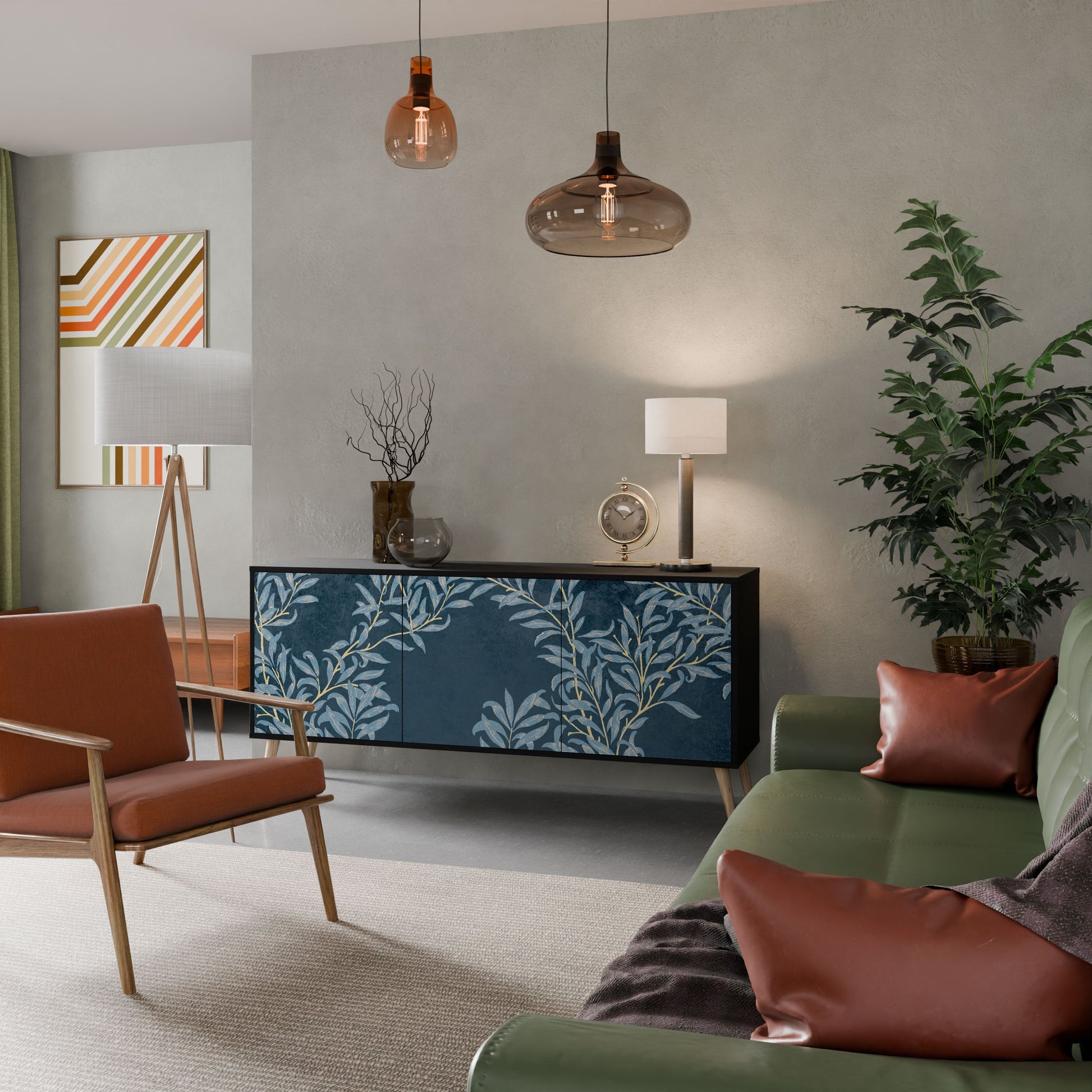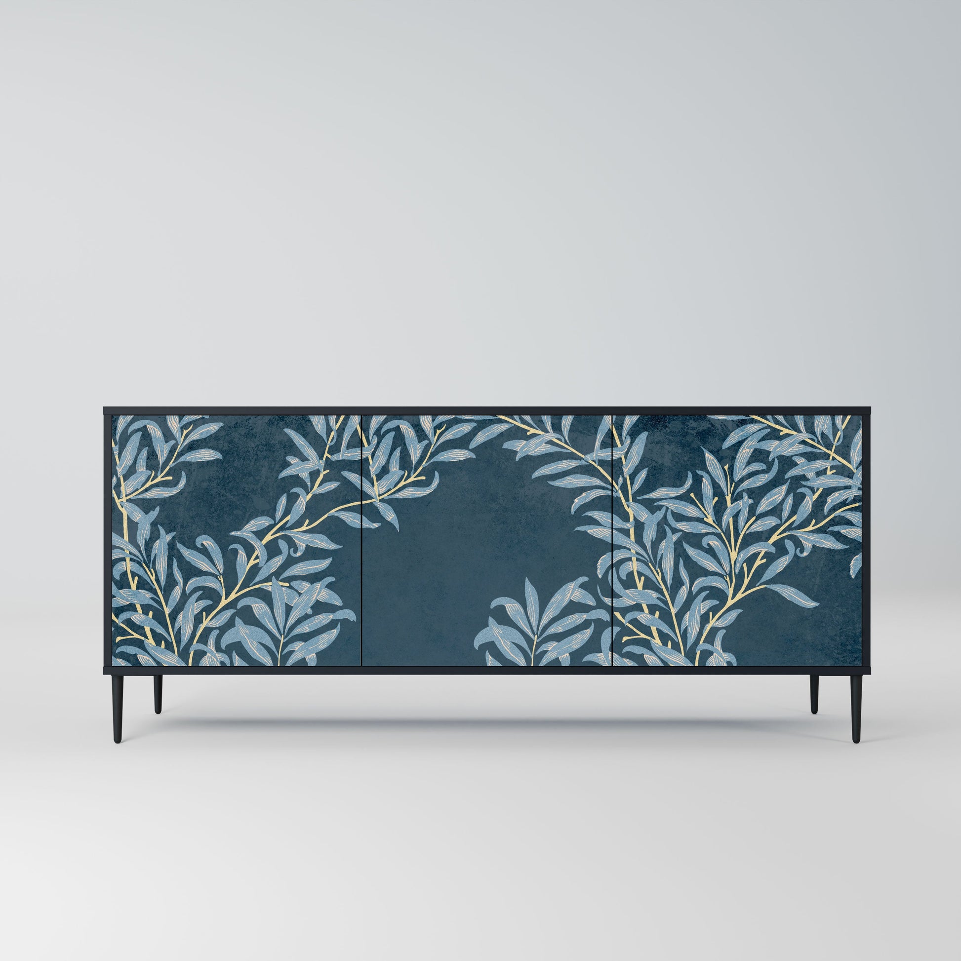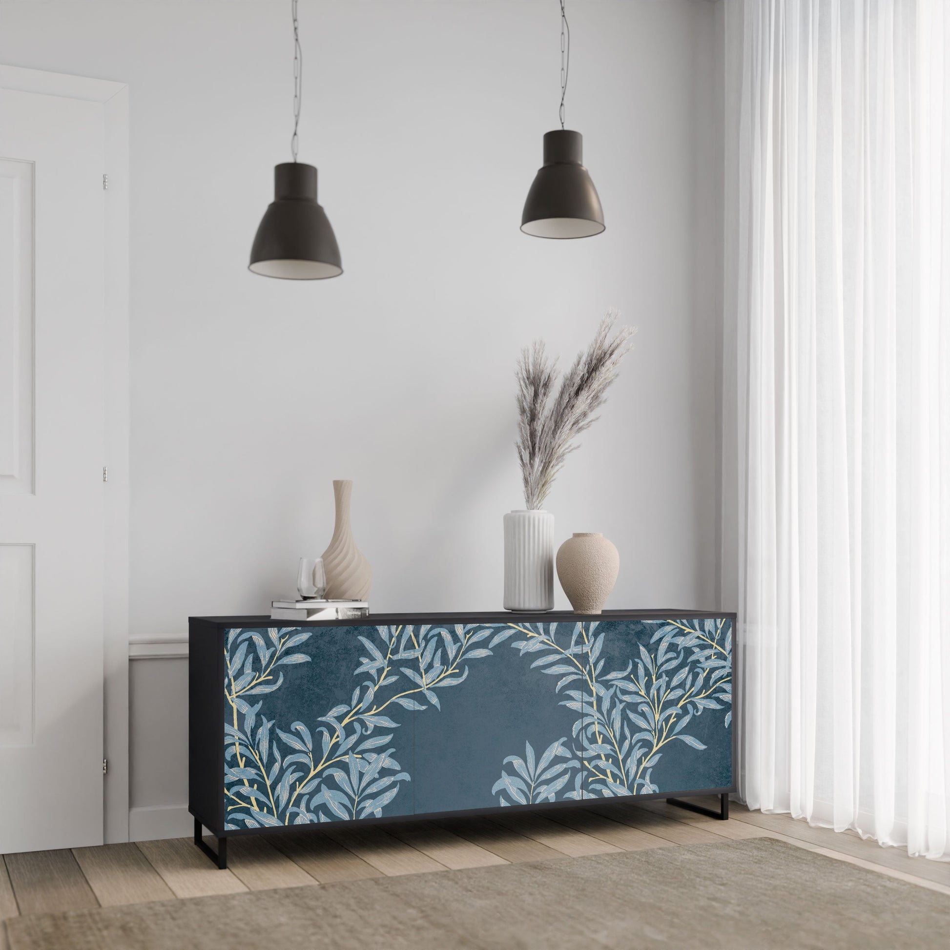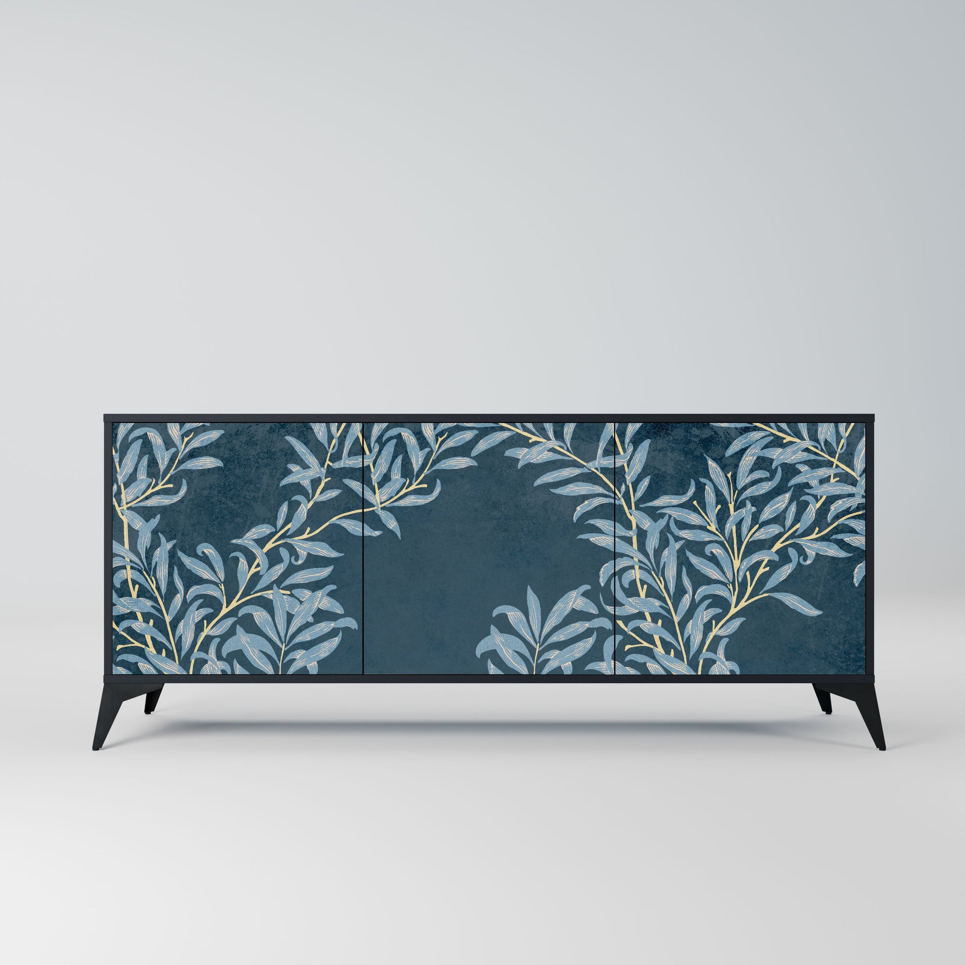 BLUE LEAVES 3-Door Sideboard in Black Finish
