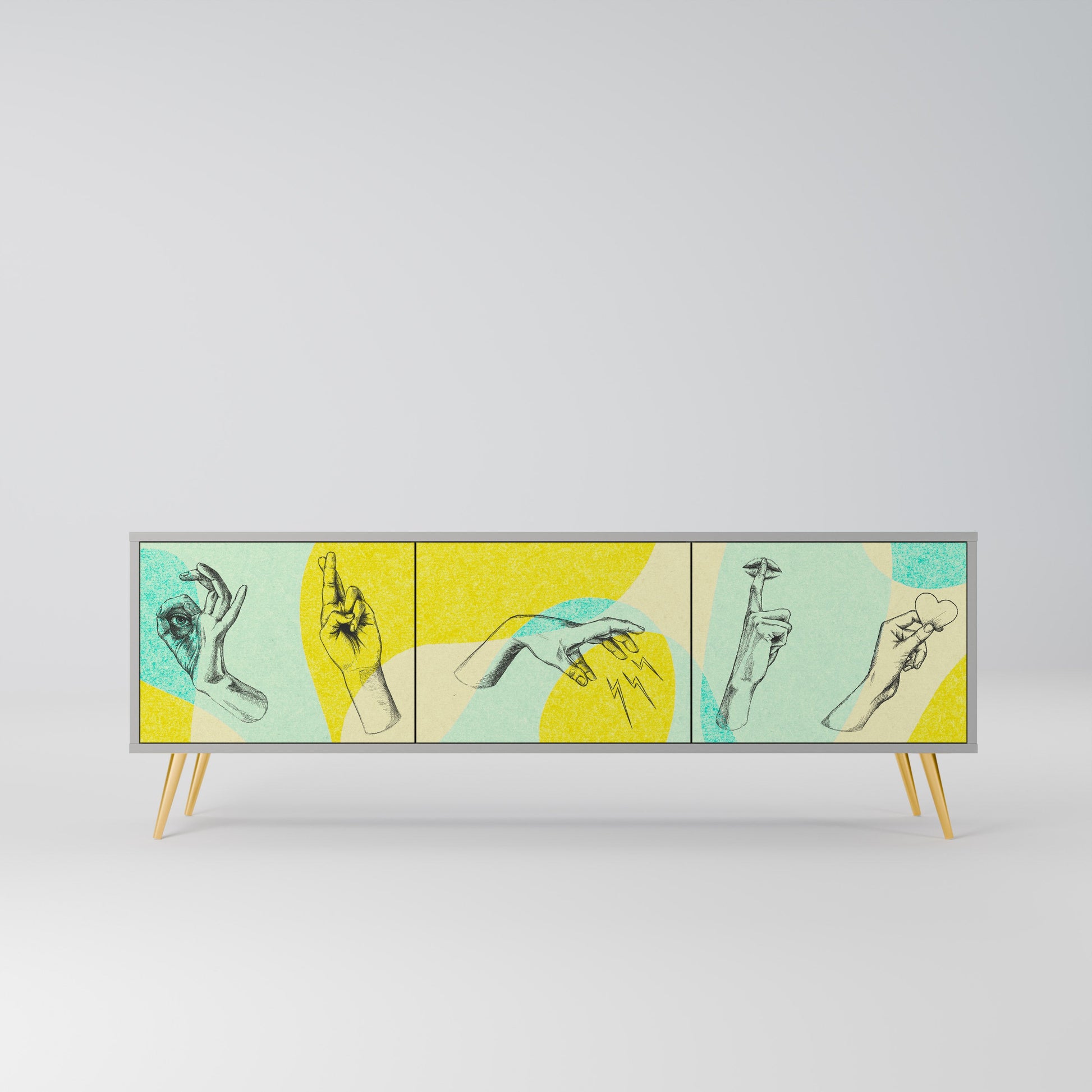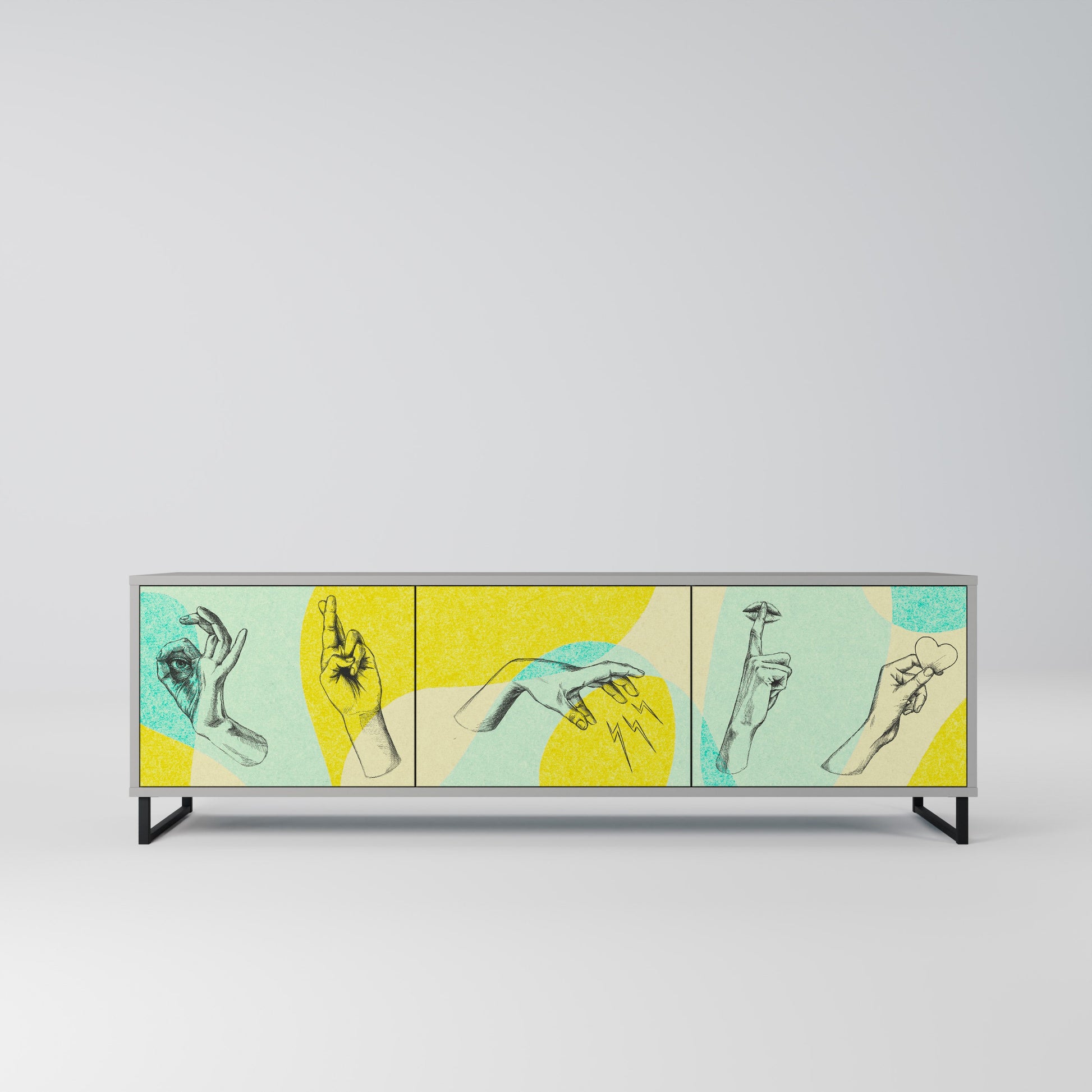 BODY LANGUAGE 3-Door TV Stand in Grey Finish