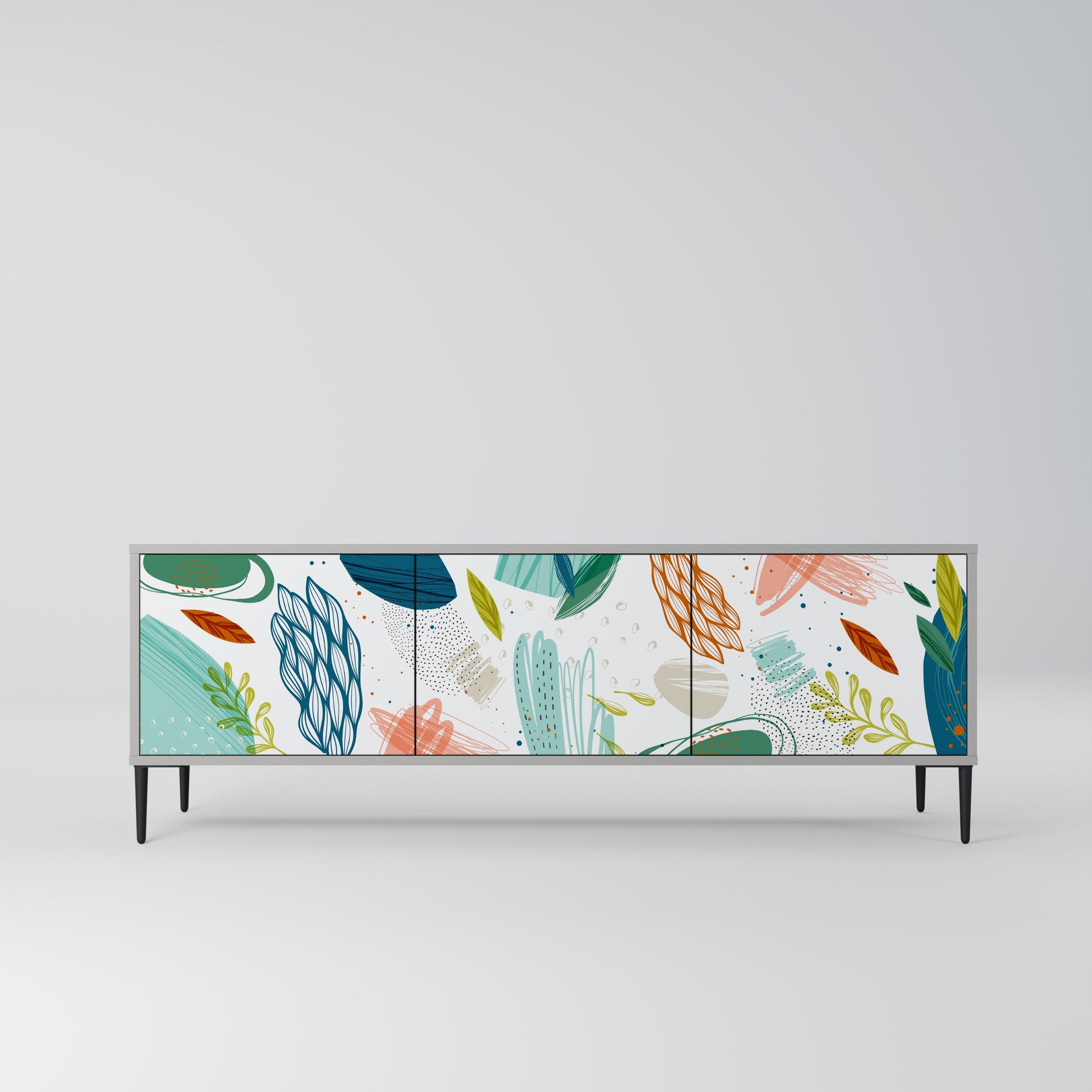 BOTANICAL HURRICANE 3-Door TV Stand in Grey Finish