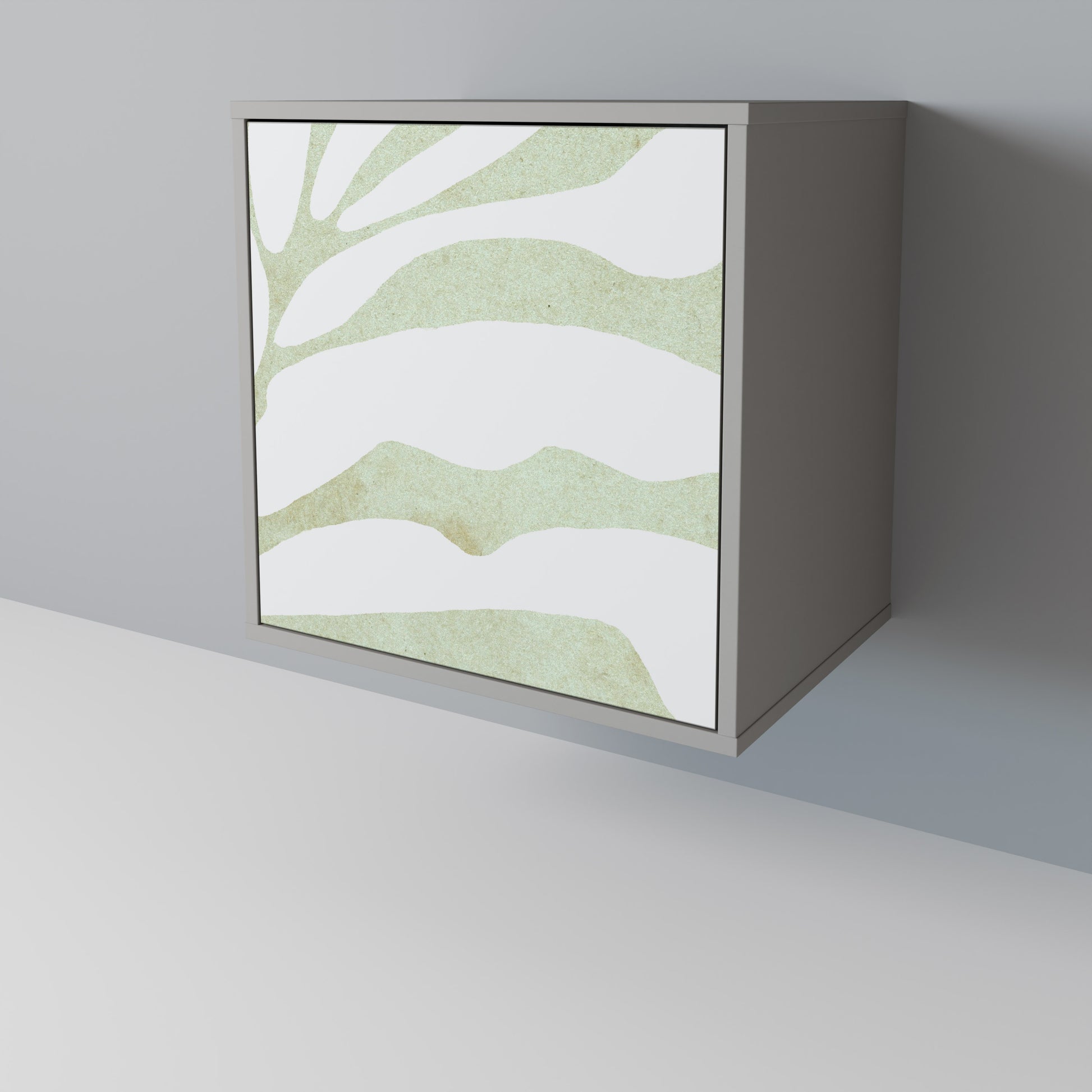 This compact yet remarkably elegant piece of furniture impresses with its minimalist design, perfectly fitting into both modern and classic interiors. The subdued grey color of the body gives the furniture a subtle yet distinctive character, while the fronts with a unique print add an artistic touch.