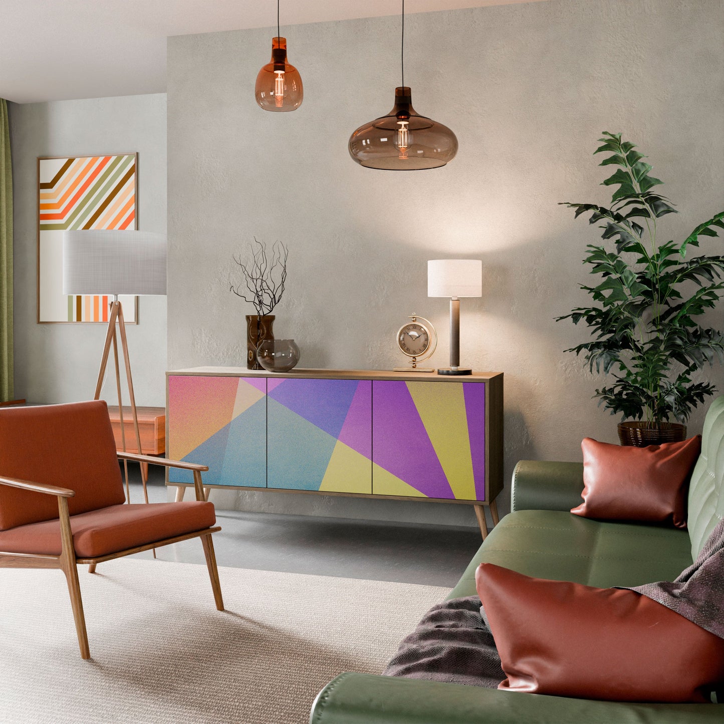 BRIGHT GEOMETRY 3-Door Sideboard in Oak Effect
