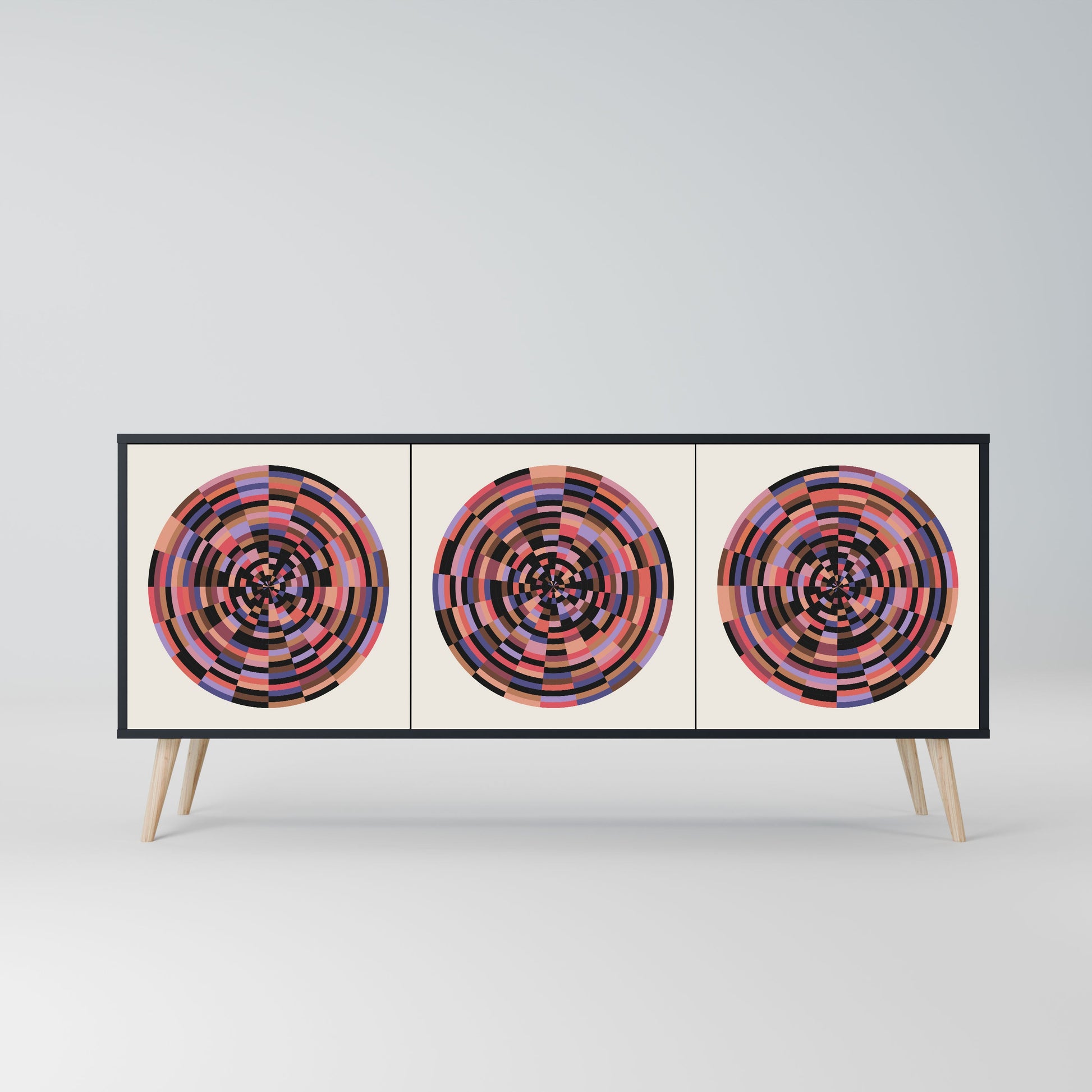 BROWN CIRCLES 3-Door Sideboard in Black Finish