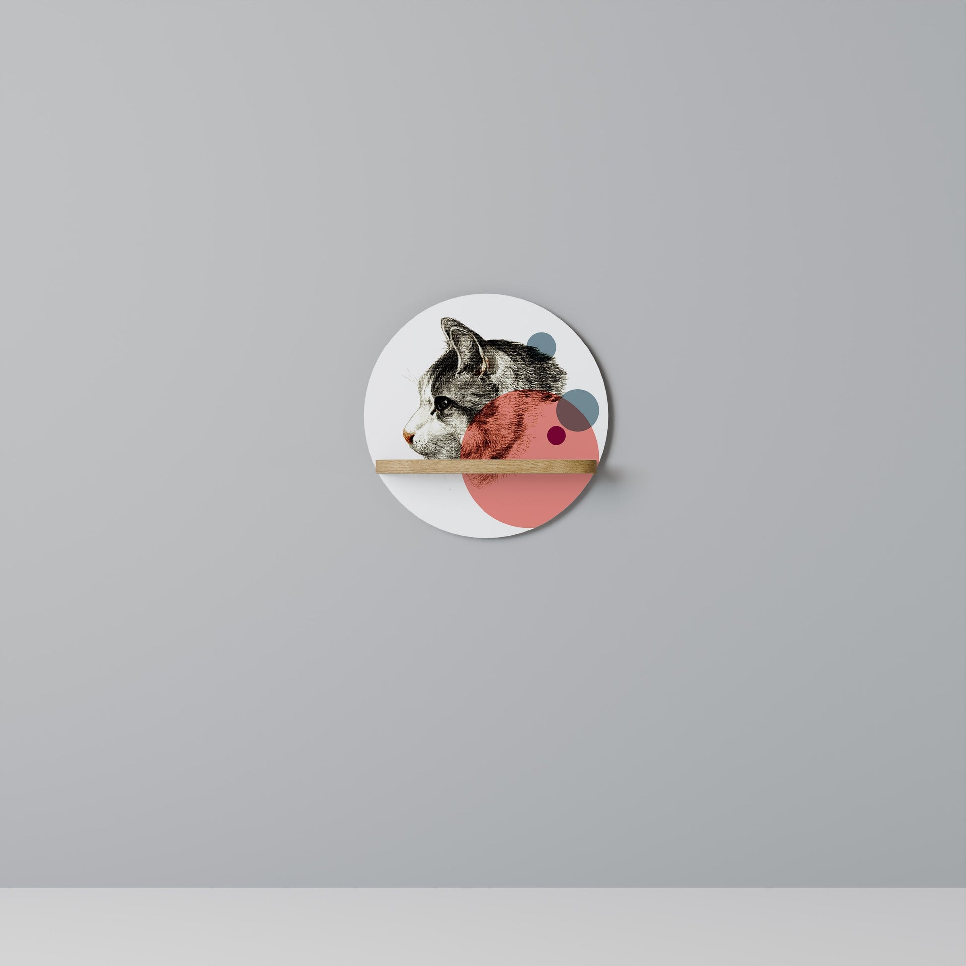 BUBBLE CAT SKETCH Round Art Shelf In Oak Effect