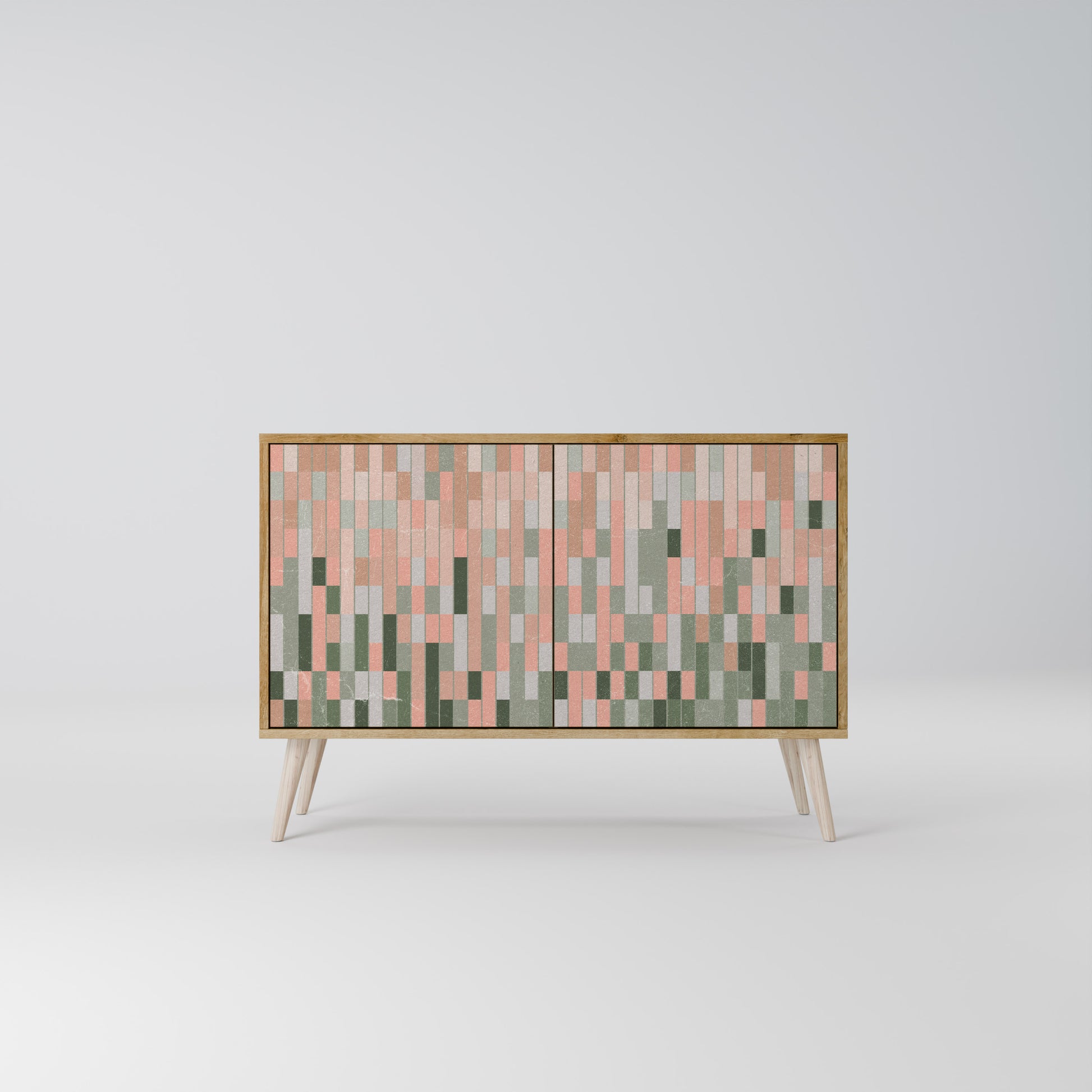 Discover the minimalist design and functionality of our two-door sideboard in oak effect. This elegant piece of furniture perfectly combines the natural look of wood with modern simplicity, making it an ideal choice for both the living room and bedroom. The sturdy construction with wooden legs and a laminated body ensures durability, while the stylish front doors with a printed finish offer ample storage space. It’s the perfect solution for those who value order and elegance.