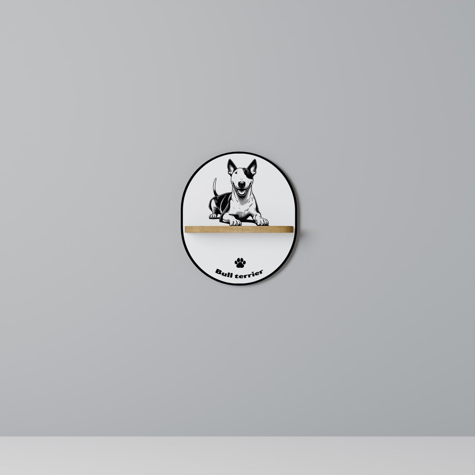 BULL TERRIER Oval Art Shelf In Oak Effect