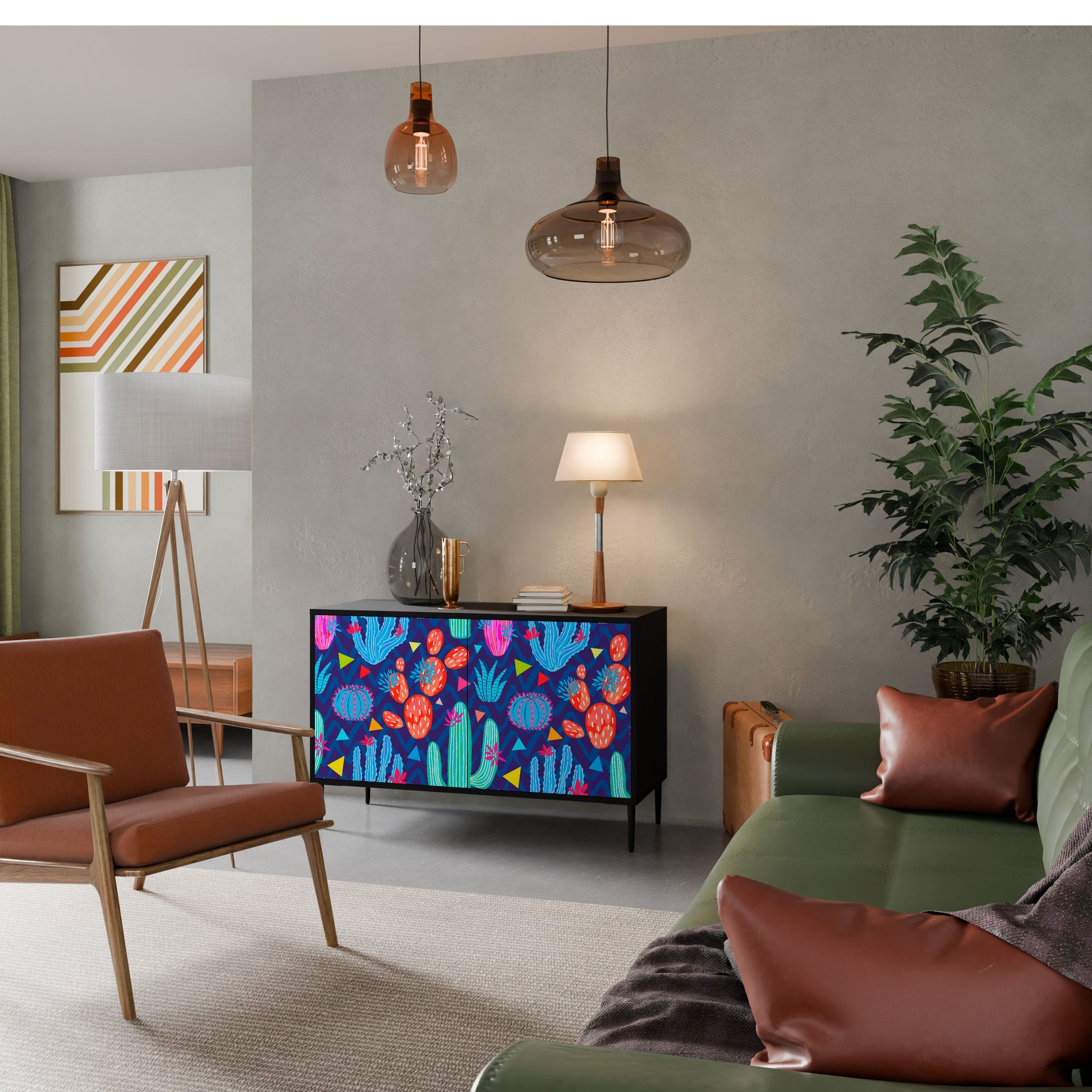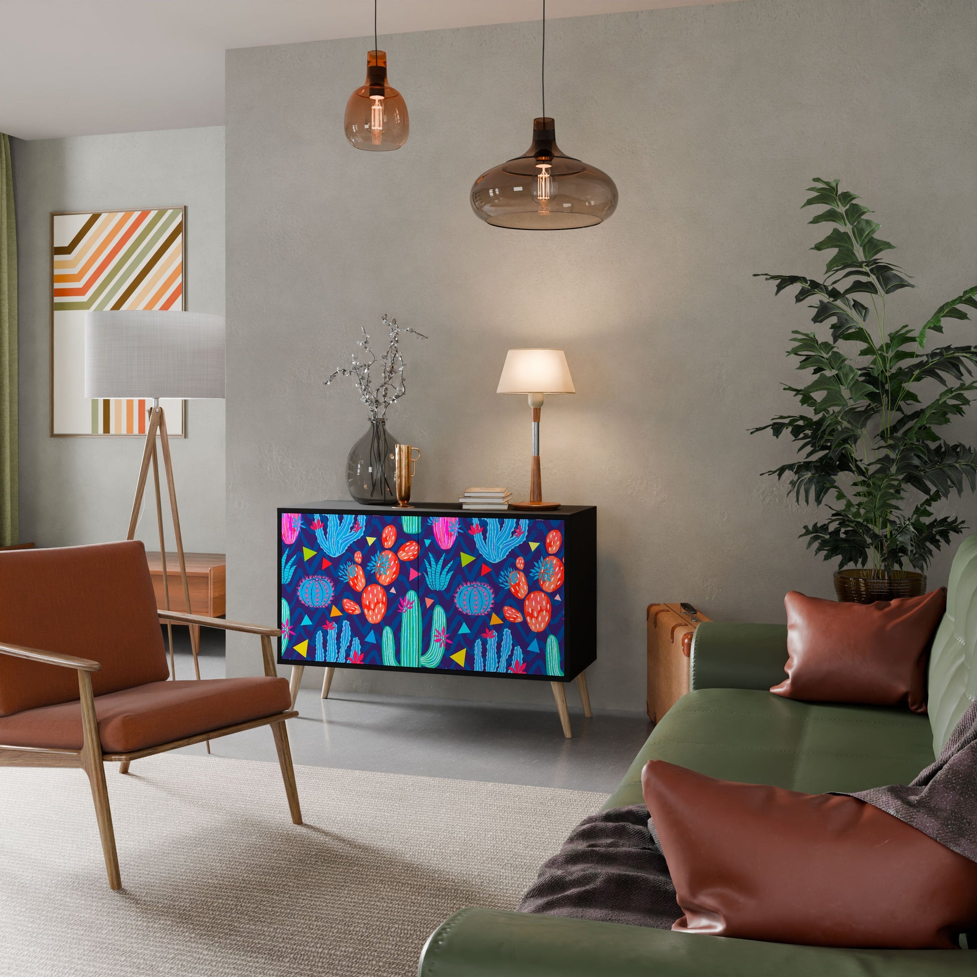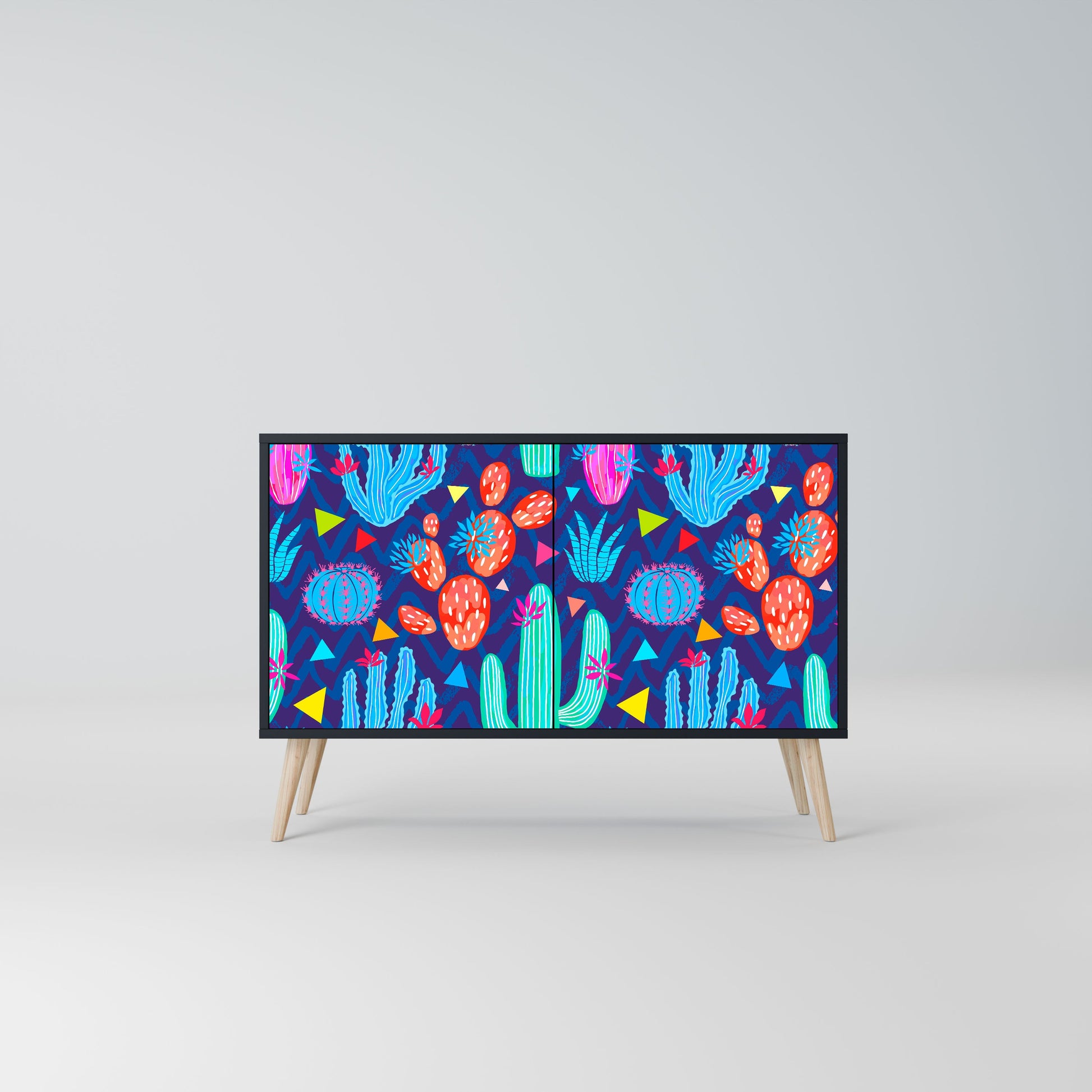 Elegance and functionality in a single piece of furniture – our 2-Door Sideboard with a black body is the perfect solution for lovers of stylish, modern interiors. The black body emphasizes the bold character of the furniture, while the fronts with a unique print add an artistic touch. It fits perfectly in the living room, bedroom, or office, complementing both modern and industrial arrangements.