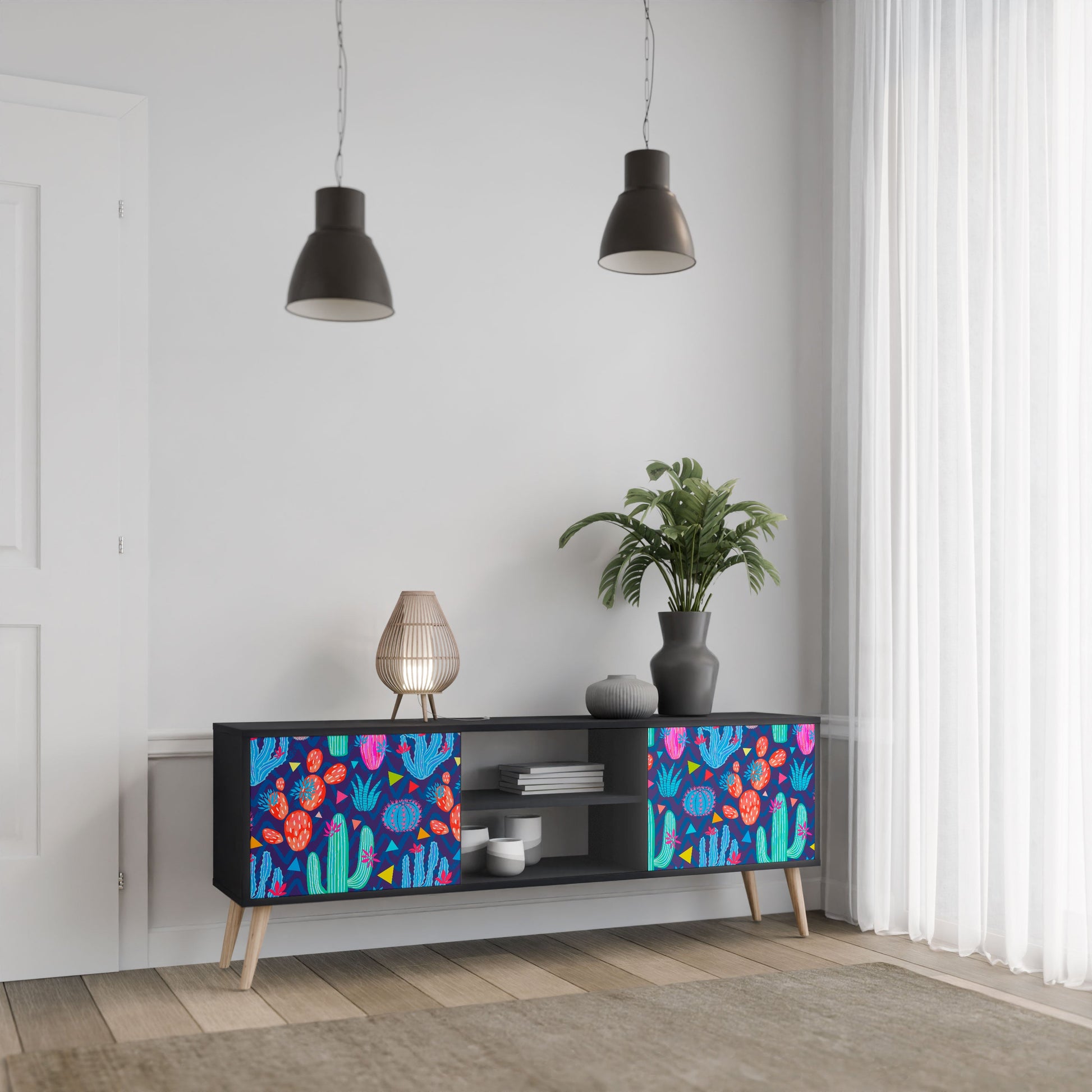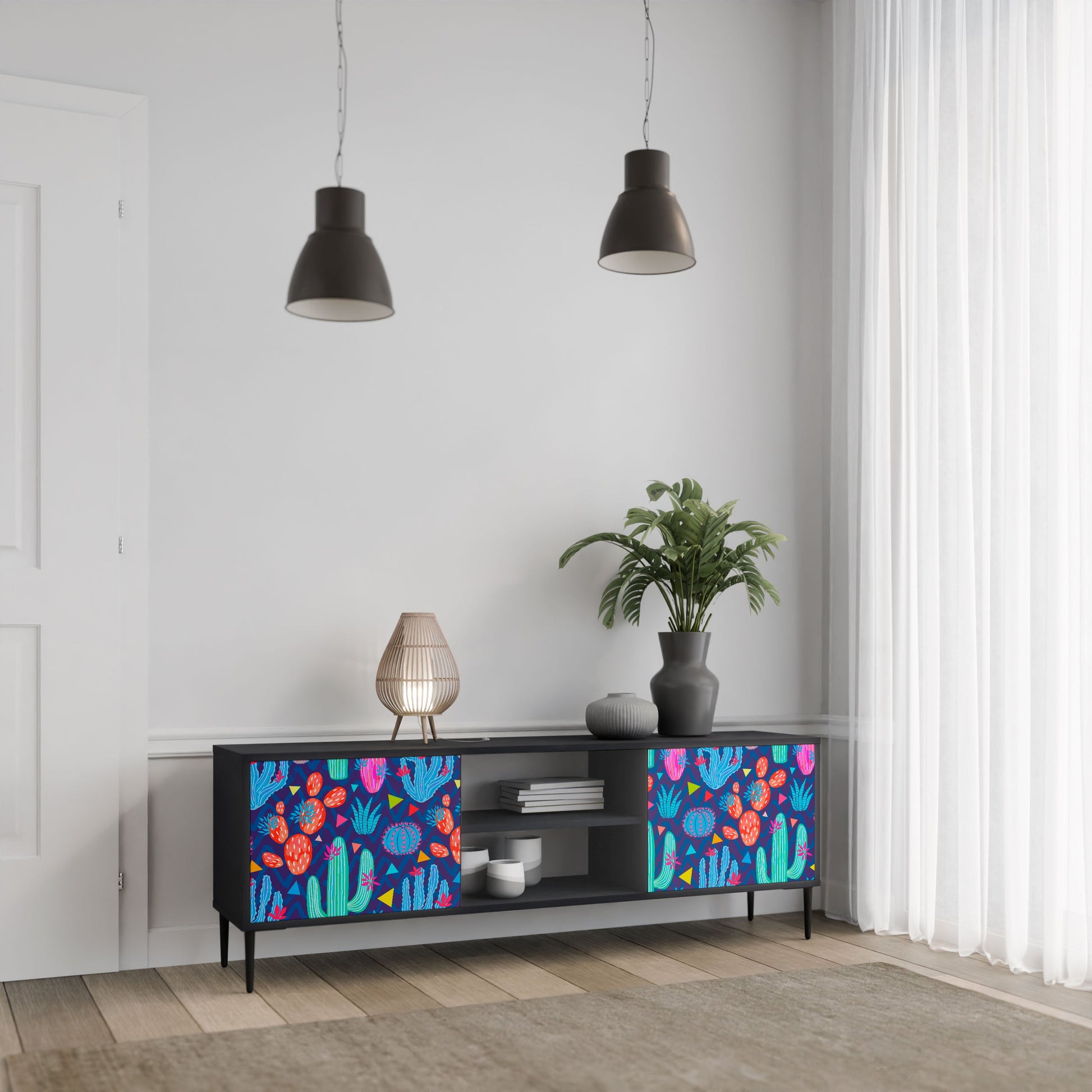 CACTUS VIBES 2-Door TV Stand in Black Finish
