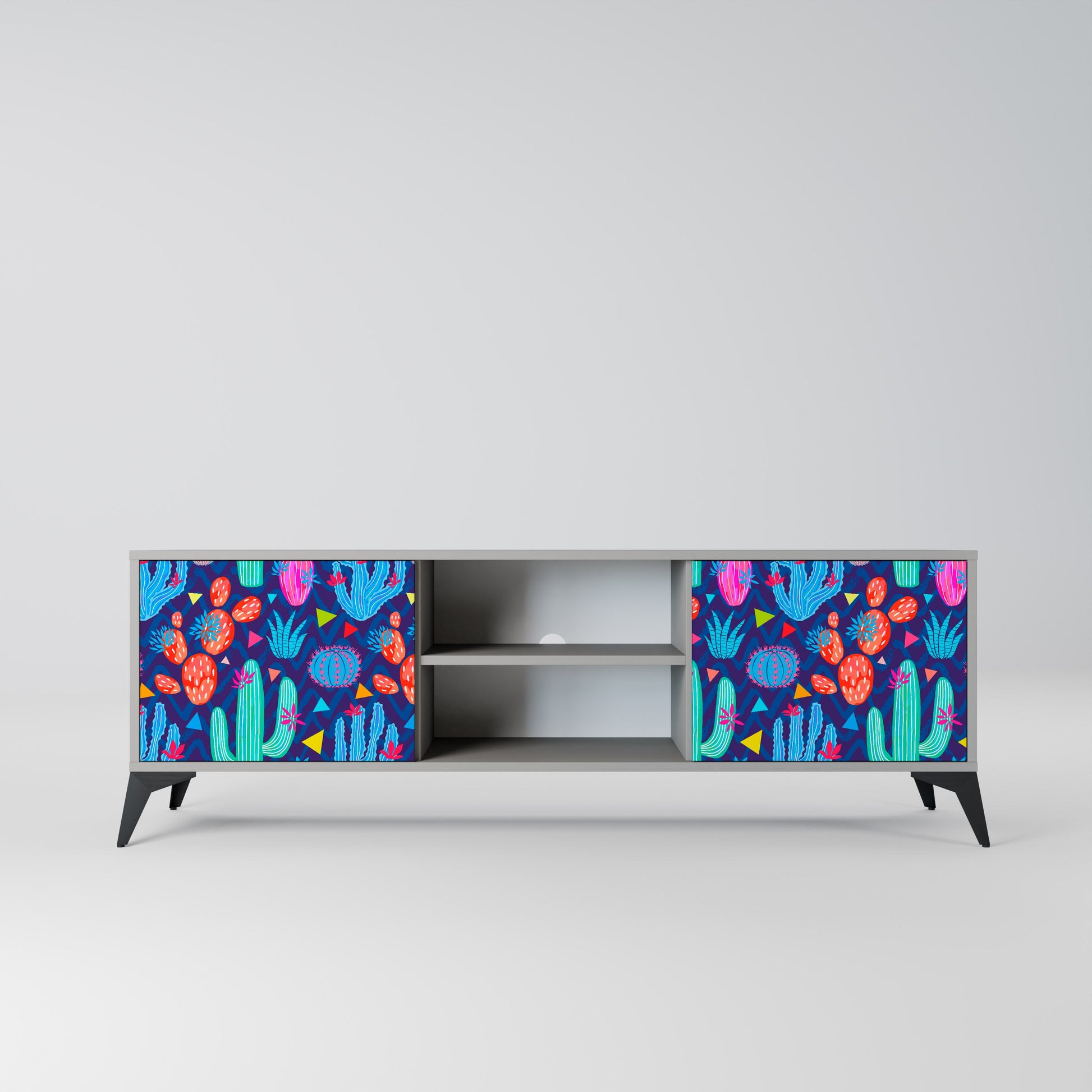 CACTUS VIBES 2-Door TV Stand in Grey Finish