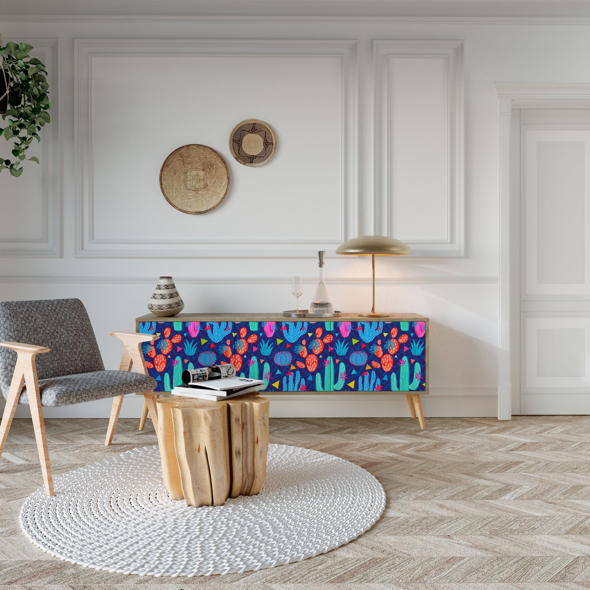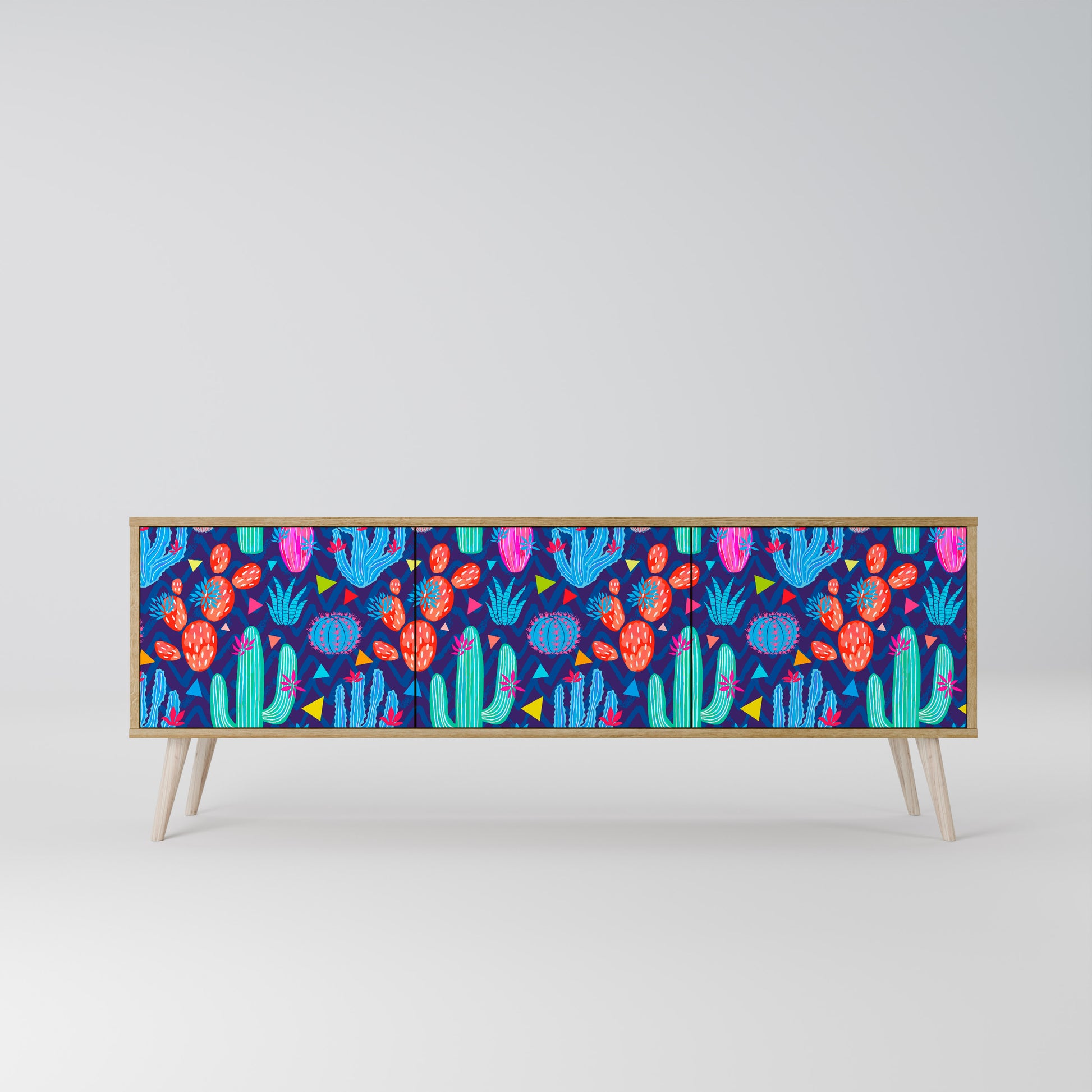 CACTUS VIBES 3-Door TV Stand in Oak Effect
