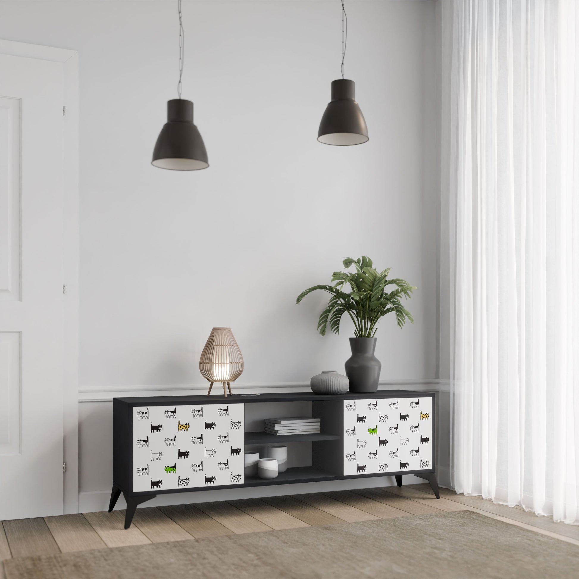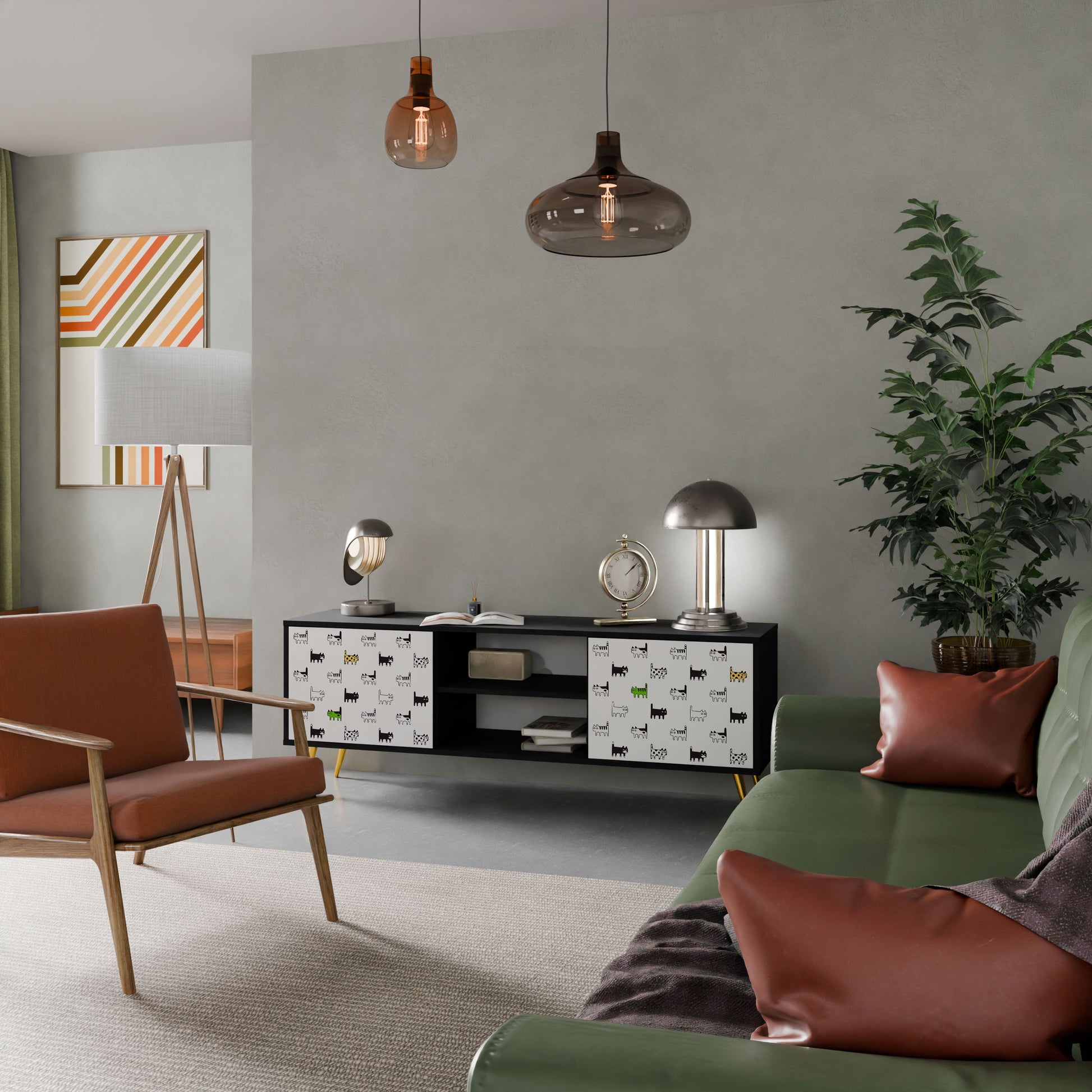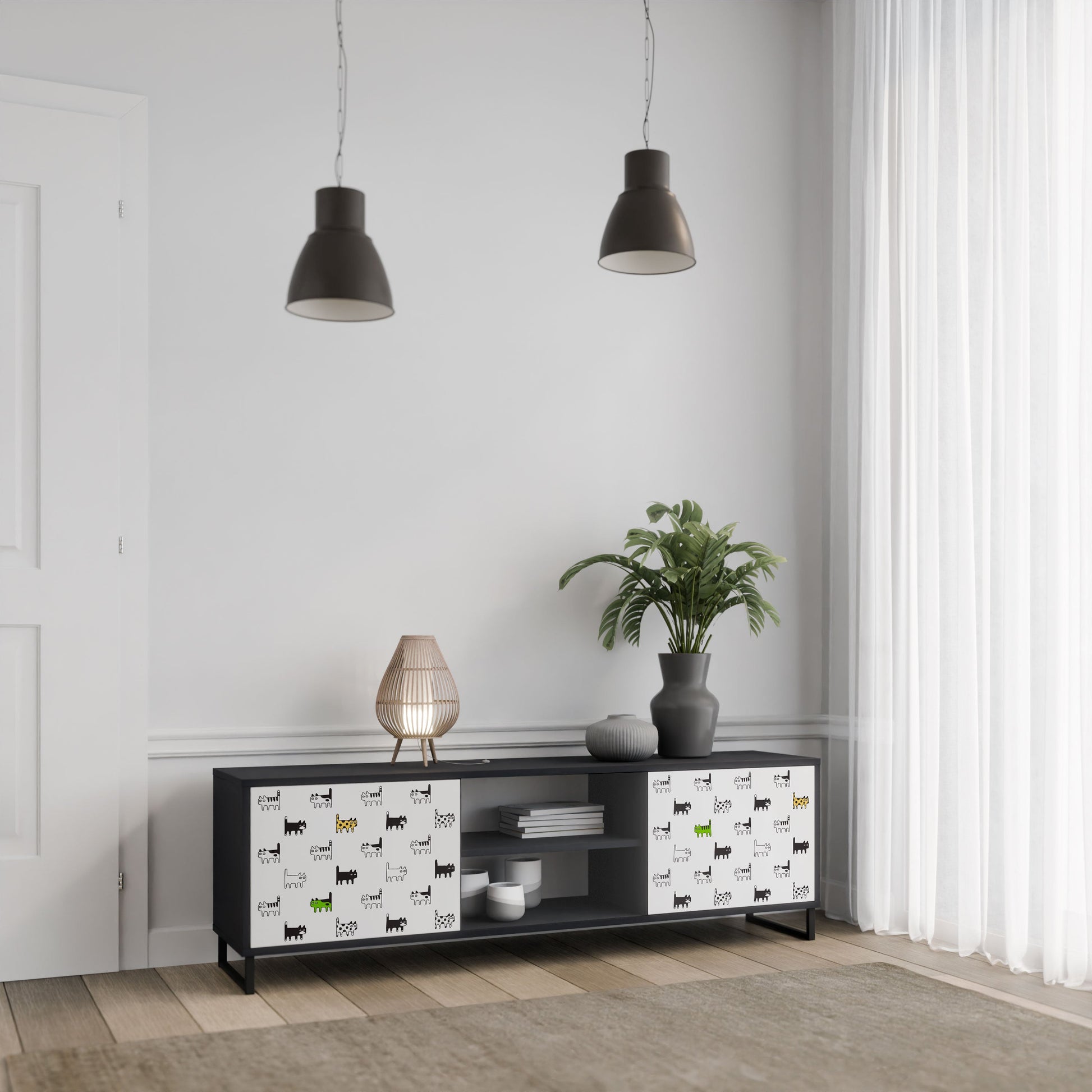 The black body gives the TV stand an elegant, modern look, while the fronts with an exceptional print draw attention, making it the focal point of any room. The spacious interior provides room for electronic devices, cables, remotes, and other accessories, helping you maintain order and organization.