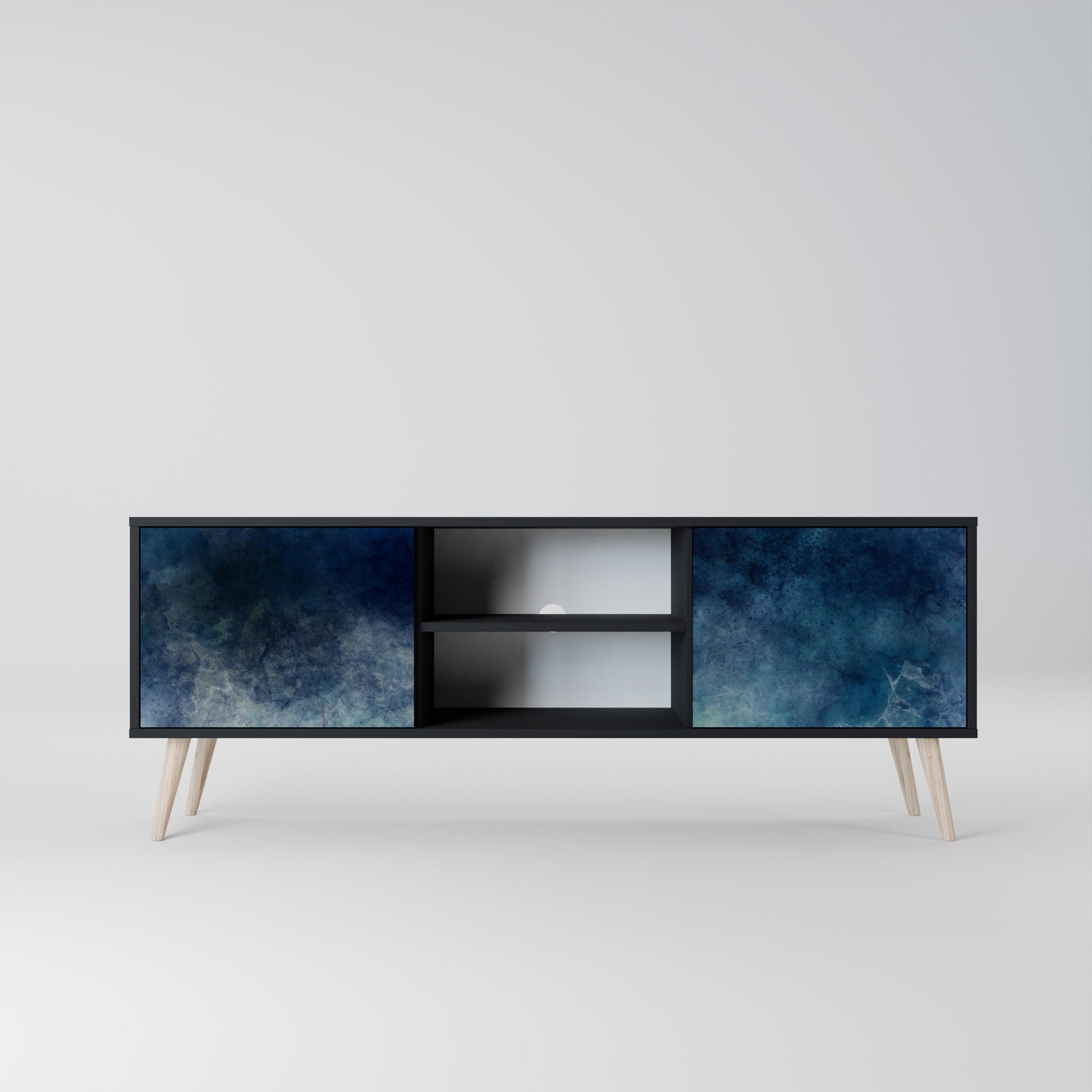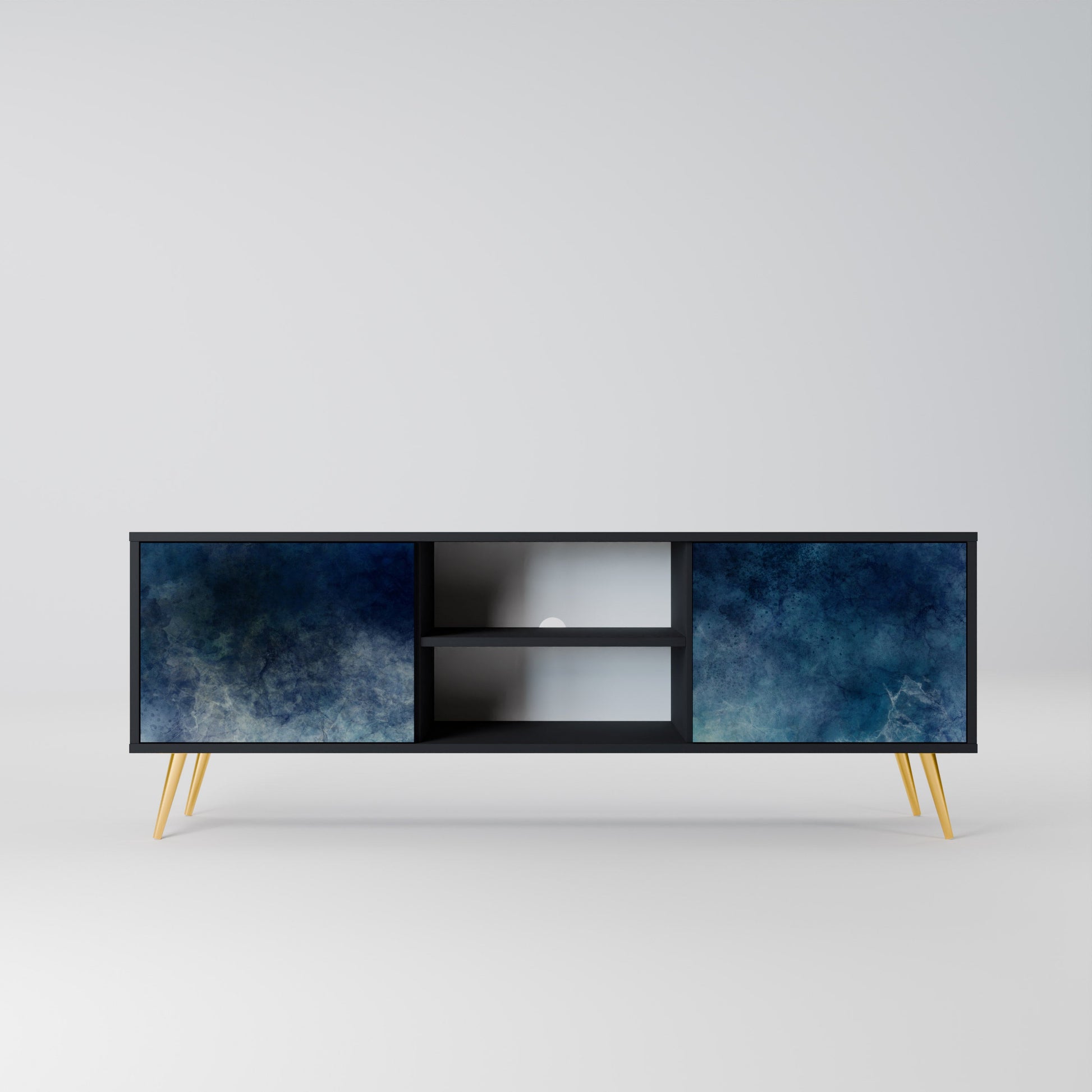 The black body gives the TV stand an elegant, modern look, while the fronts with an exceptional print draw attention, making it the focal point of any room. The spacious interior provides room for electronic devices, cables, remotes, and other accessories, helping you maintain order and organization.