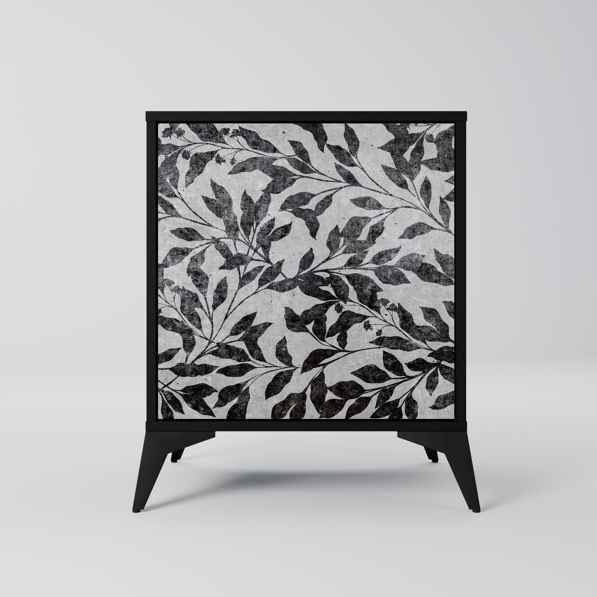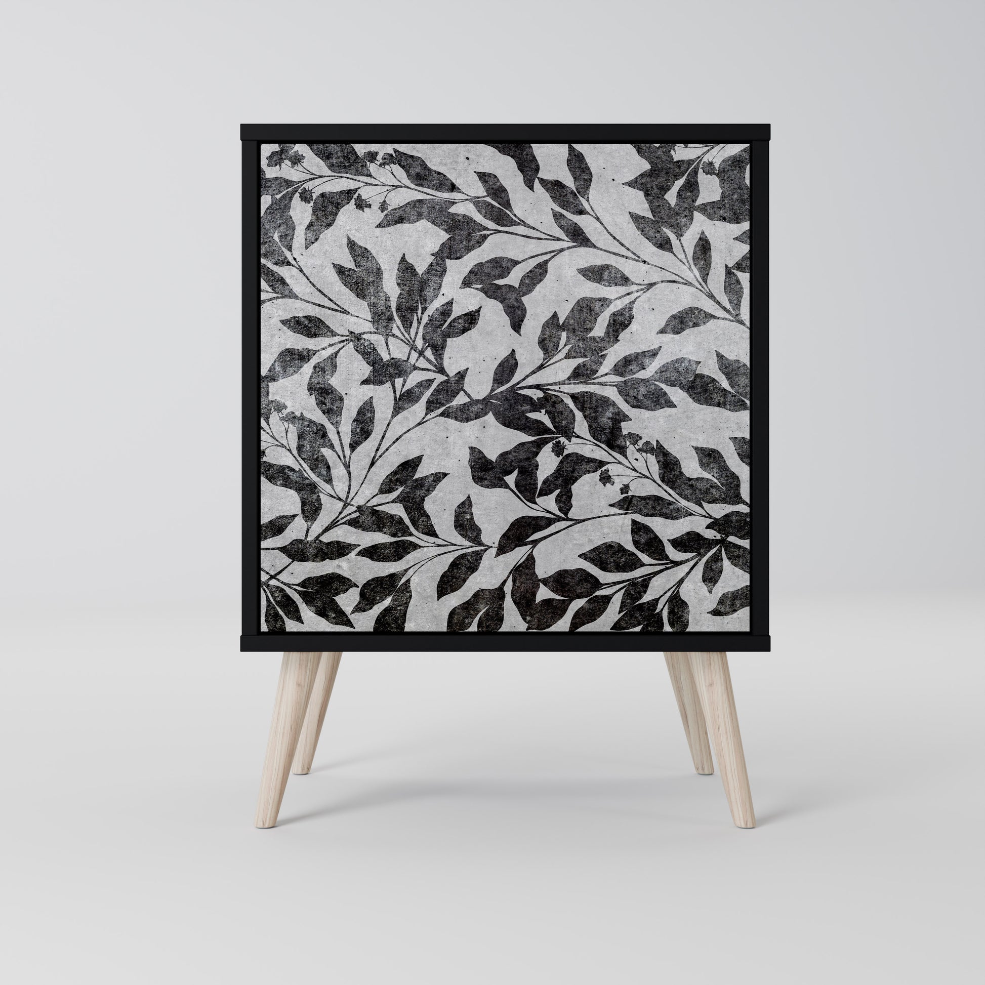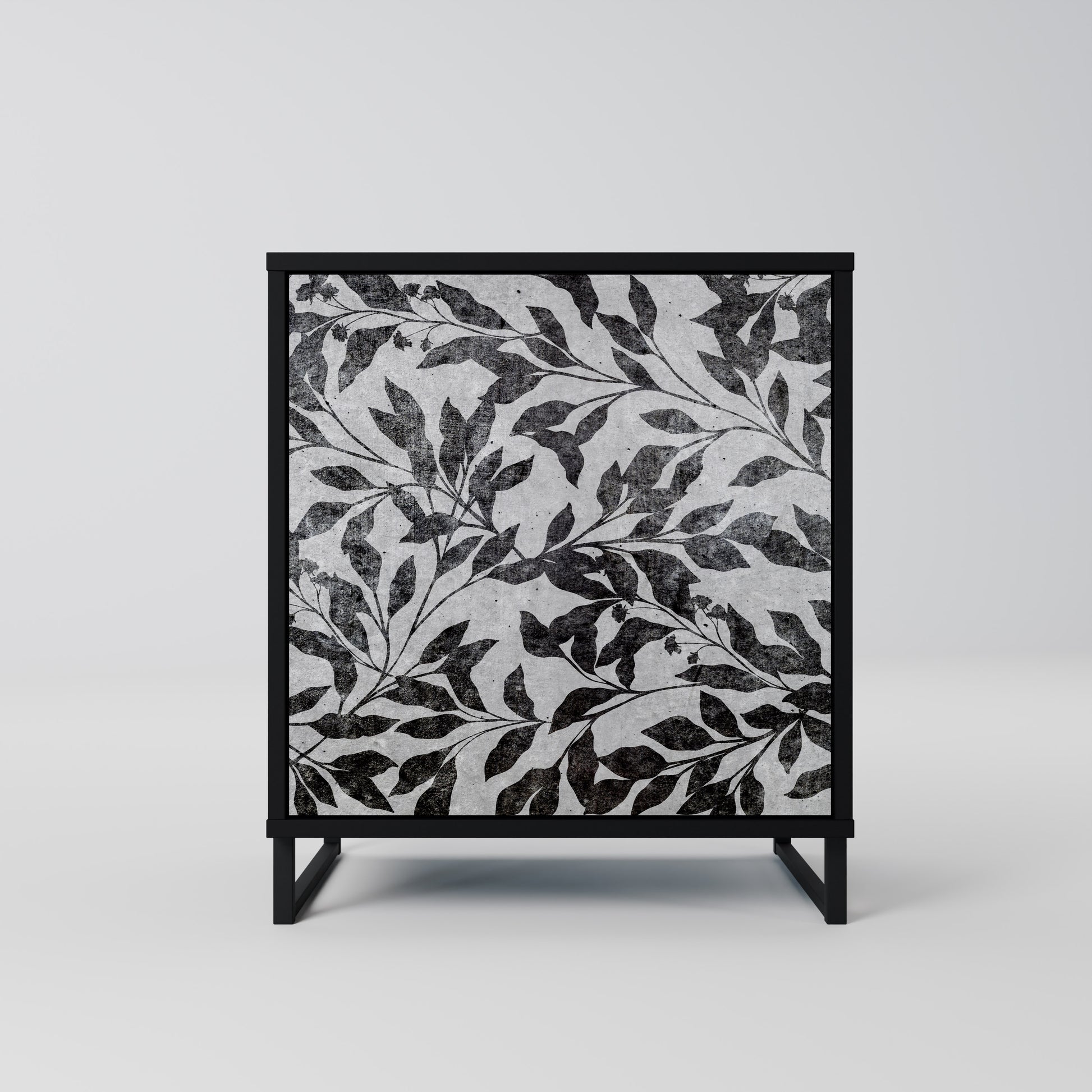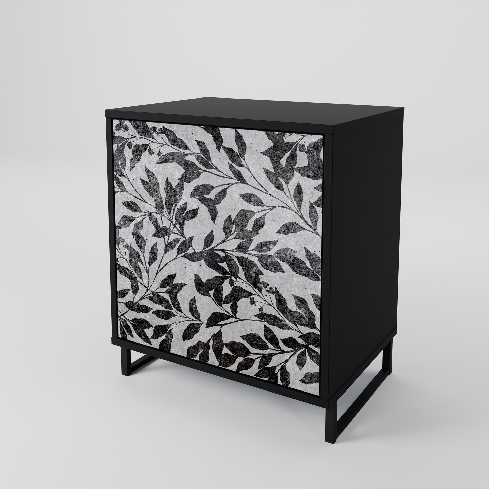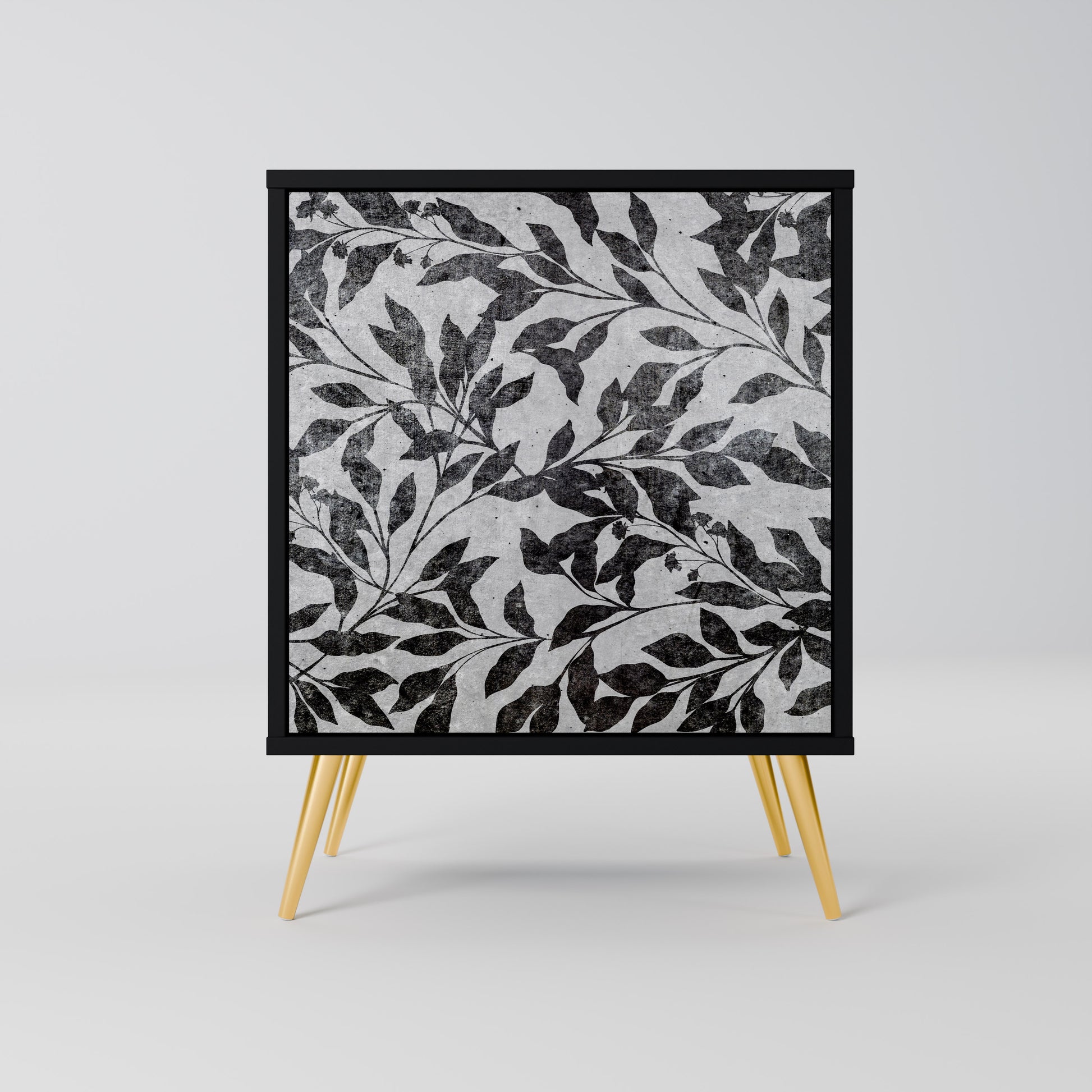 This compact yet remarkably elegant piece of furniture impresses with its minimalist design, perfectly fitting into both modern and classic interiors. The black body emphasizes the furniture’s bold character, while the fronts with a unique print add an artistic touch.