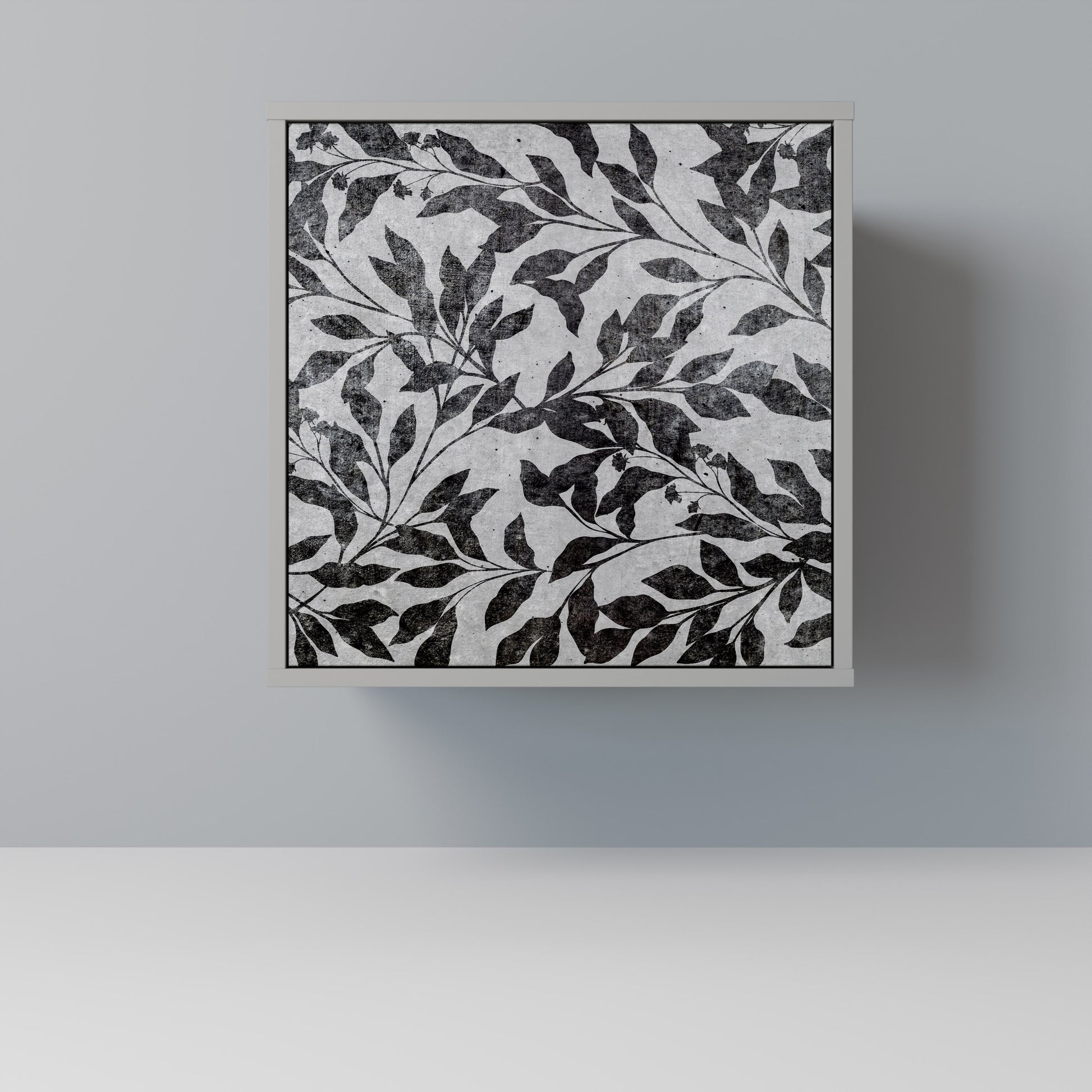 This compact yet remarkably elegant piece of furniture impresses with its minimalist design, perfectly fitting into both modern and classic interiors. The subdued grey color of the body gives the furniture a subtle yet distinctive character, while the fronts with a unique print add an artistic touch.